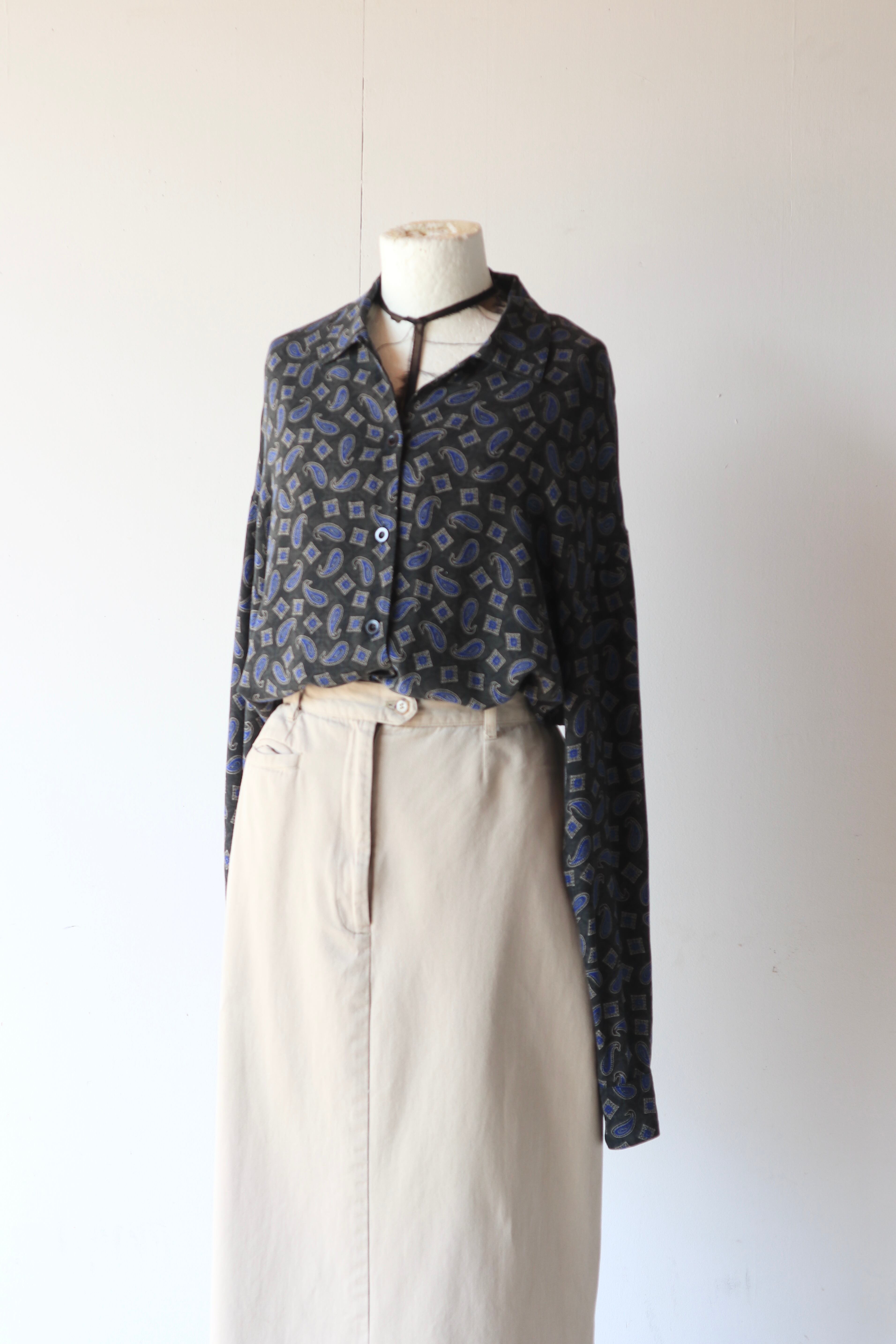 全面にプリントされたペイズリー柄がコーディネートのアクセントに
