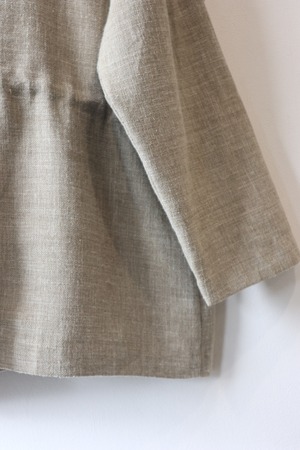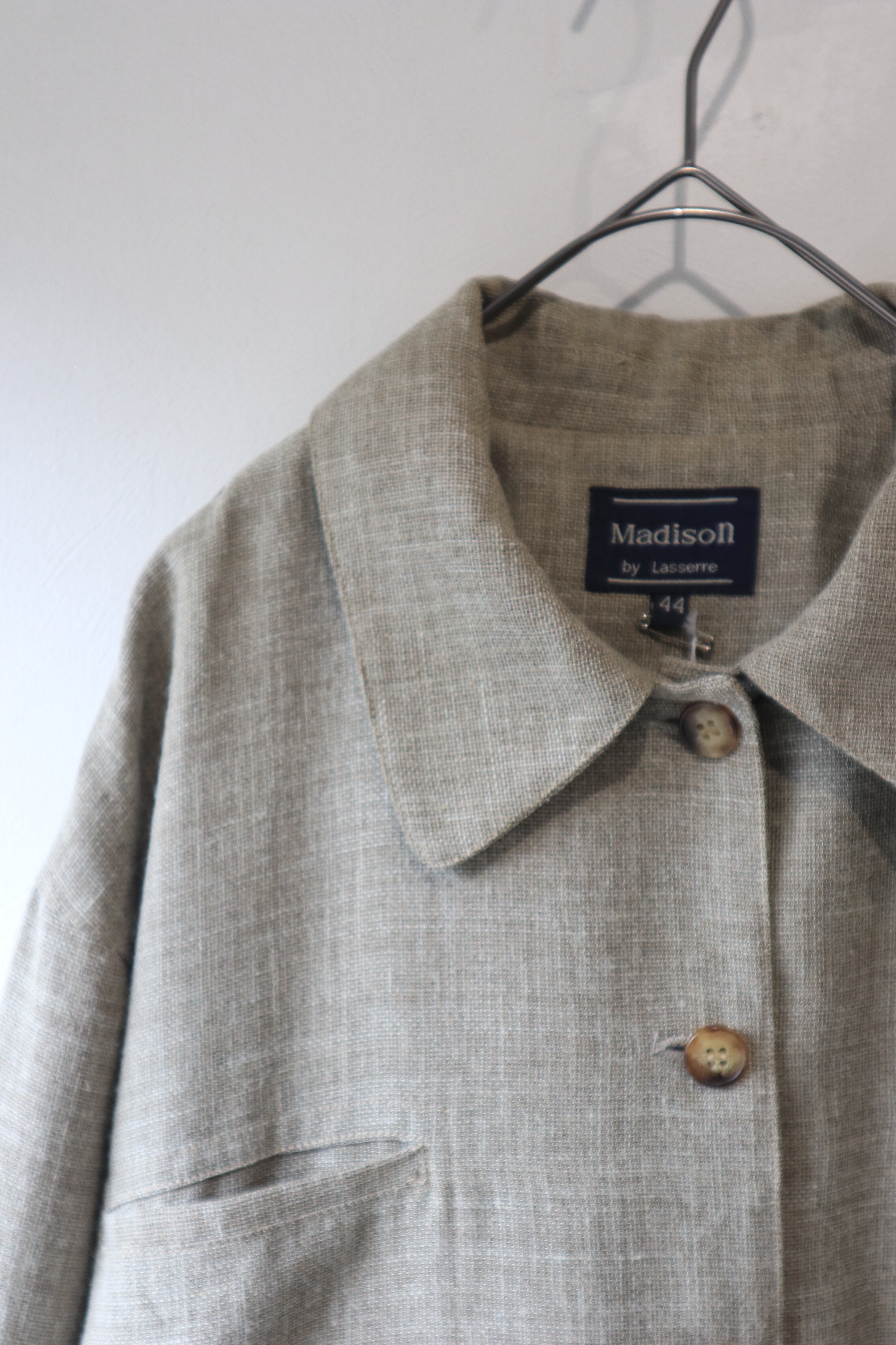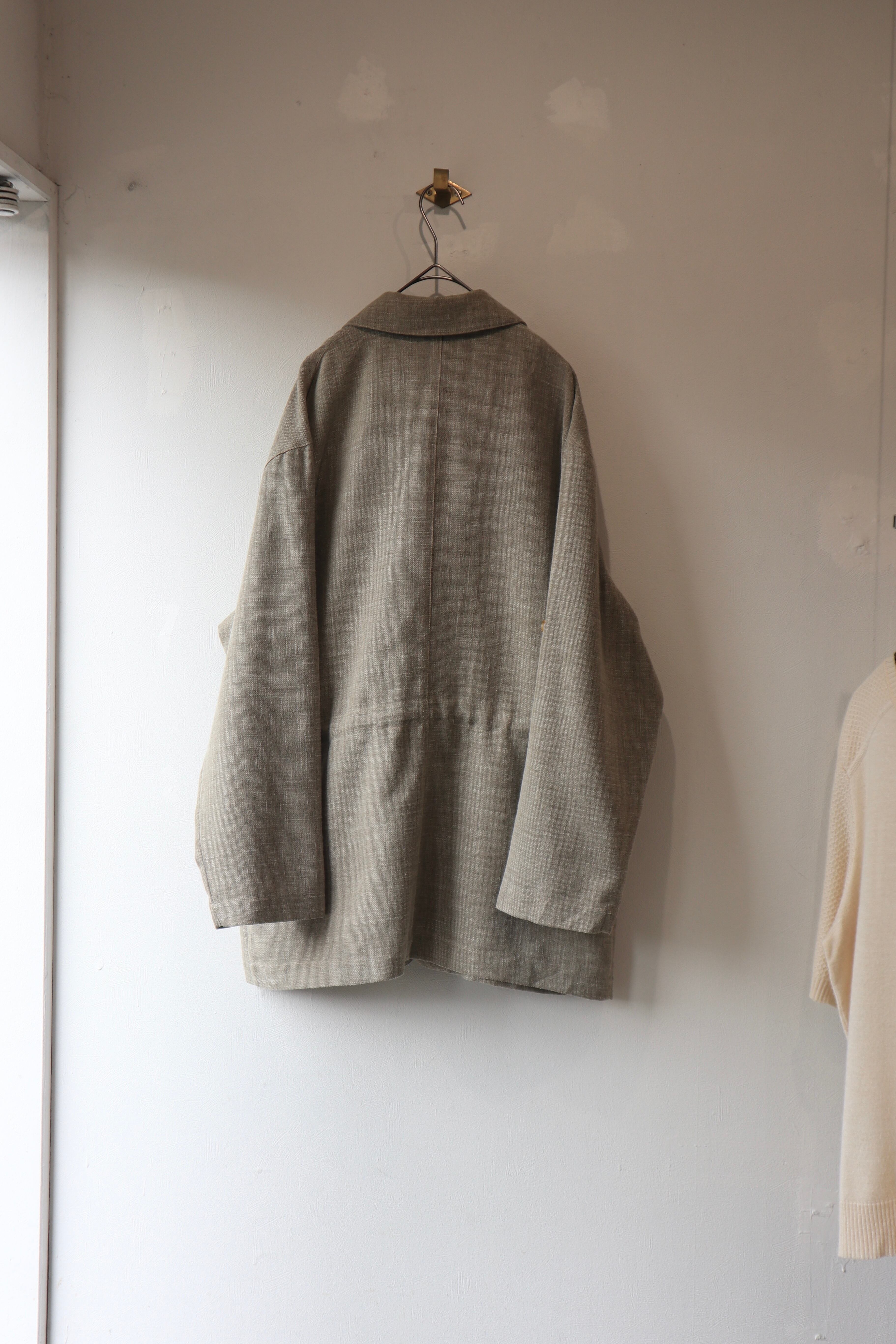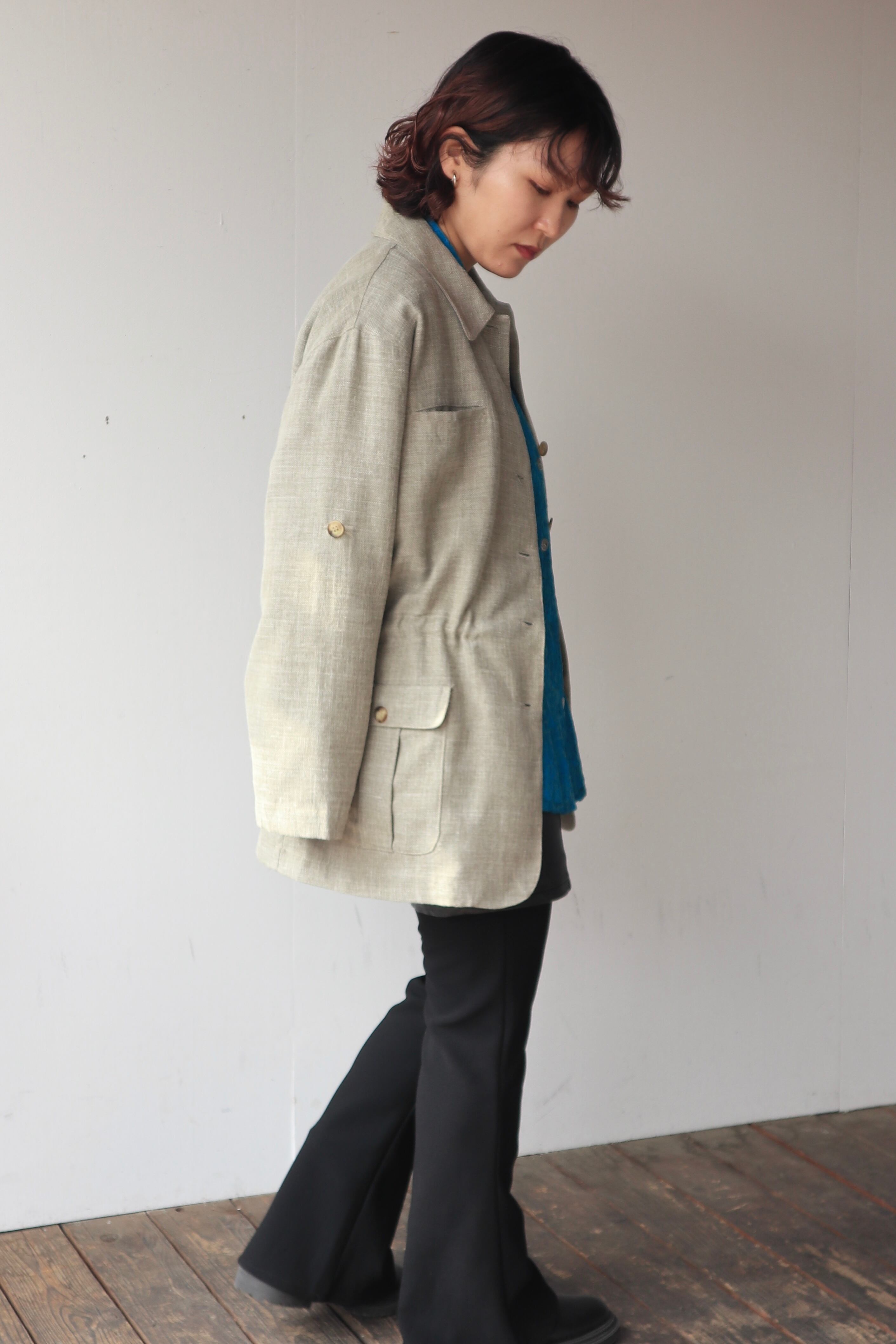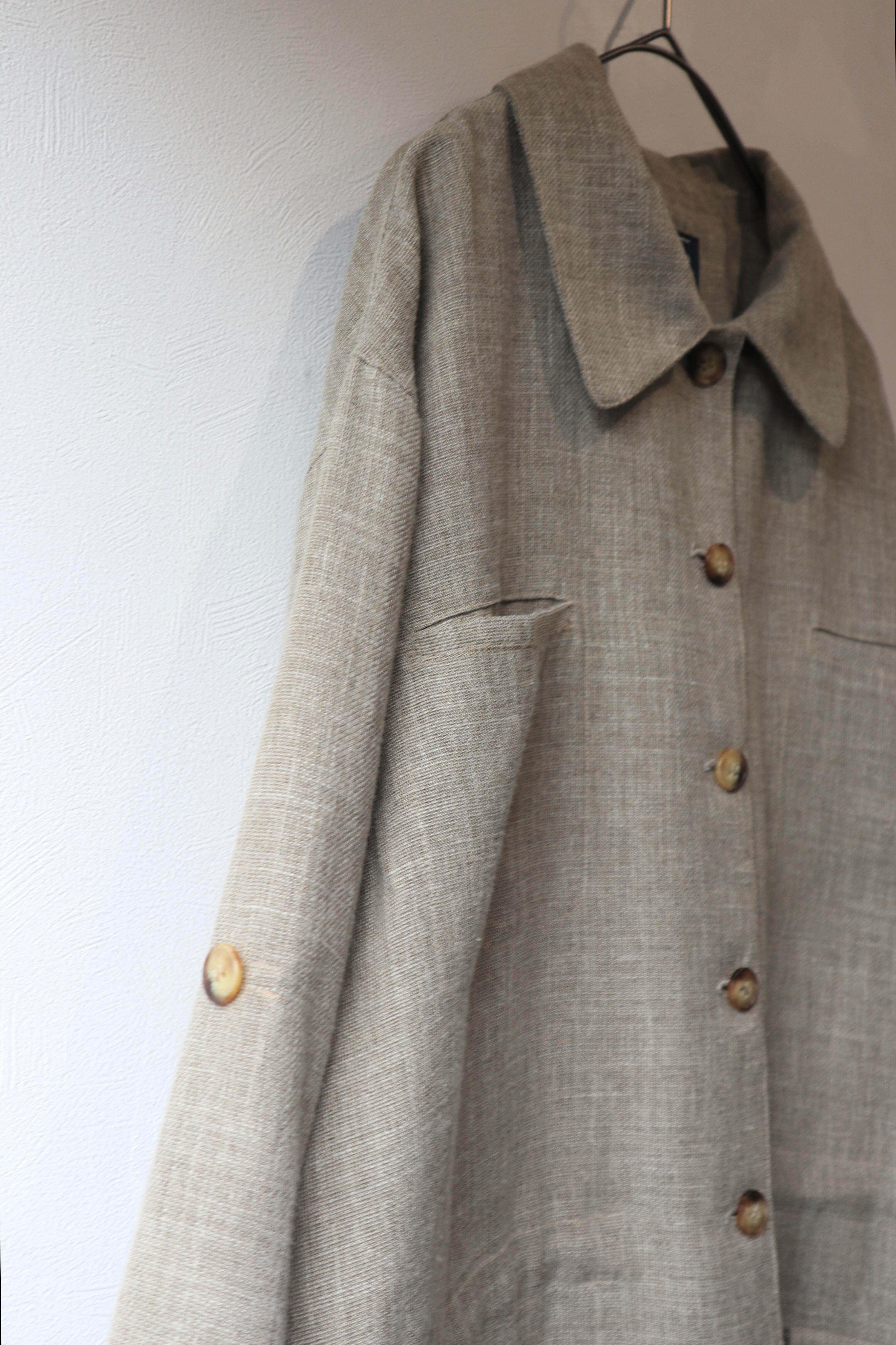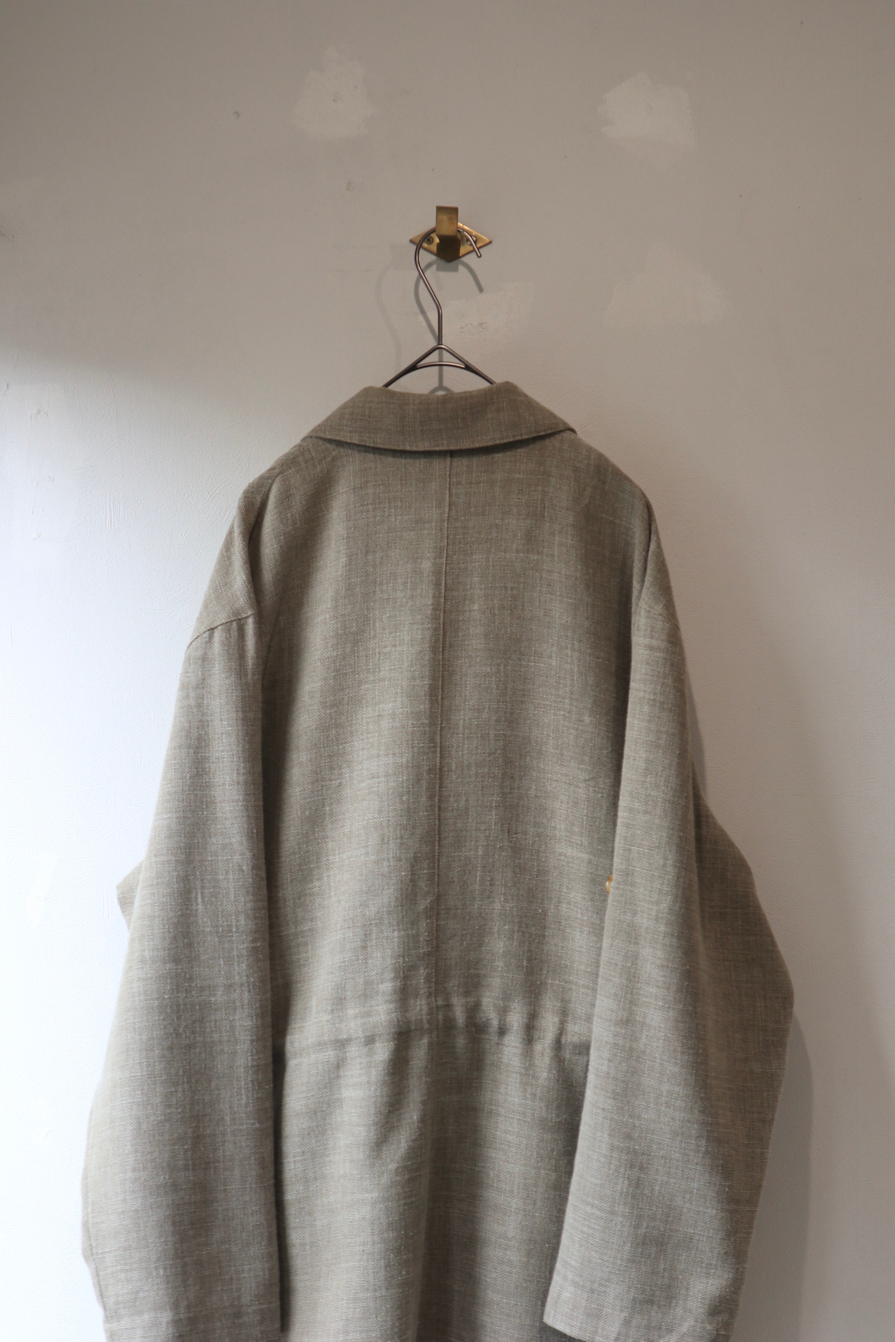 落ち着いたベージュカラーのポリエステルリネンジャケット