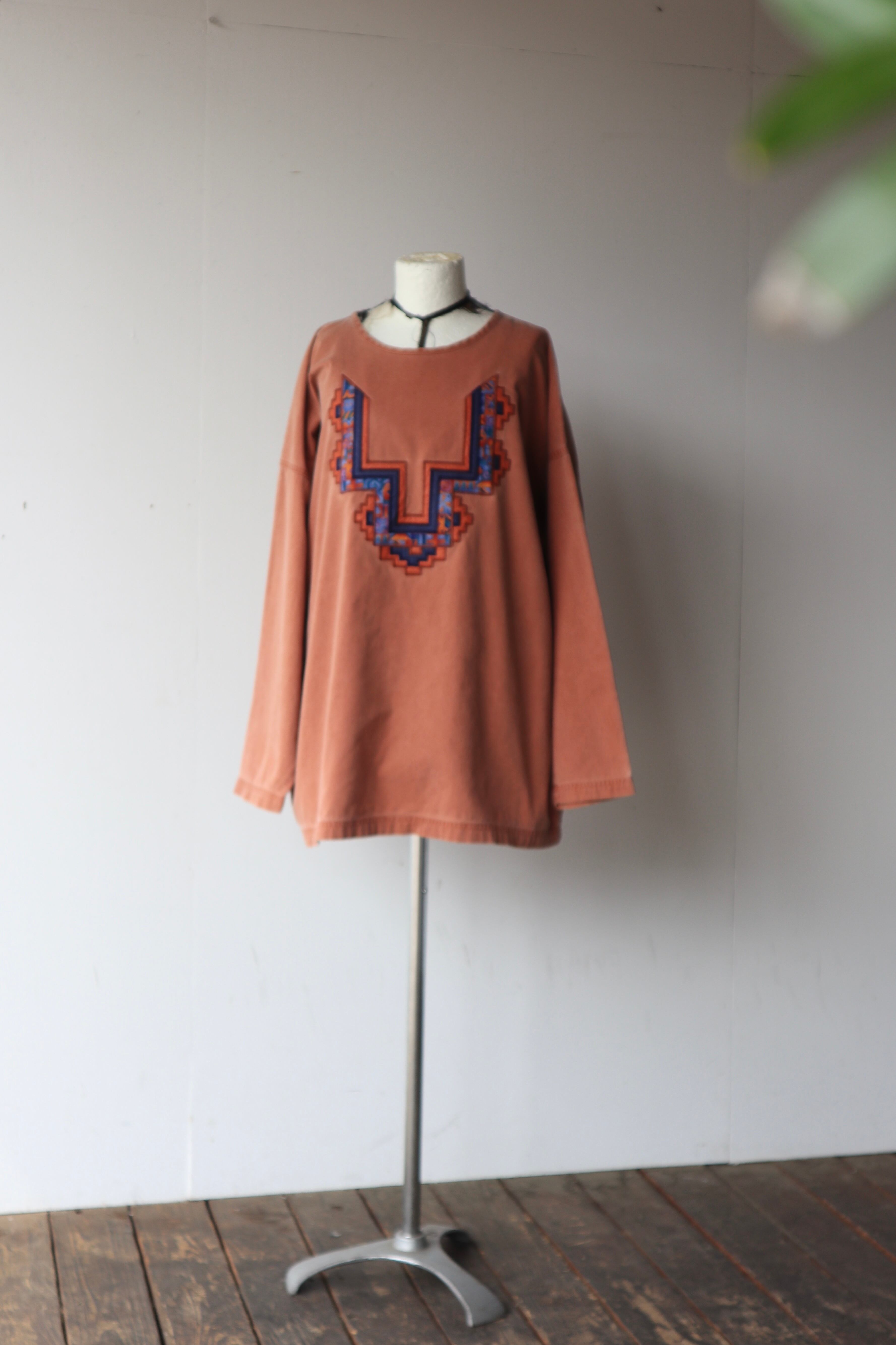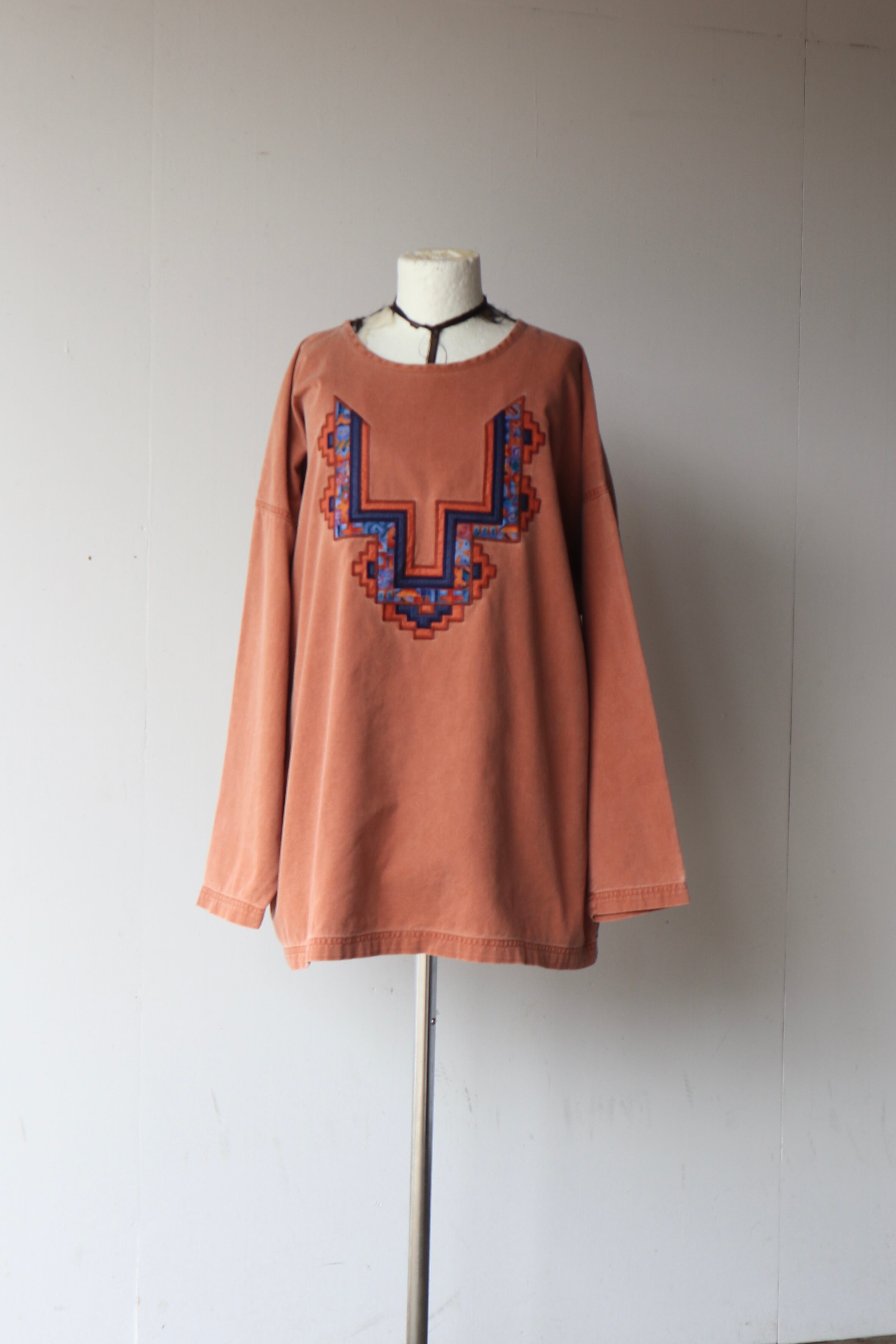 フロントの幾何学的なモチーフが印象的なコットンプルオーバー