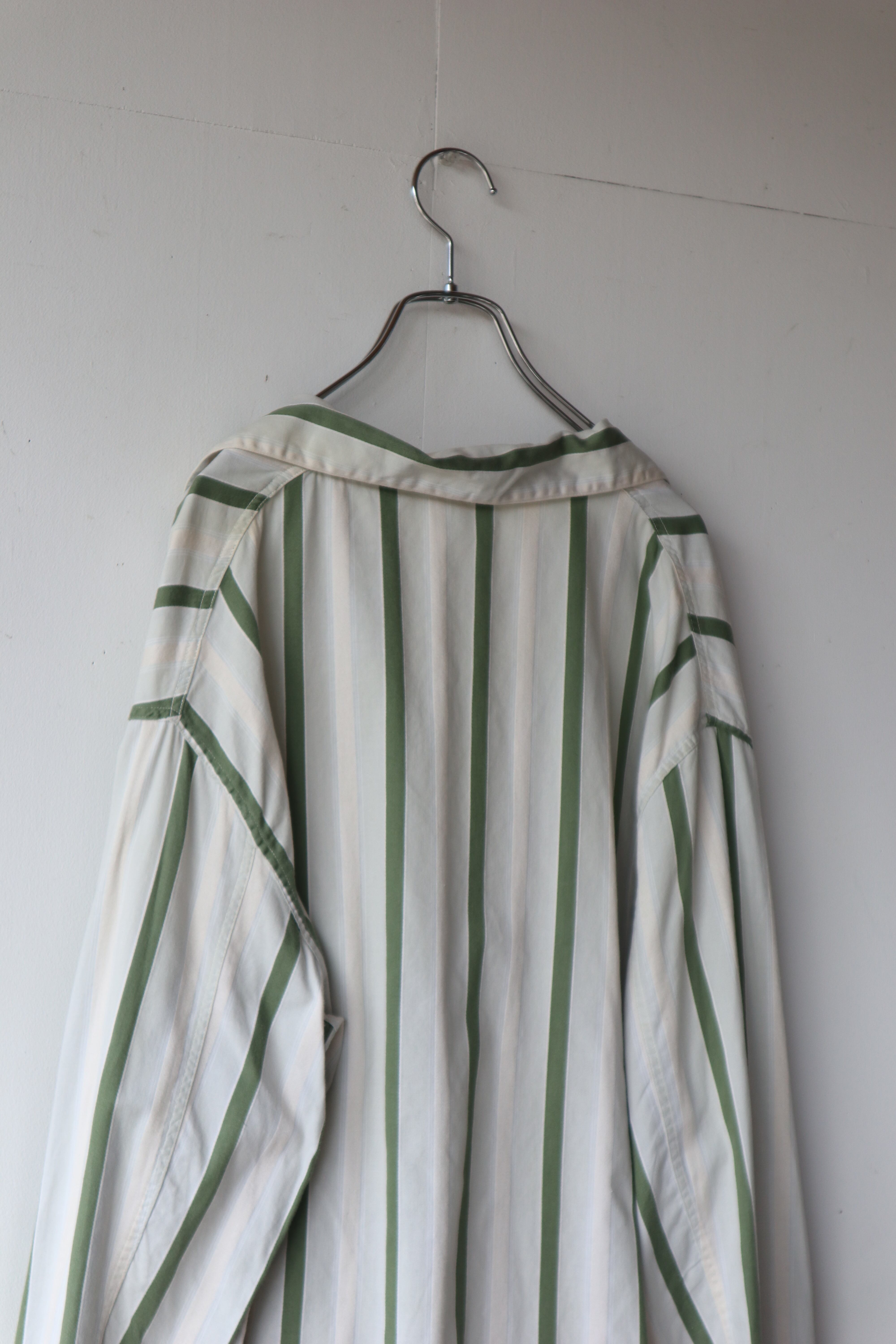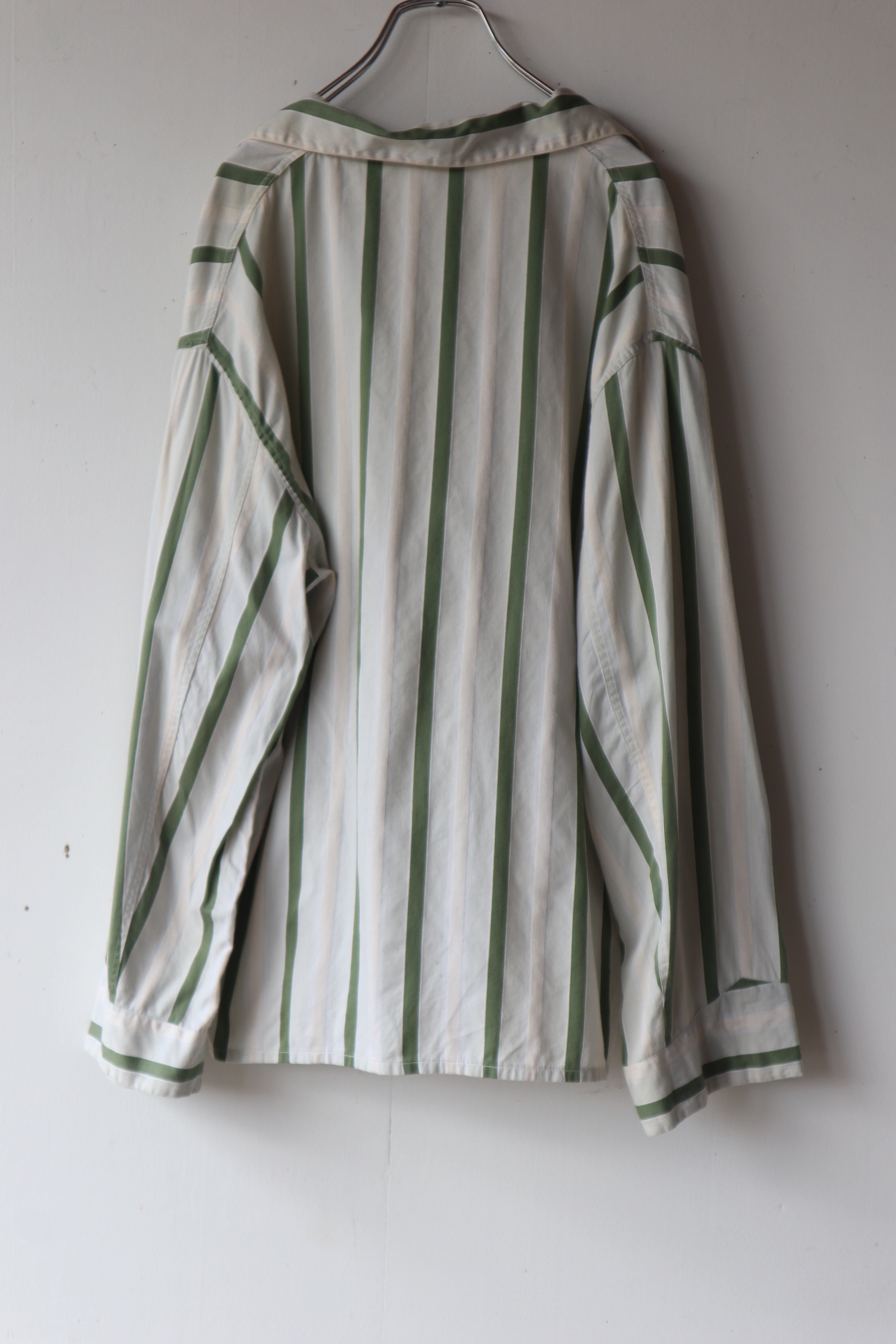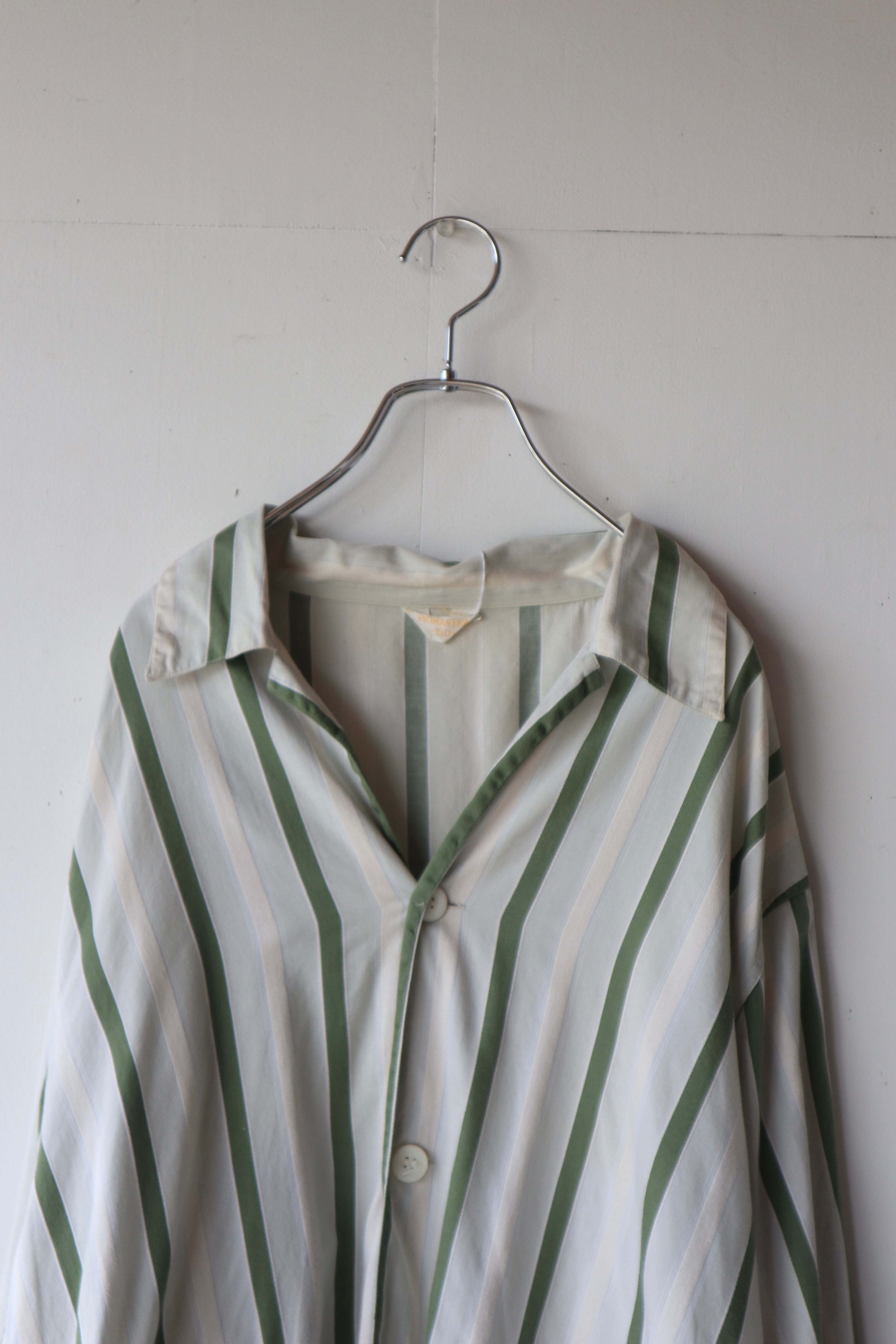淡い水色をベースにグリーンと白のストライプが入ったパジャマシャツ