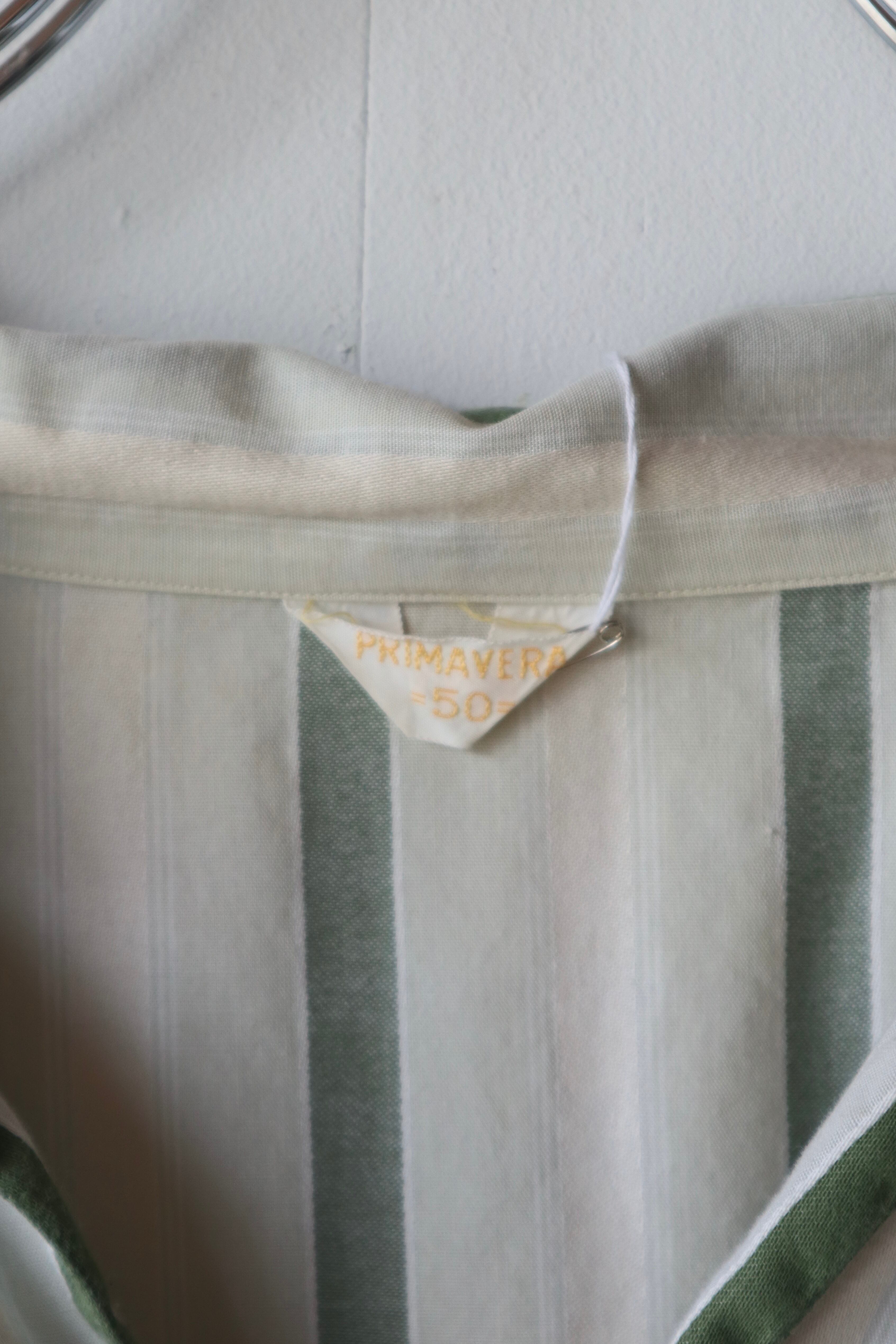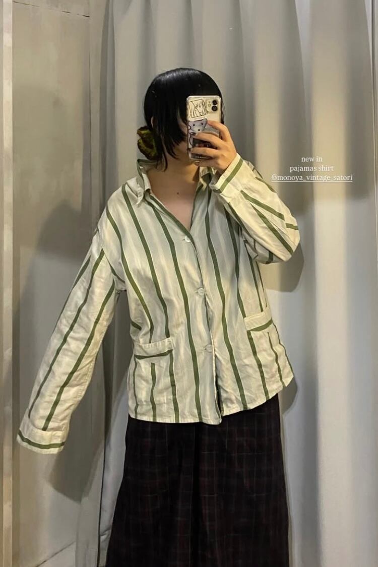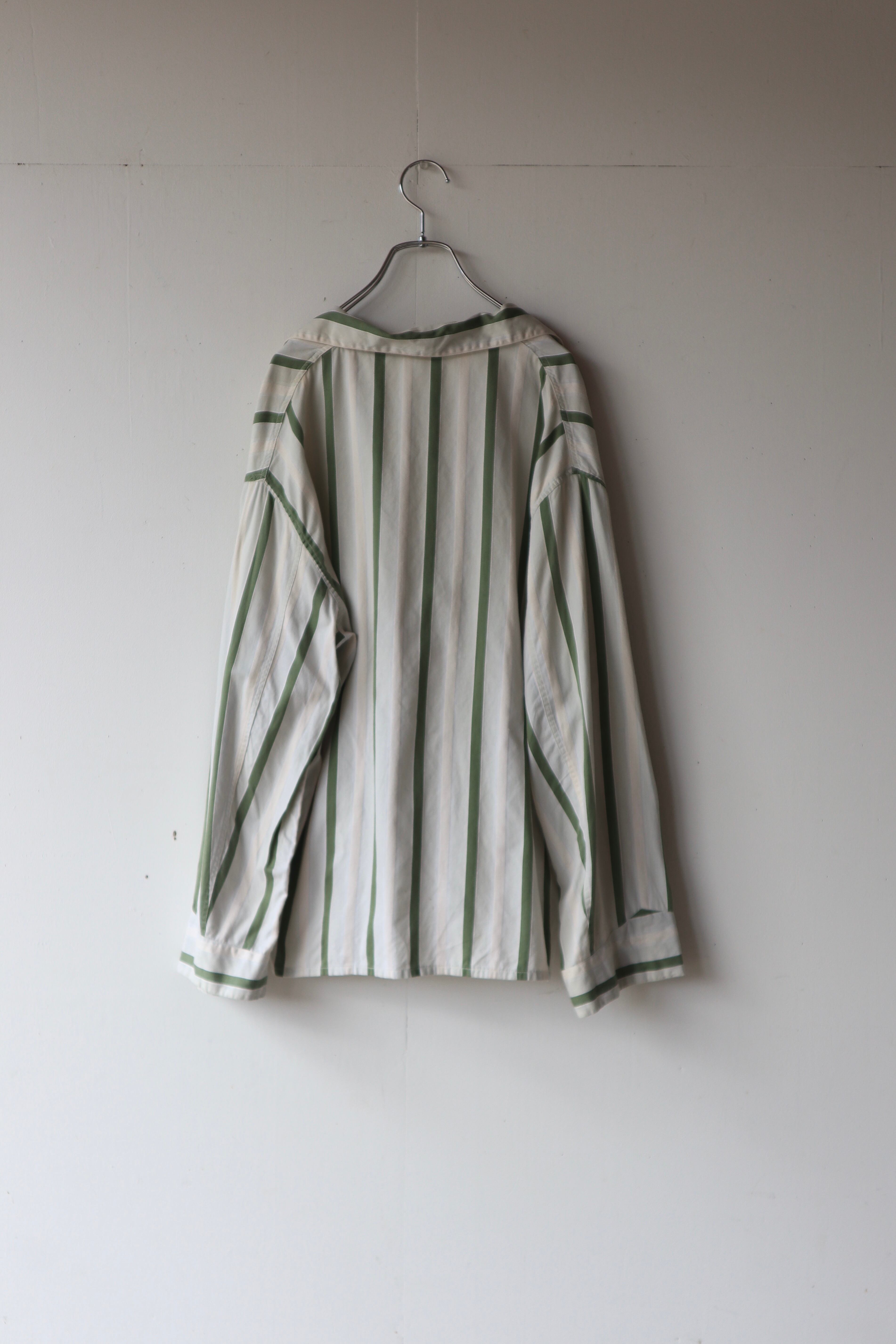 淡い水色をベースにグリーンと白のストライプが入ったパジャマシャツ