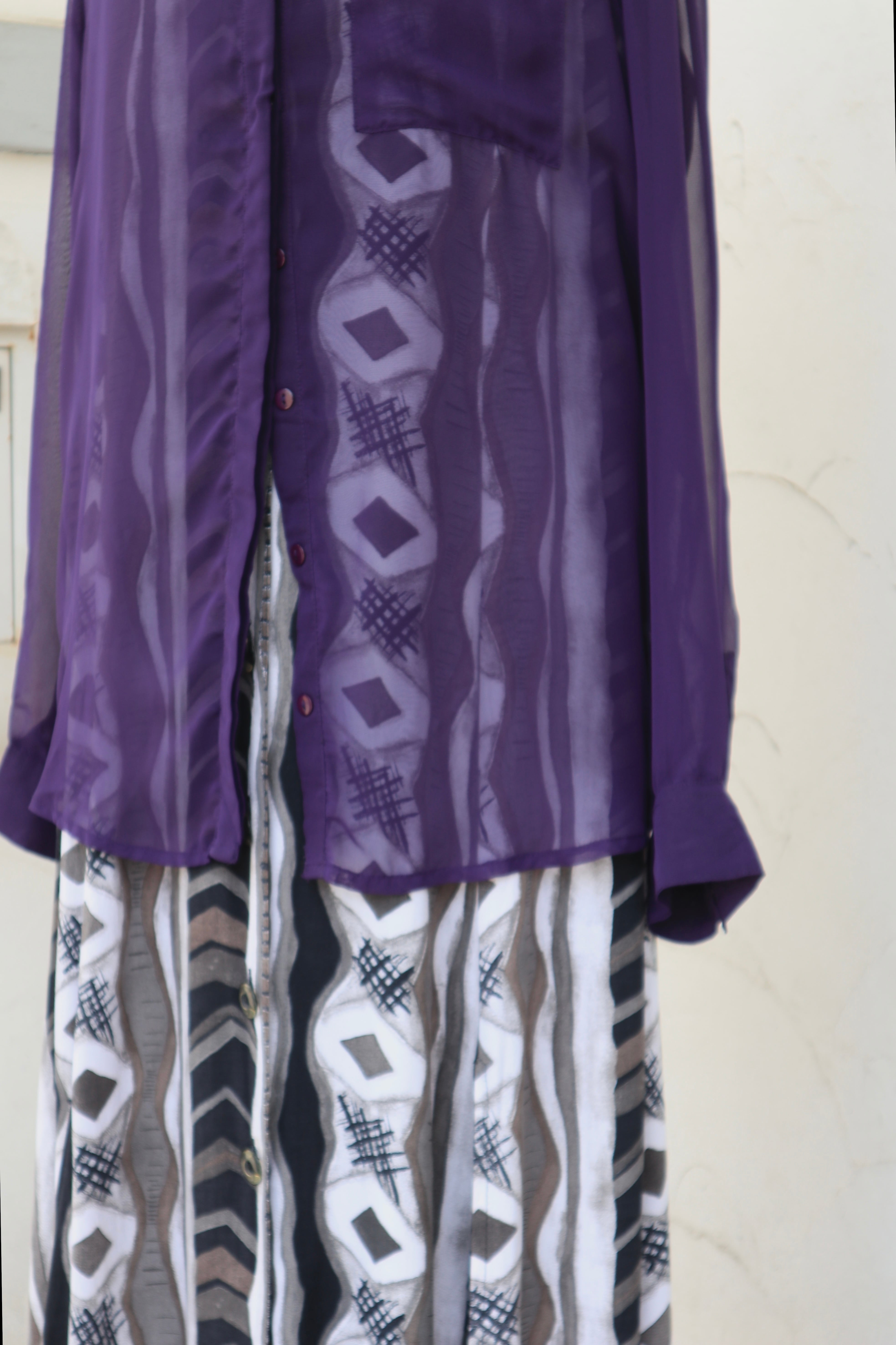 ほどよく透け感のあるアメジストのような紫色のシアーシャツ