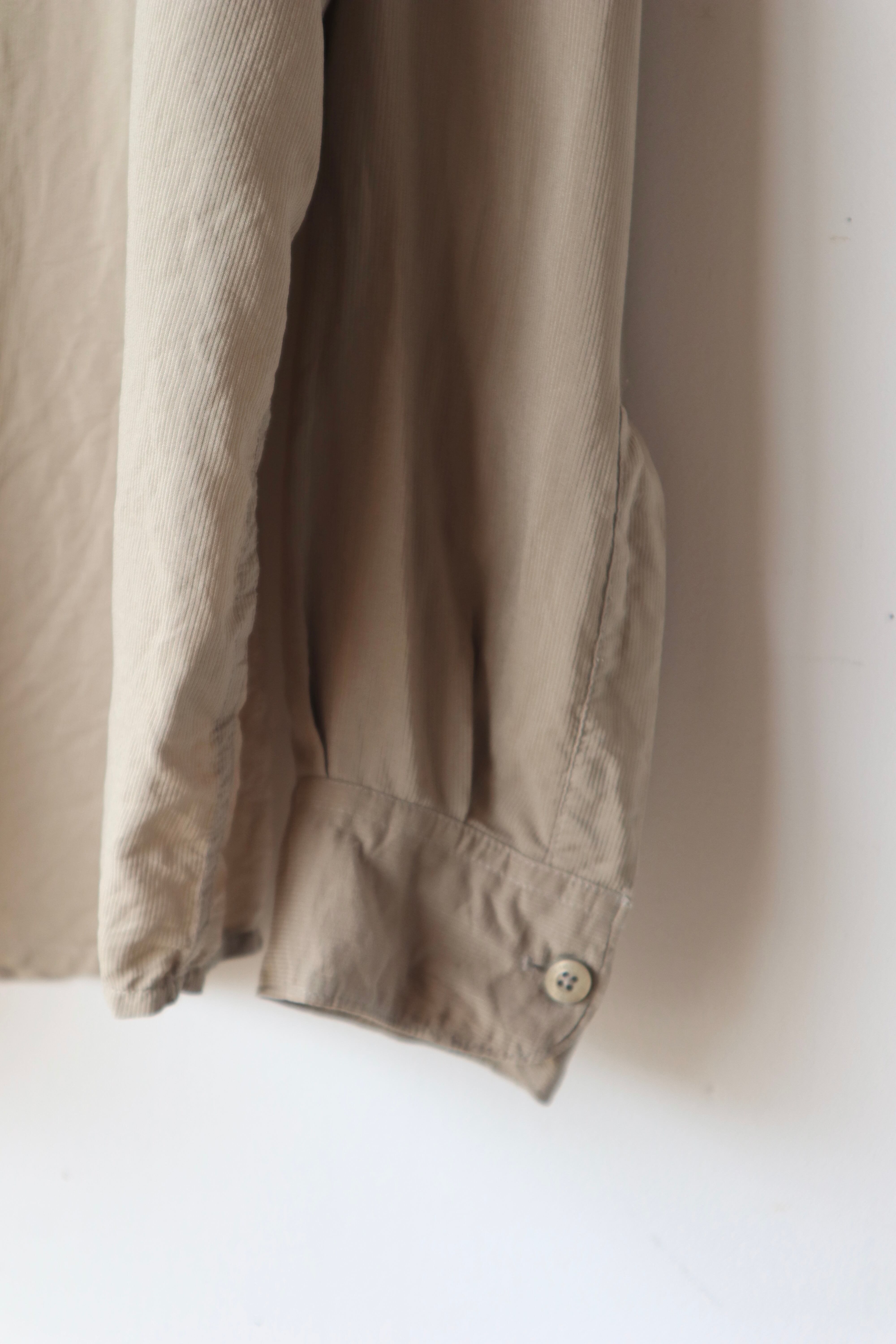 シルク素材ならではのうすさと軽さ、サラサラと肌触りの良いシルクシャツ
