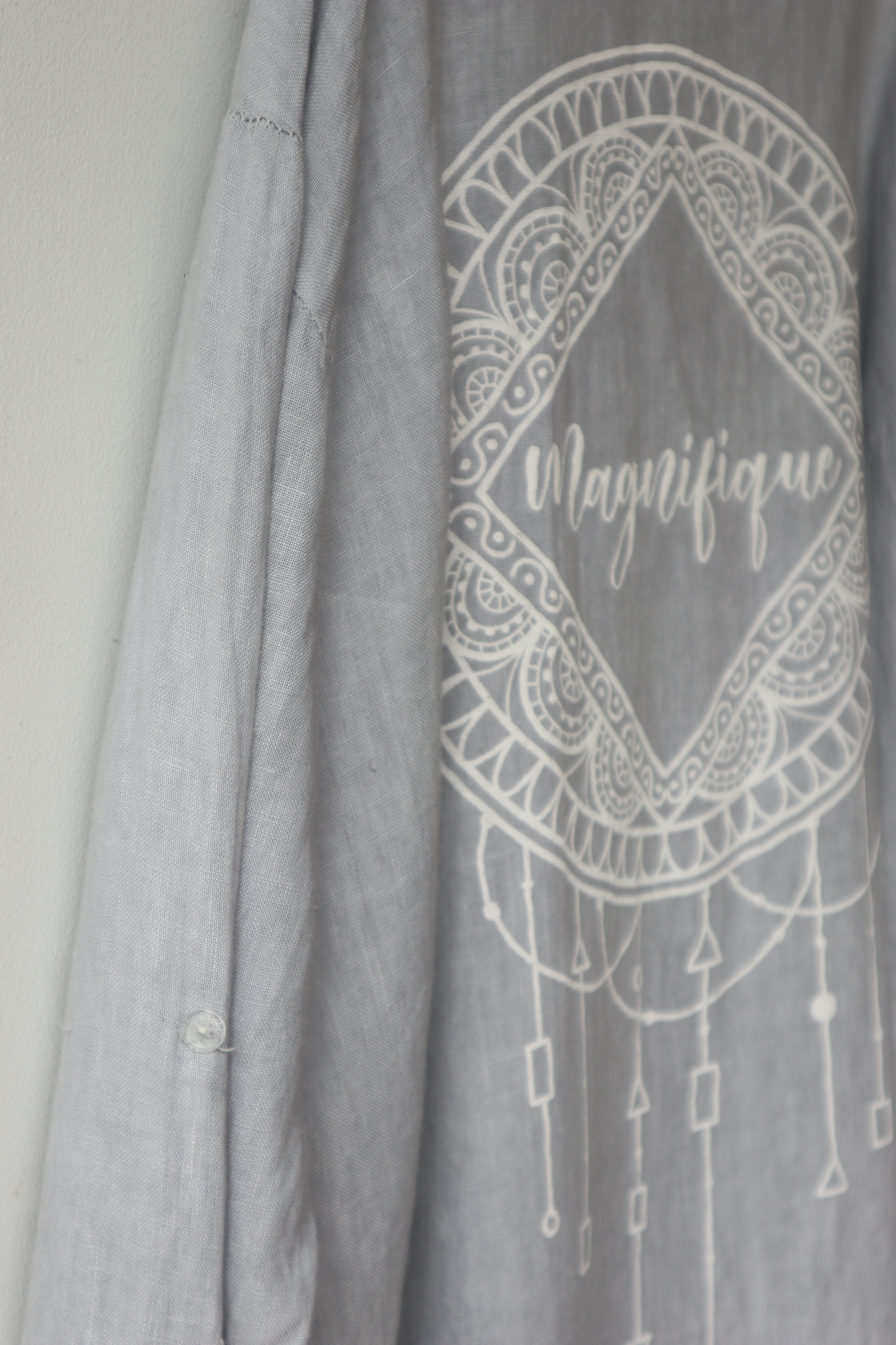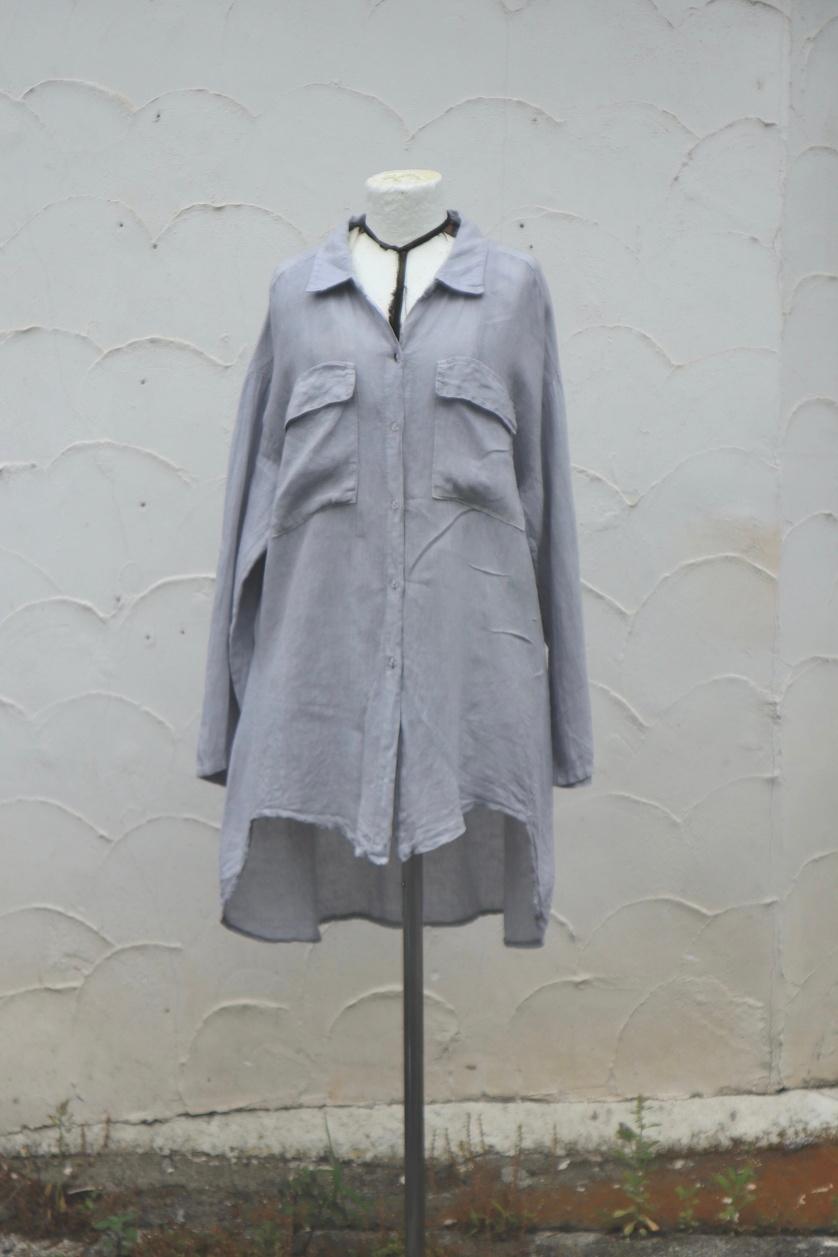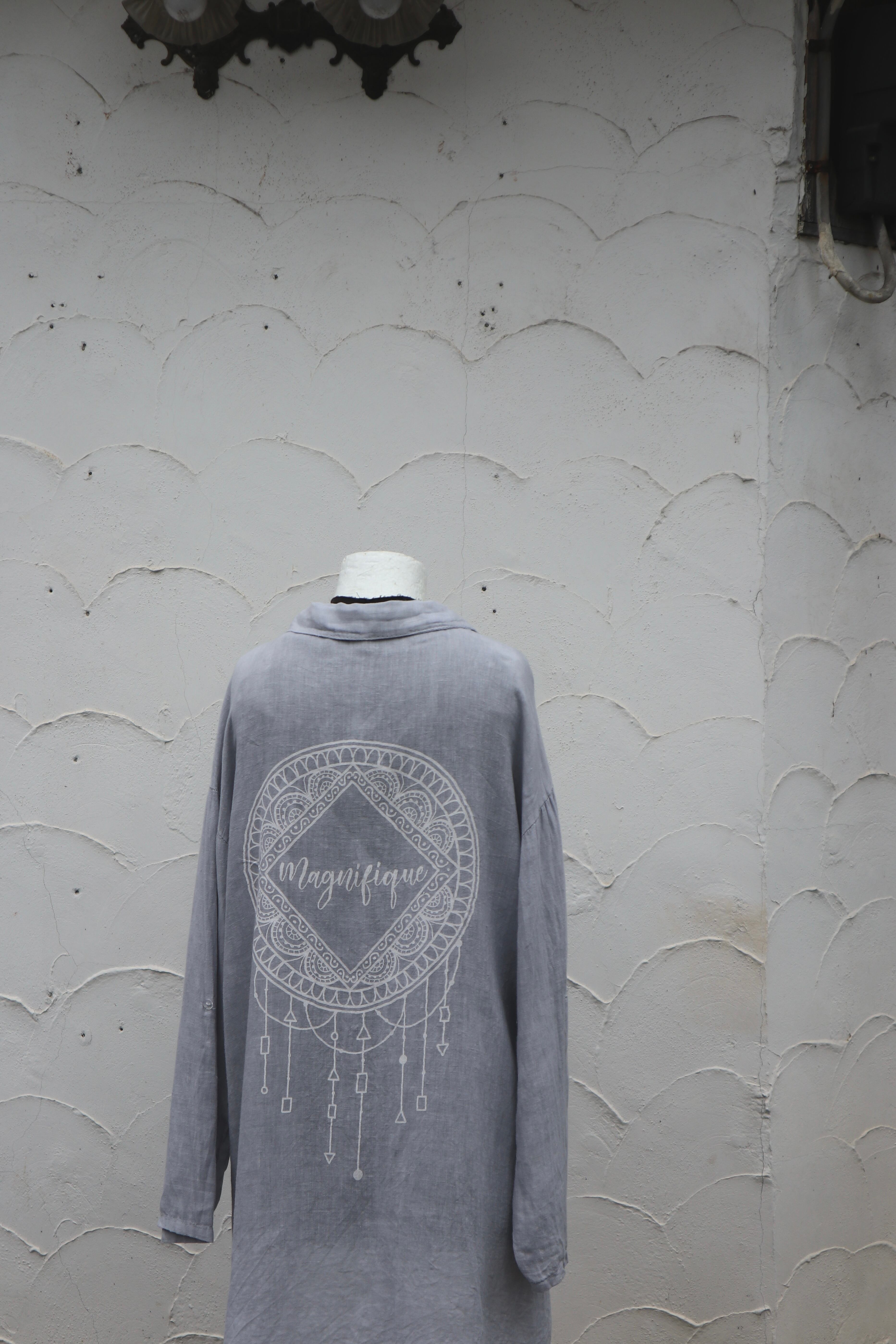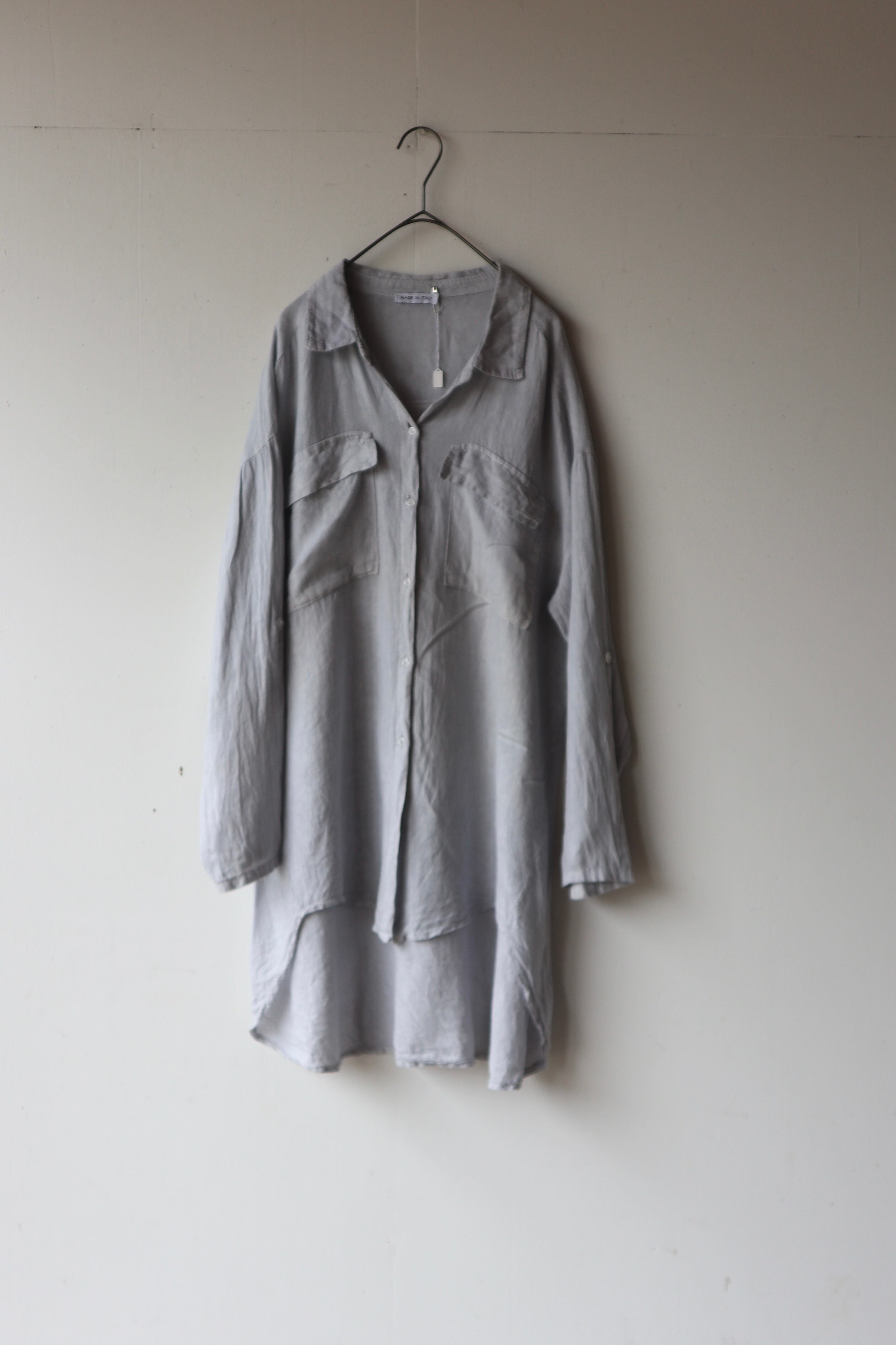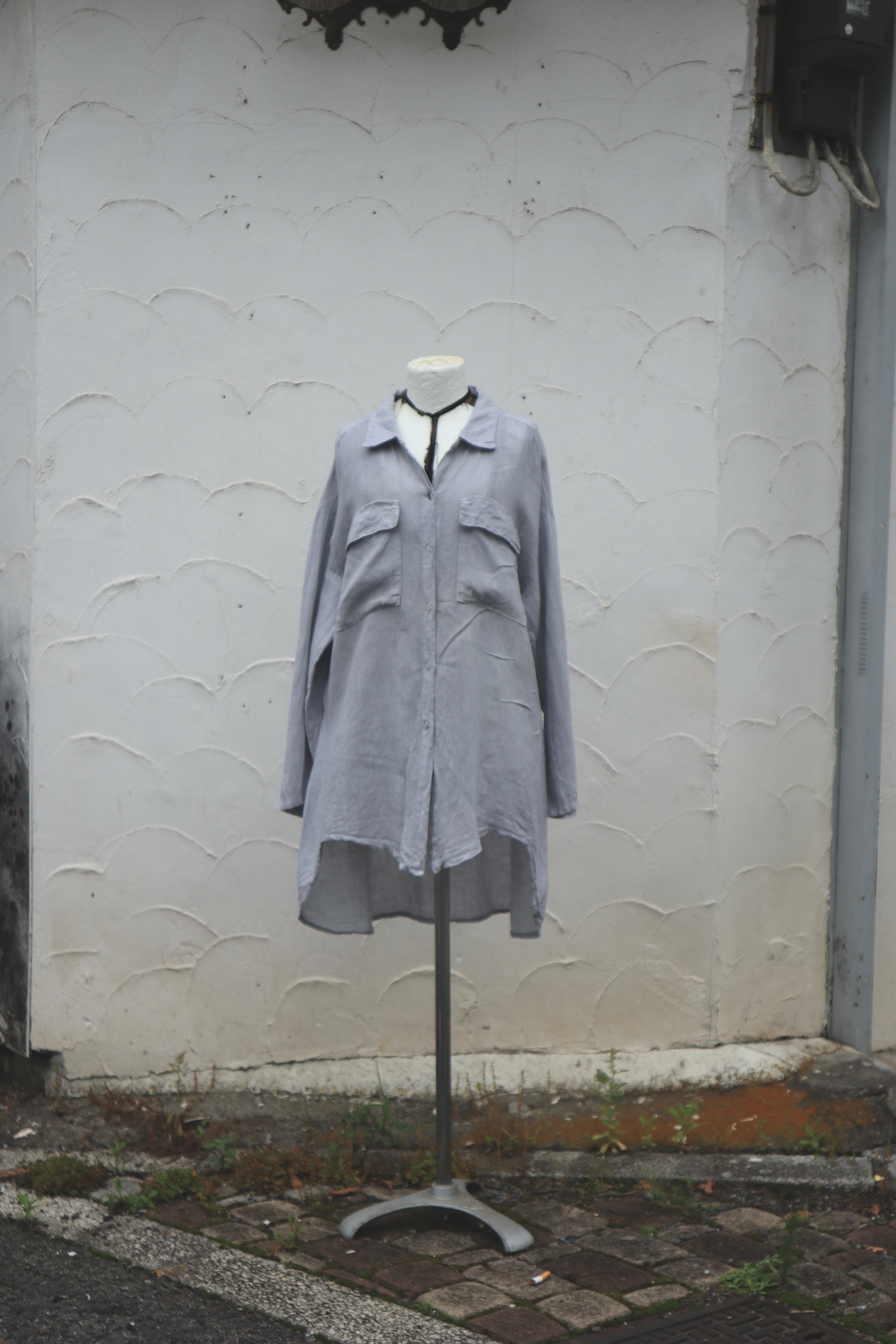 繊細でクリアなグレーカラーが涼しげなリネンシャツ