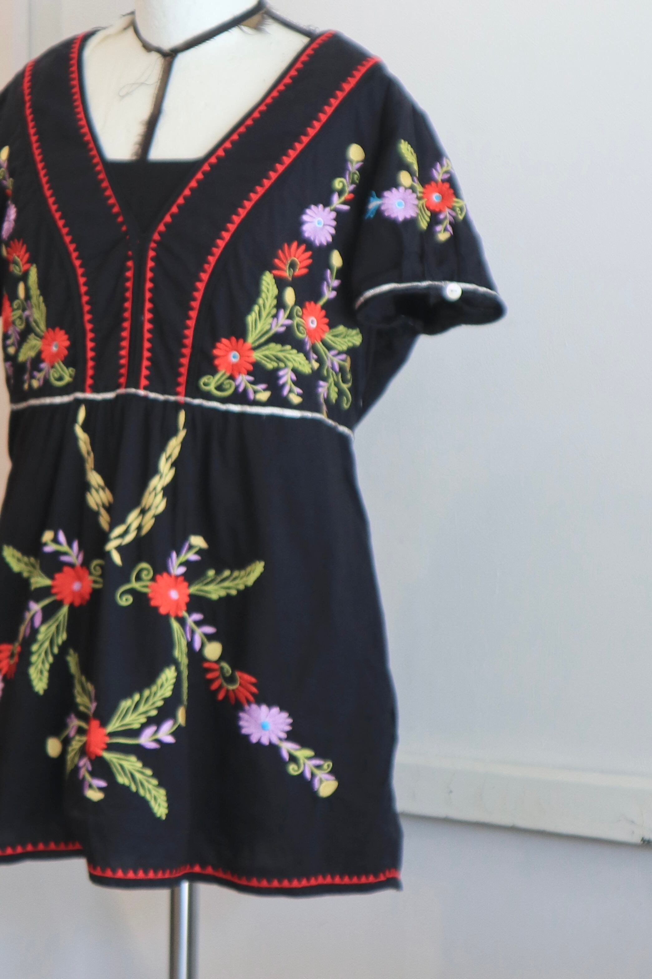 色とりどりの花々を思わせる刺繍が目を惹くチュニックトップス