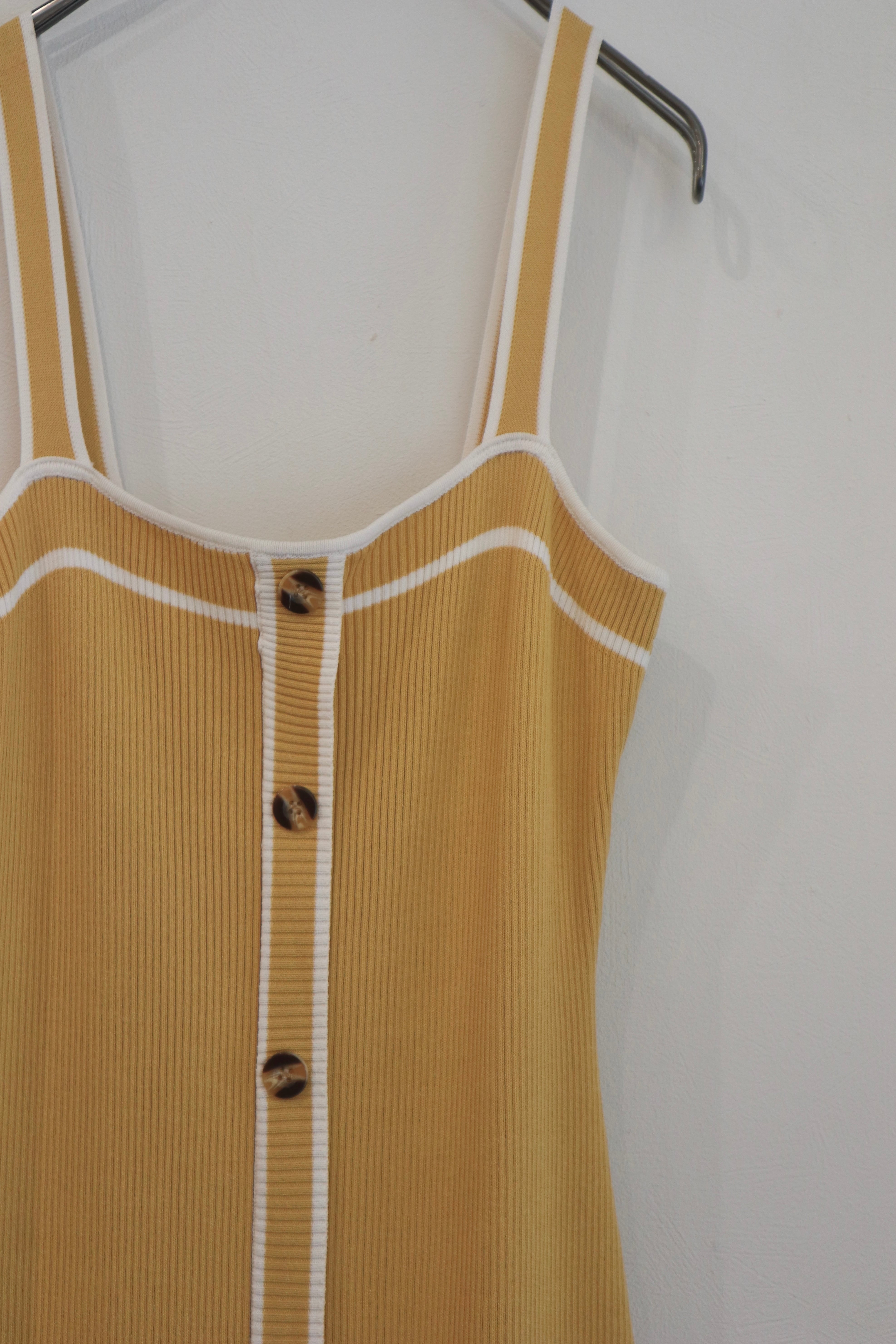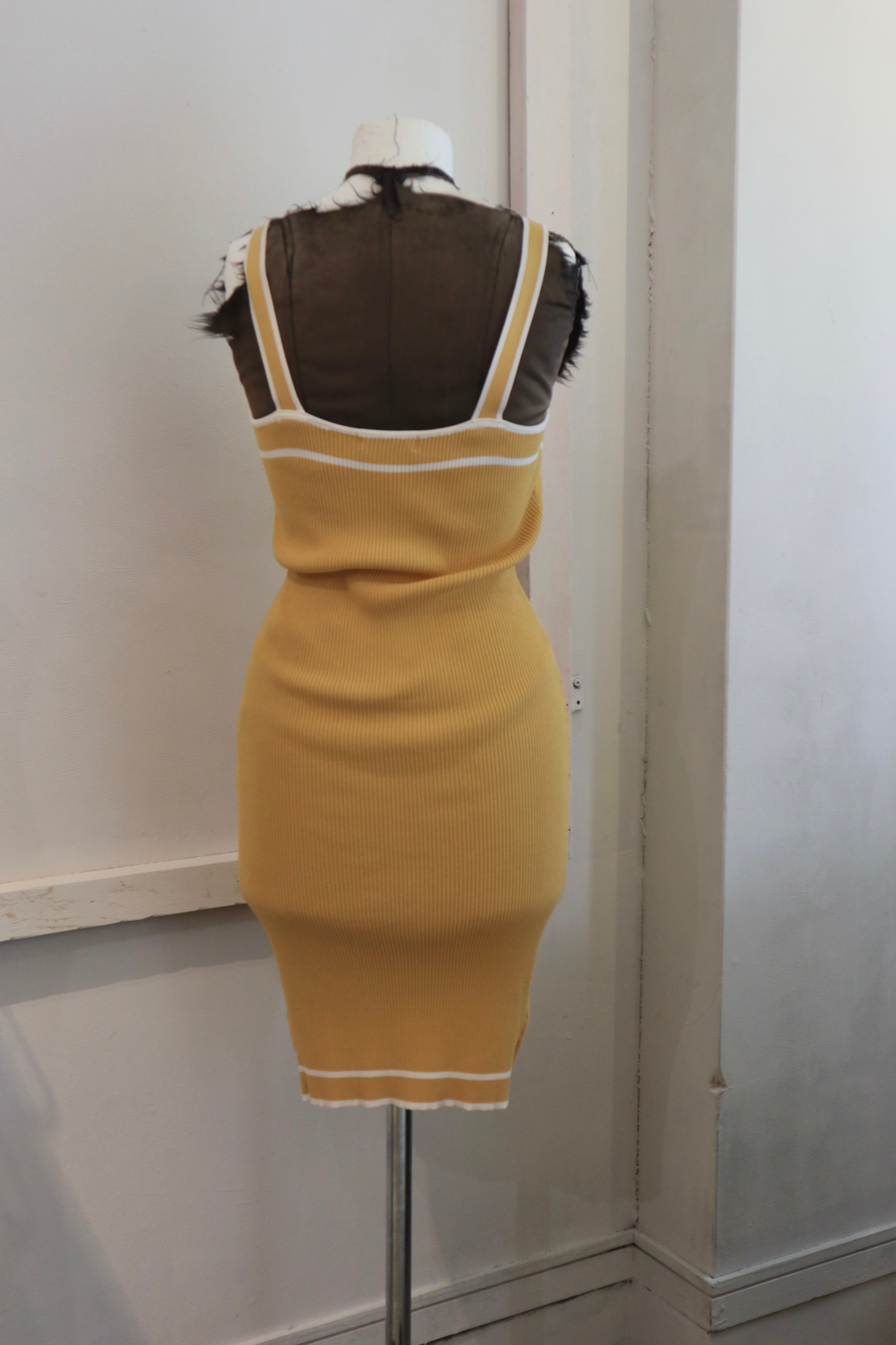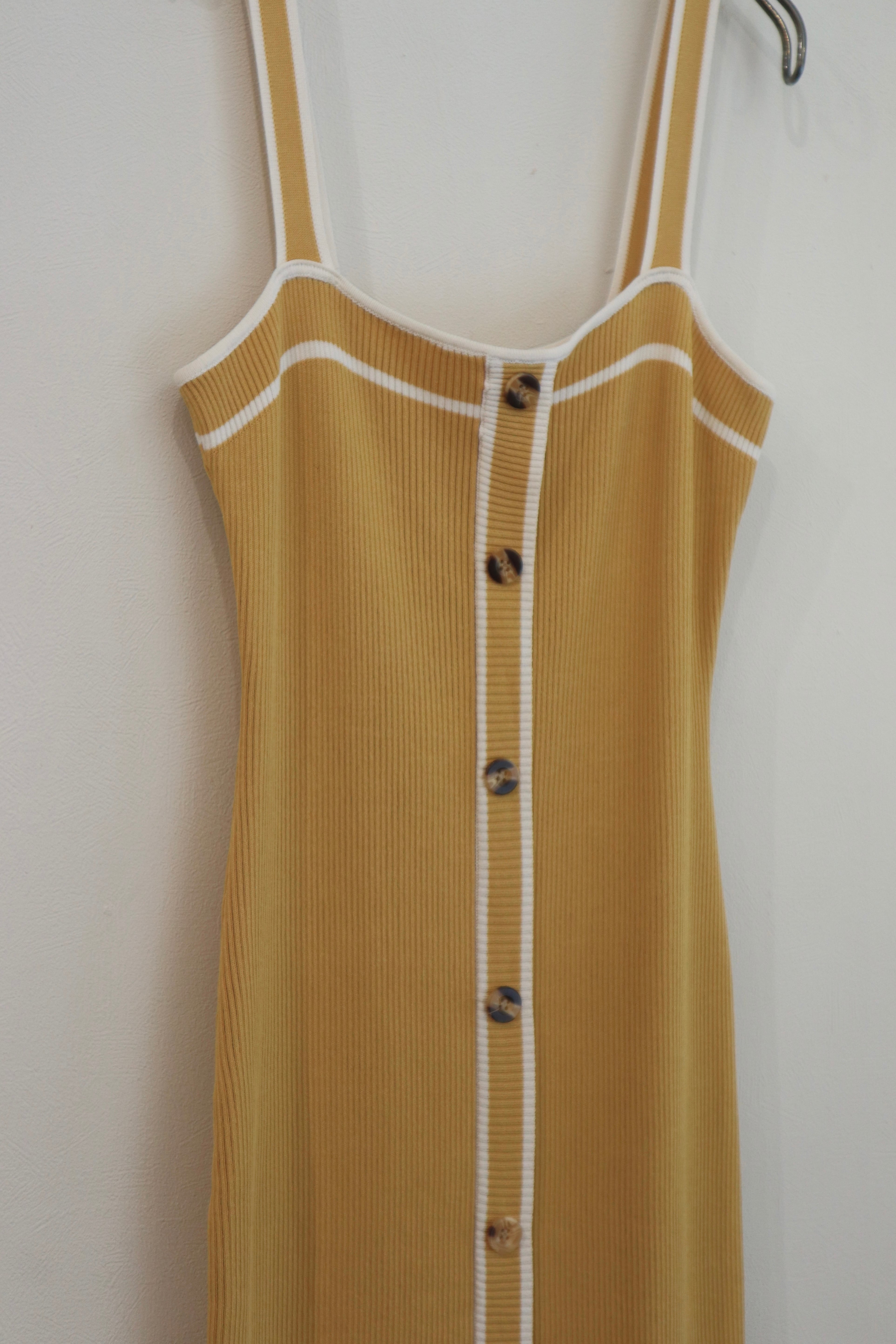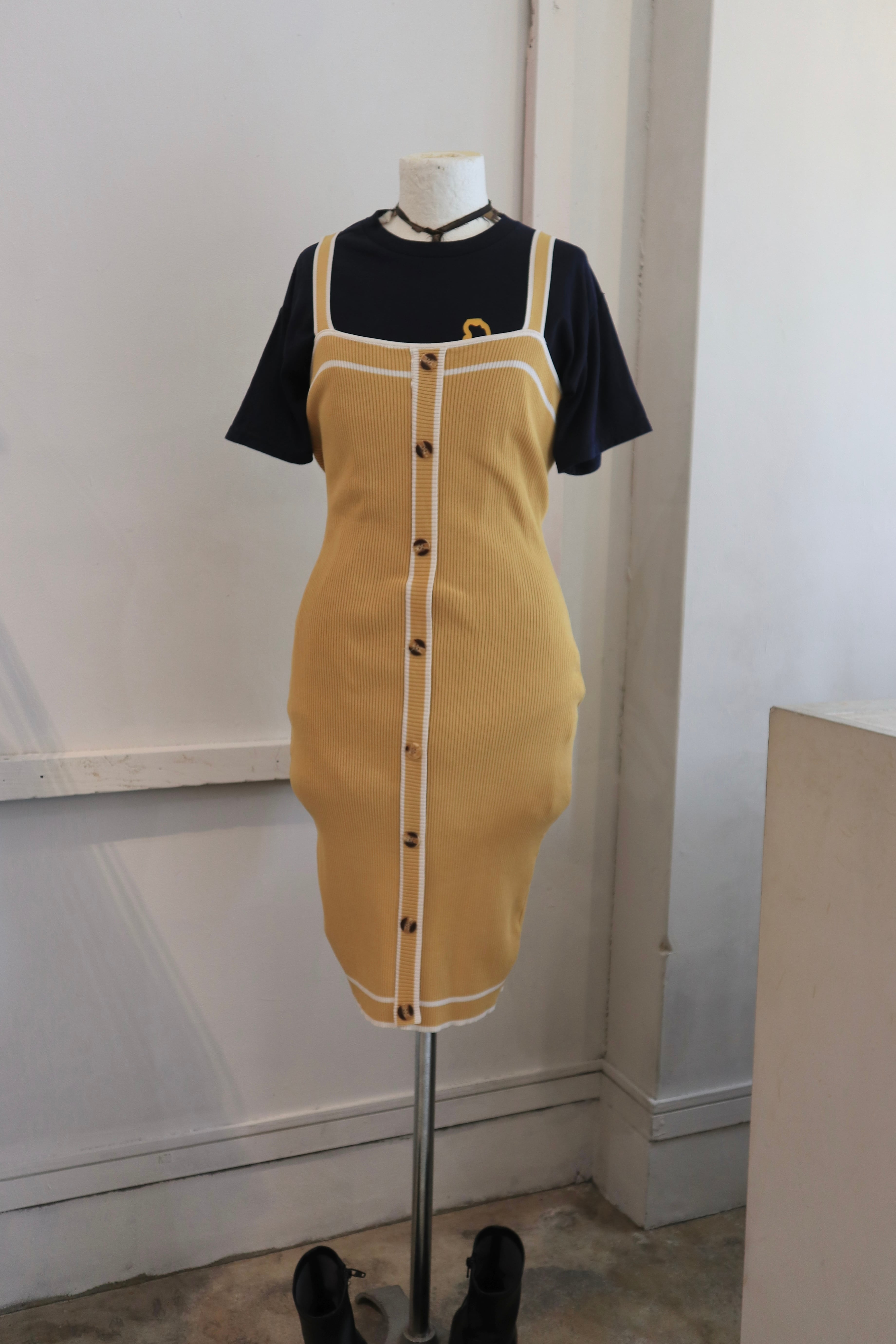 あたたかみのあるマスタードイエローが目を惹くリブニット素材のワンピース