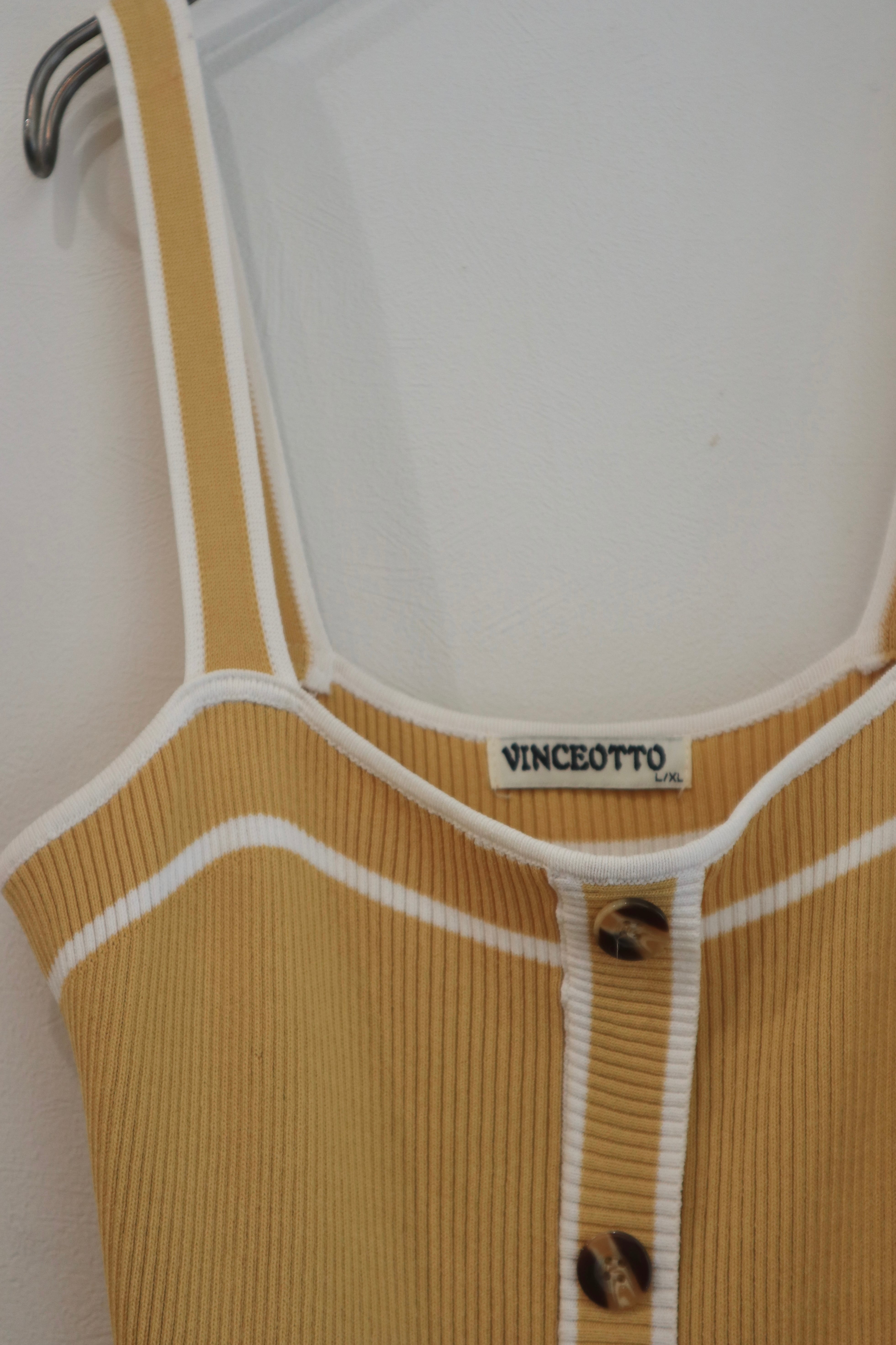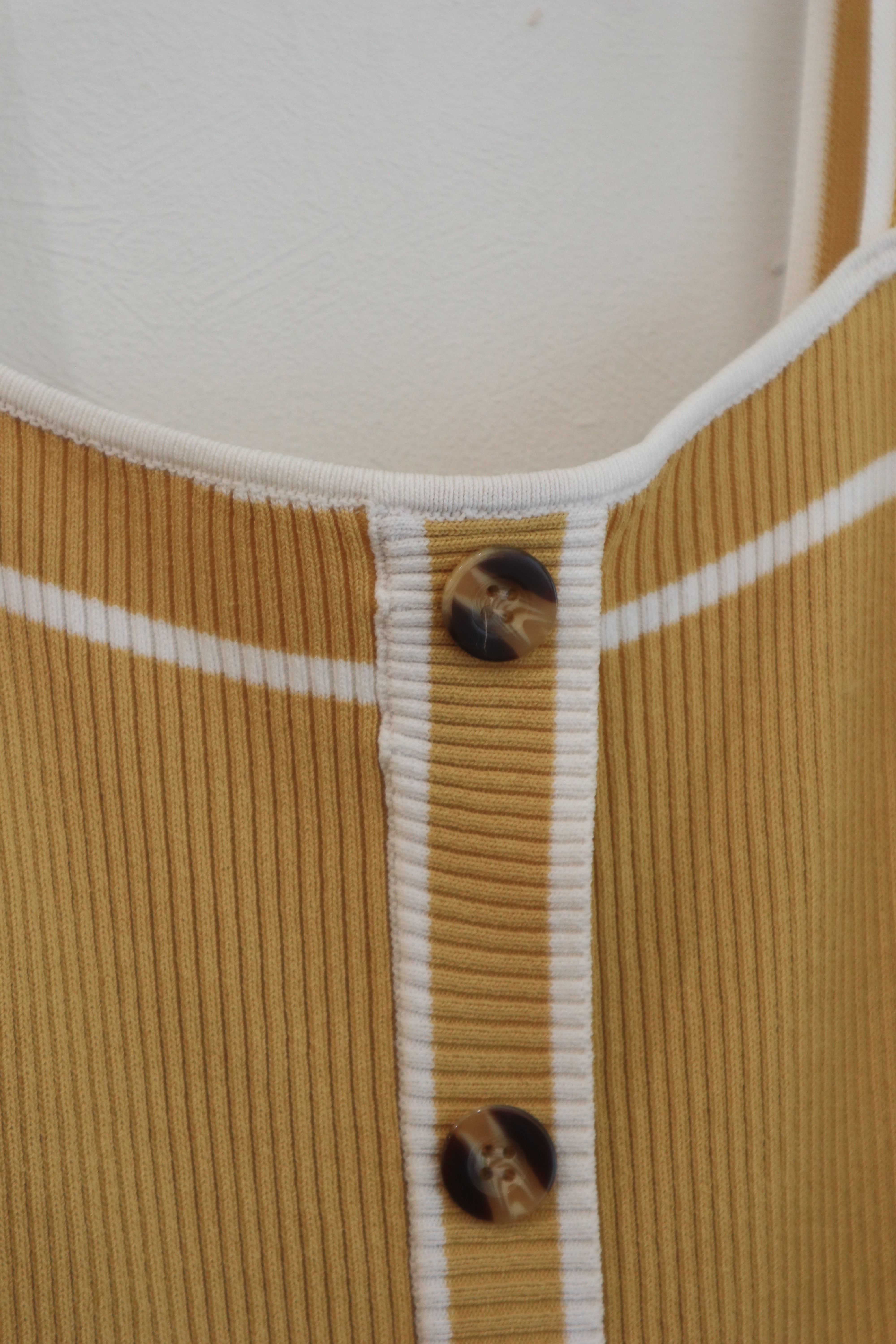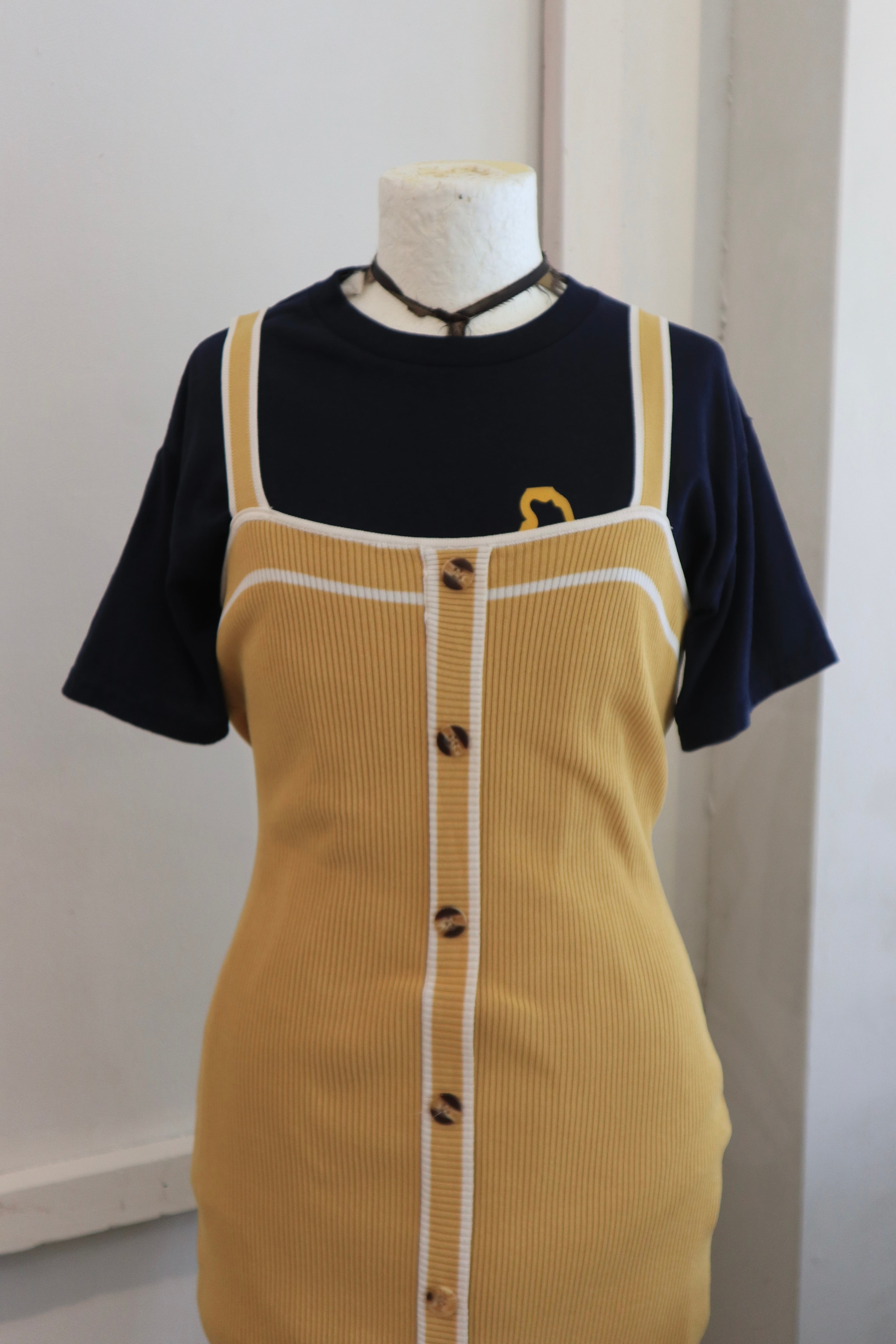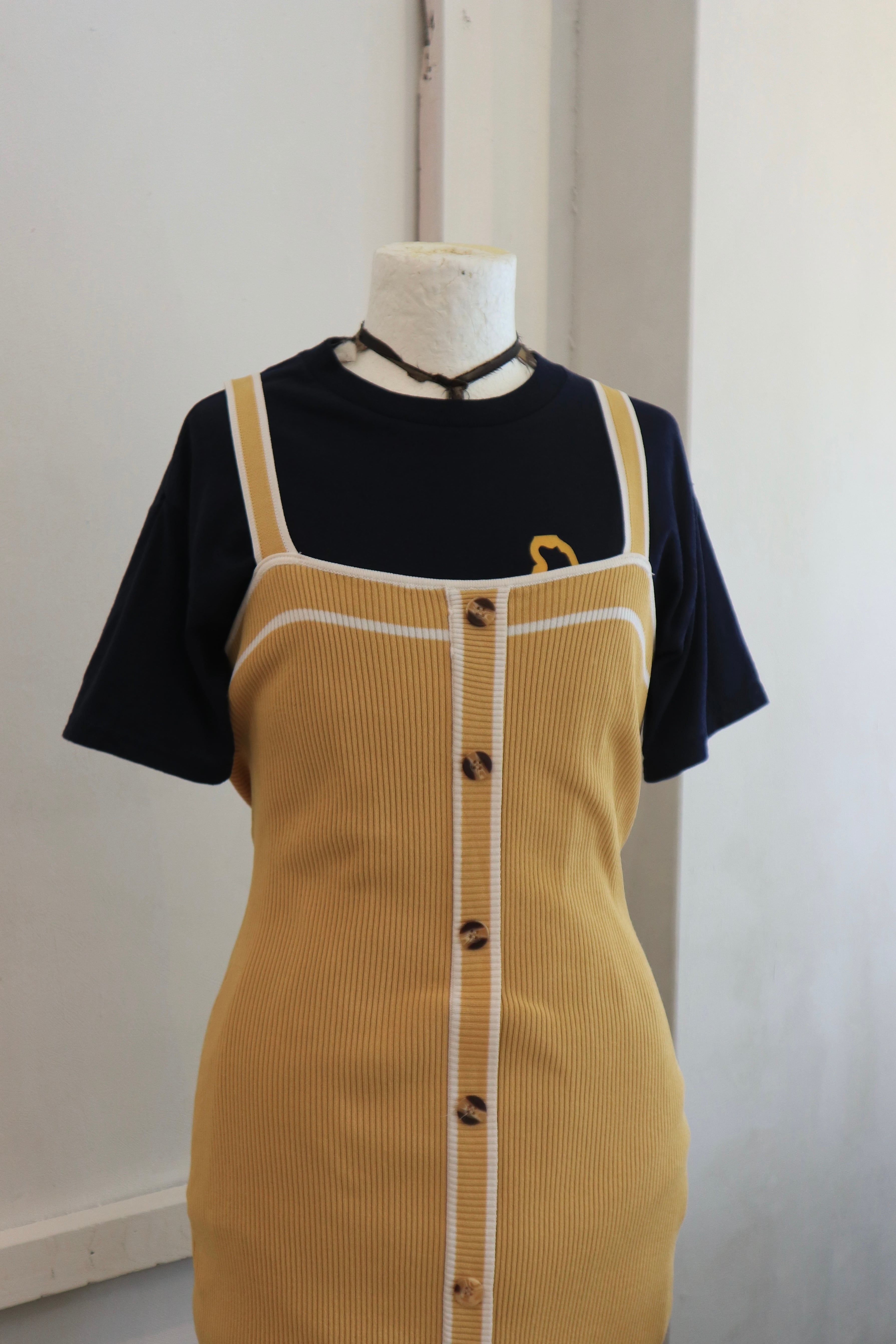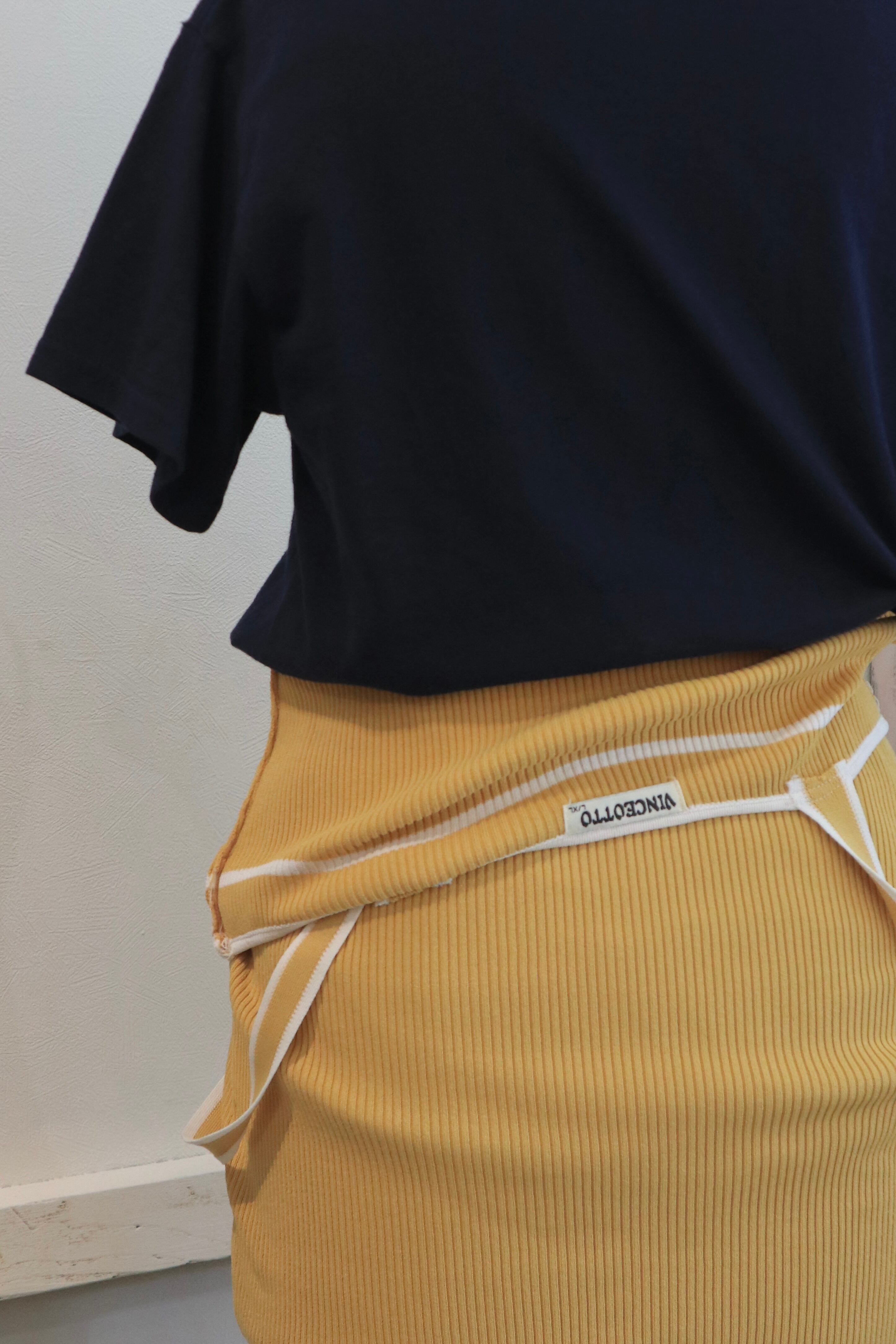 あたたかみのあるマスタードイエローが目を惹くリブニット素材のワンピース