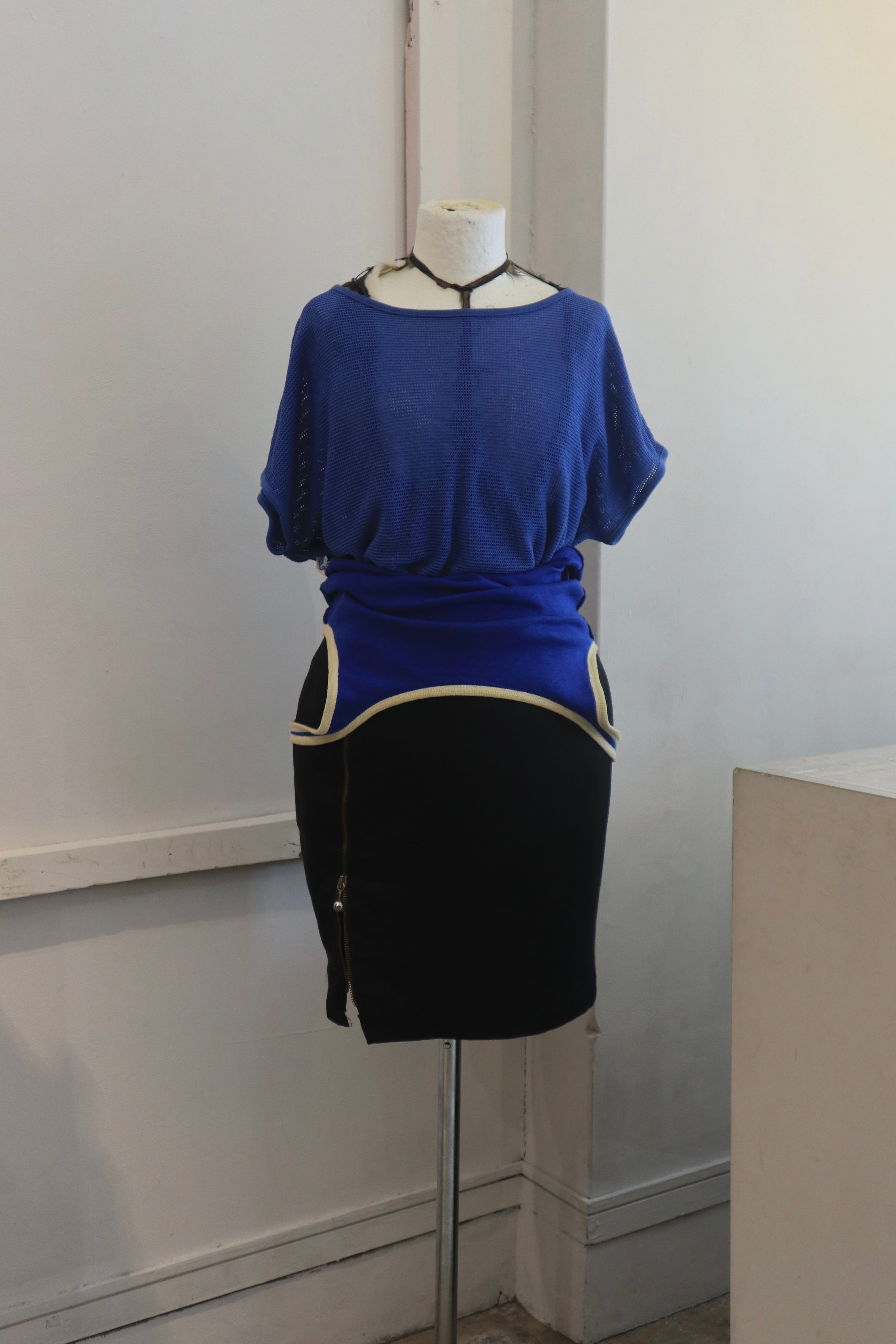 ストレッチの効いたくたっとやわらかな生地感とコンパクトなシルエットが身体にフィットし、ヘルシーでモードな雰囲気。