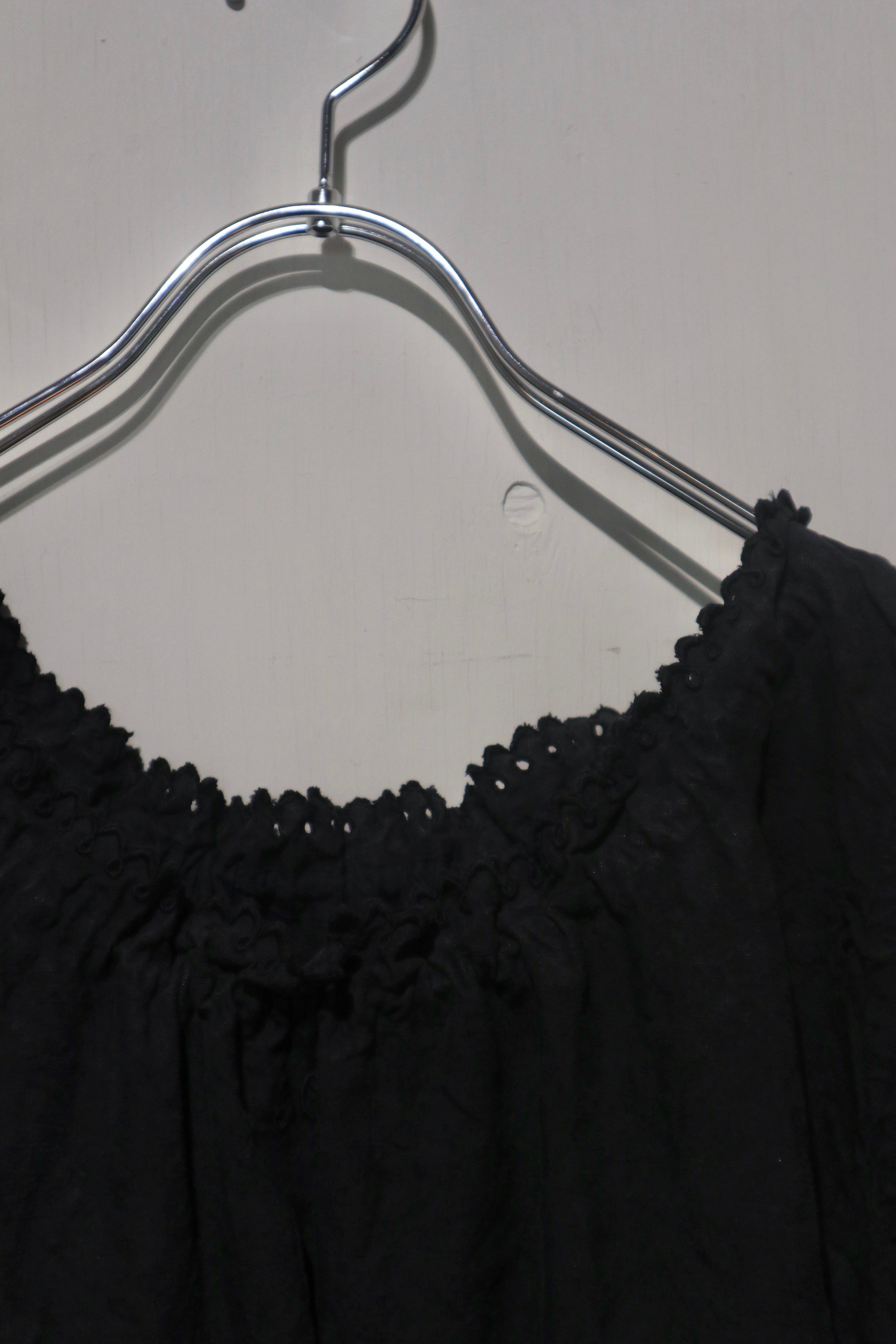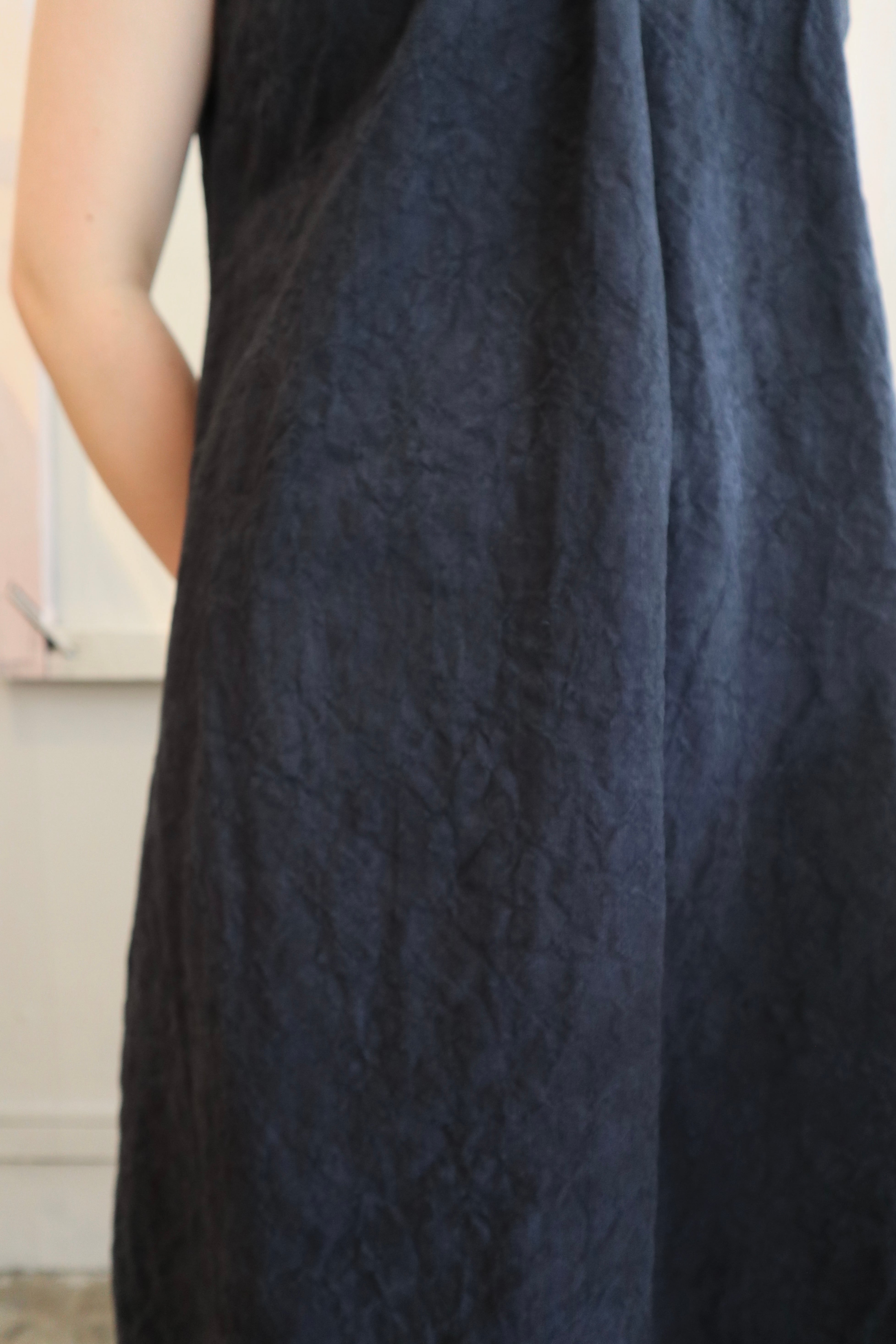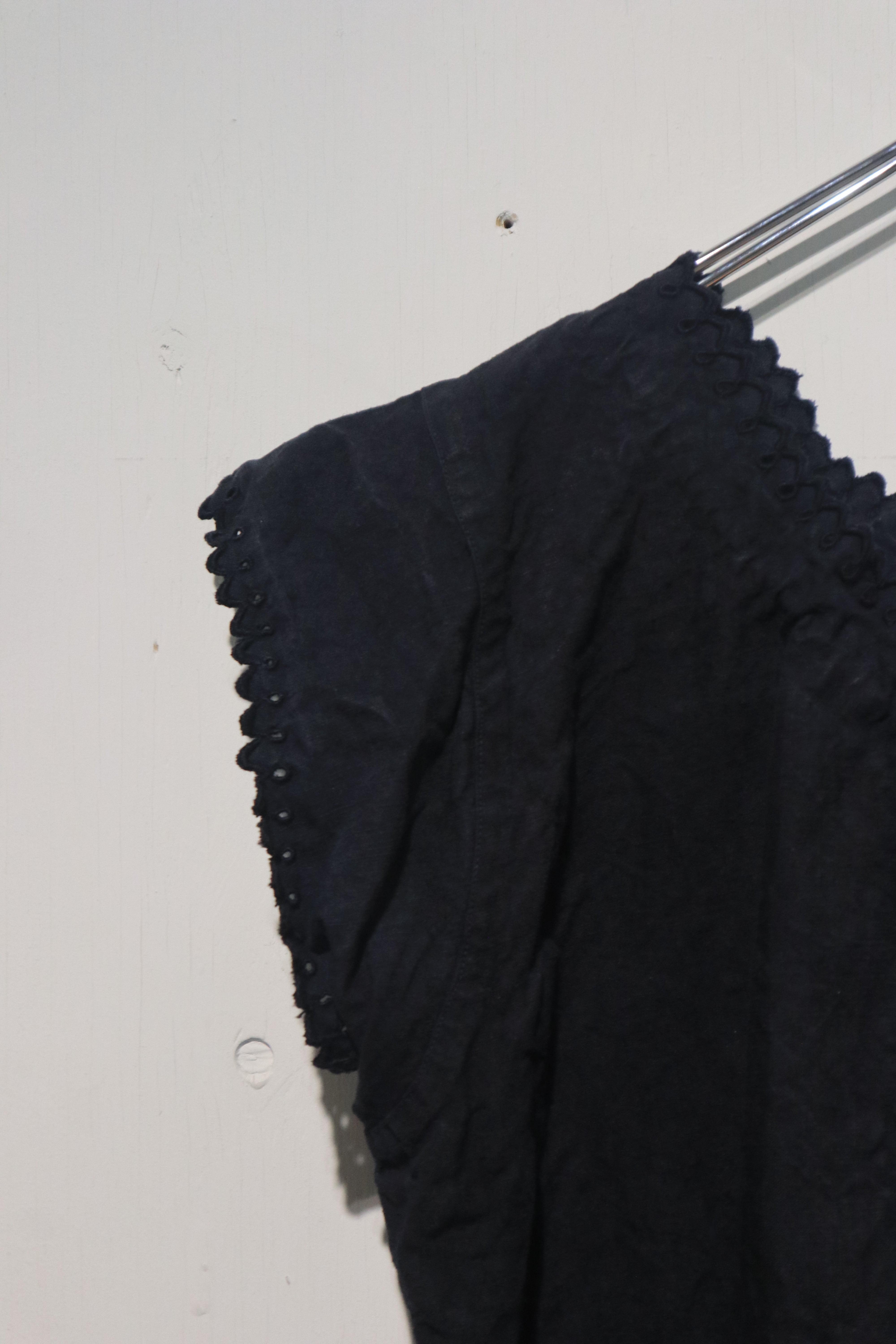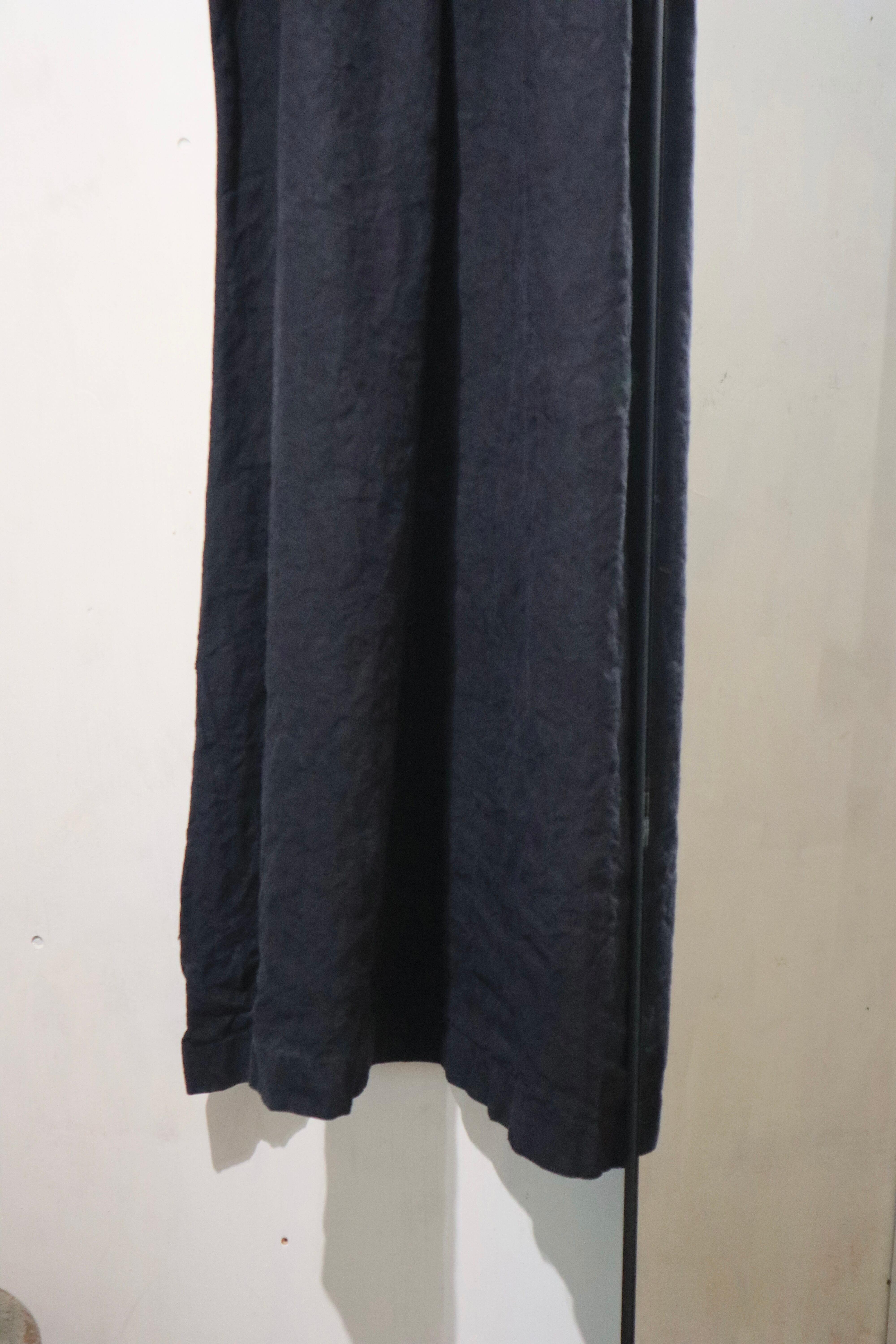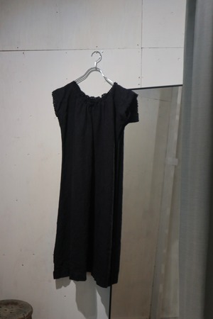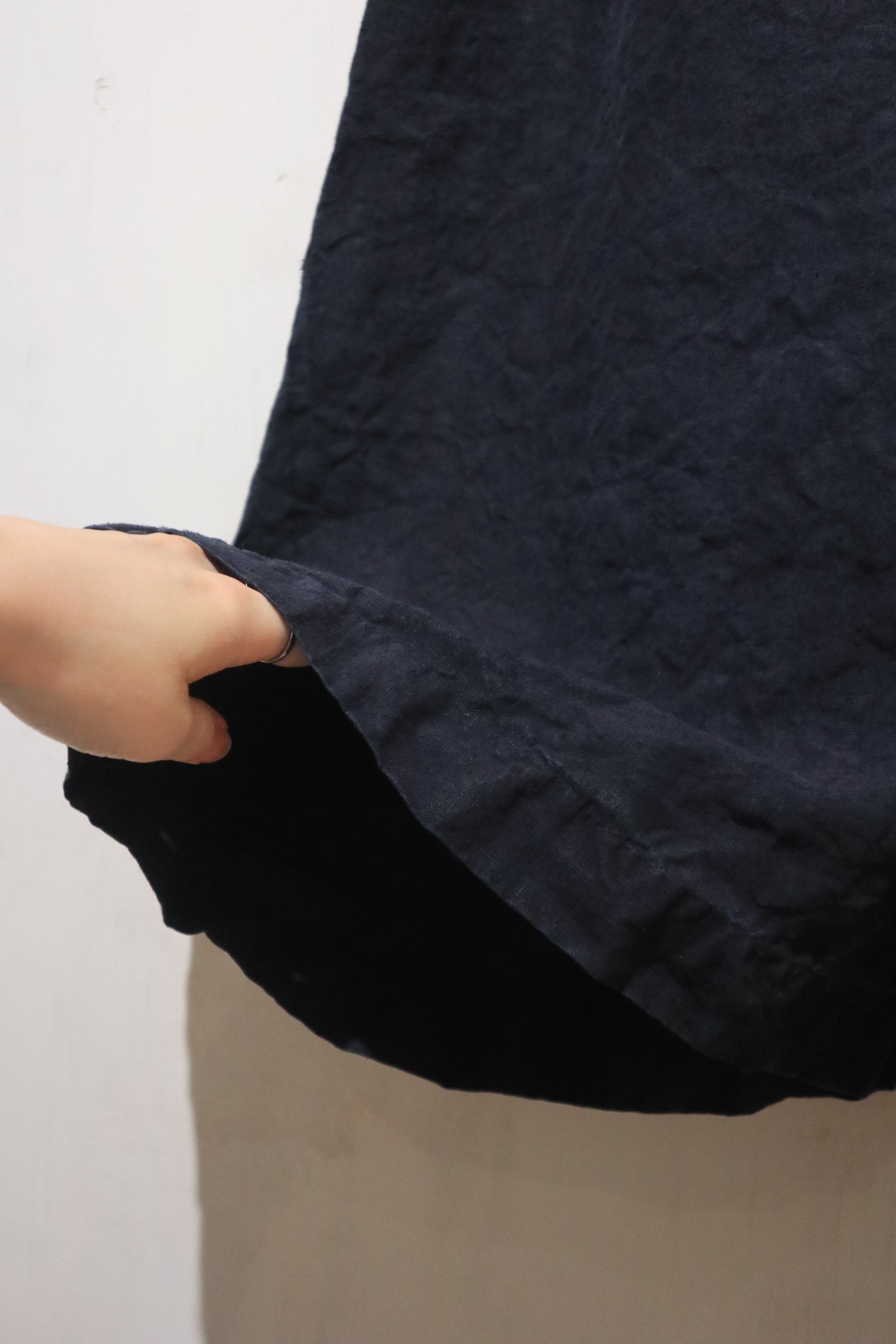 やや厚みのあるリネン素材で、黒く後染めしているので透け感を気にせず一枚で着用いただけます