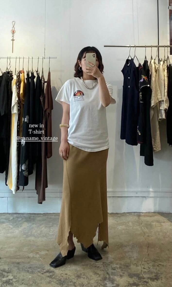 ほどよくコンパクトなサイズ感でカジュアルにパンツと合わせたり、ワンピースやキャミソールなどの下からプリントを覗かせるスタイリングもおすすめです