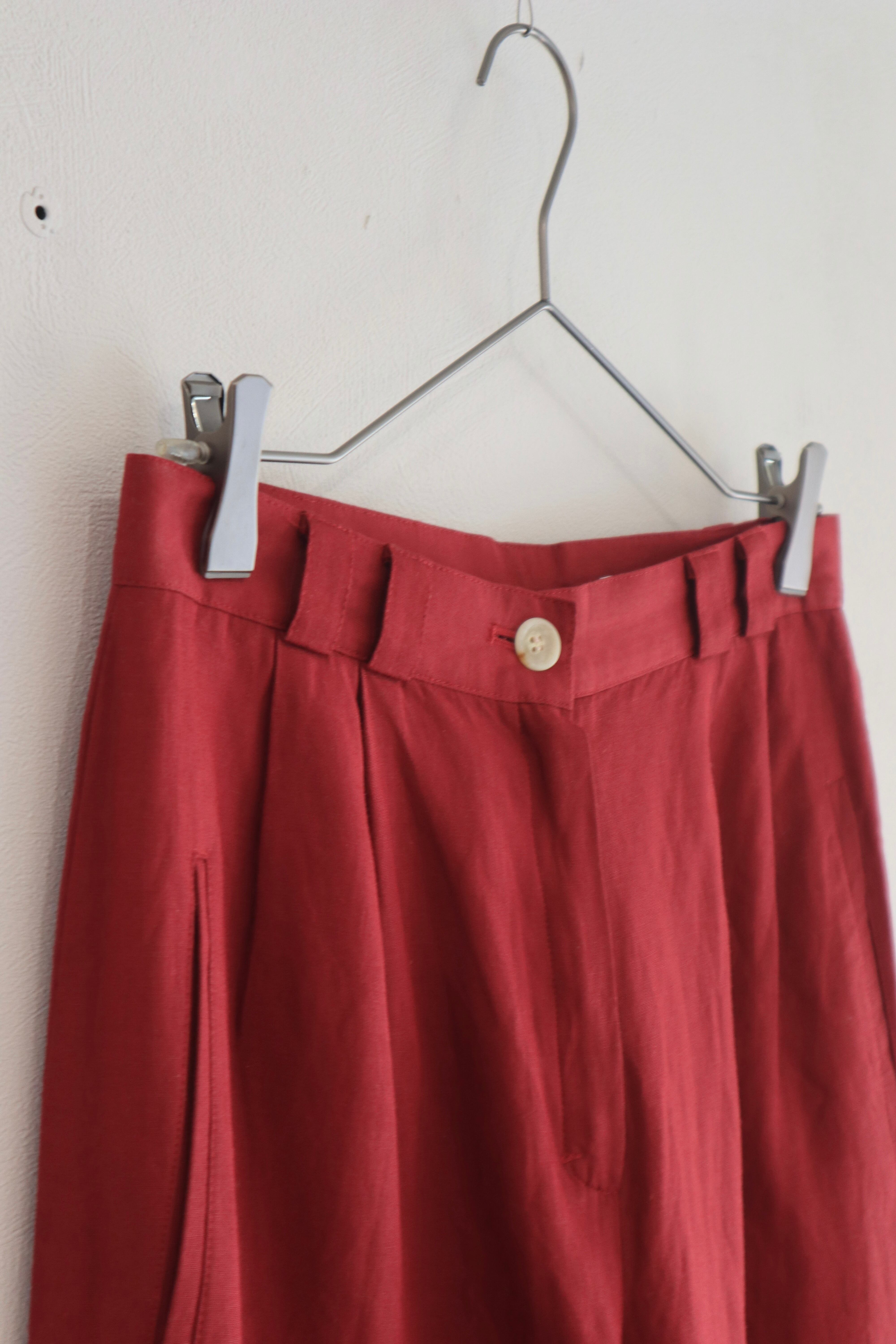 ウエストには幅広のベルトラインと立体的なタックが施されており、腰回りをすっきりと見せてくれます