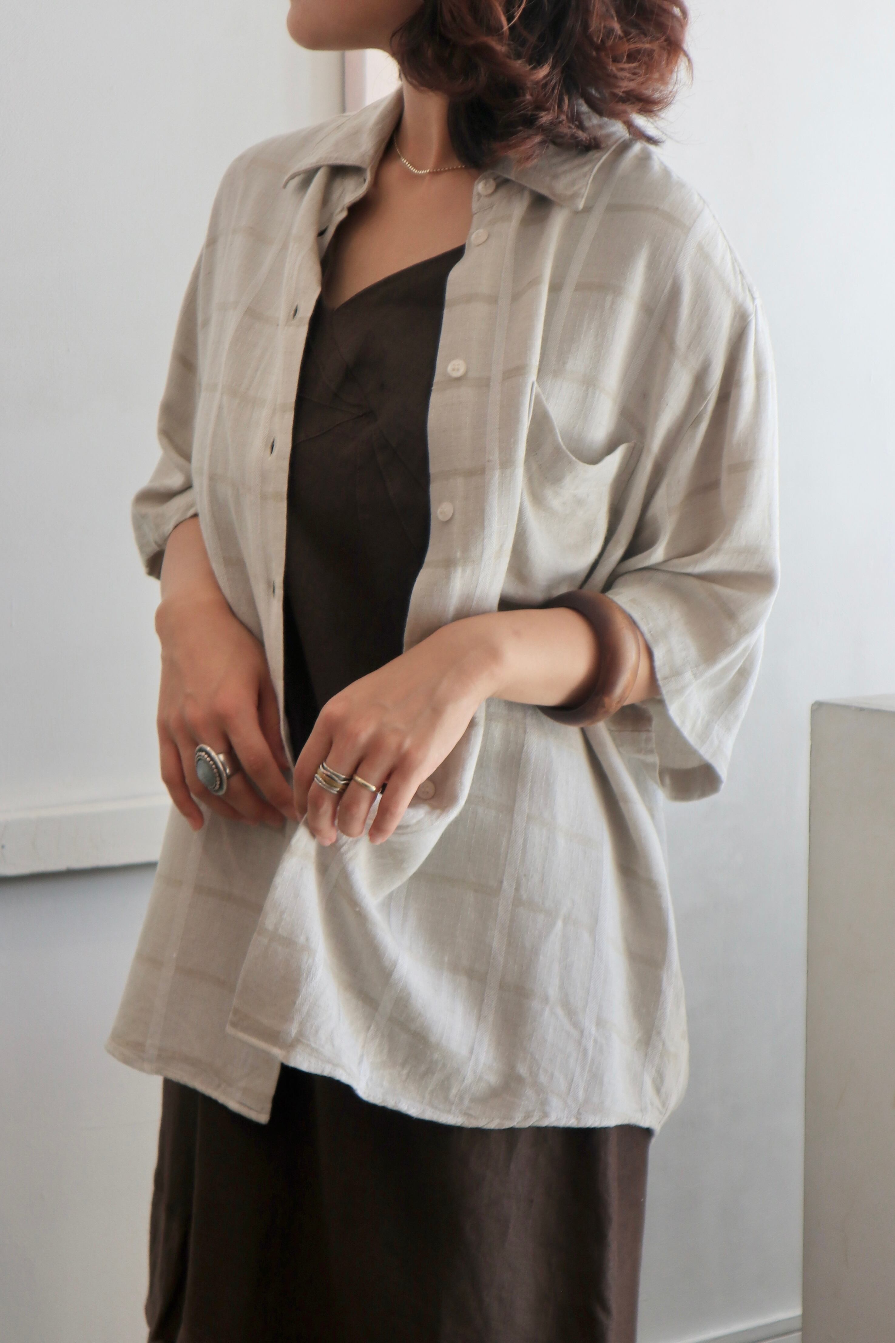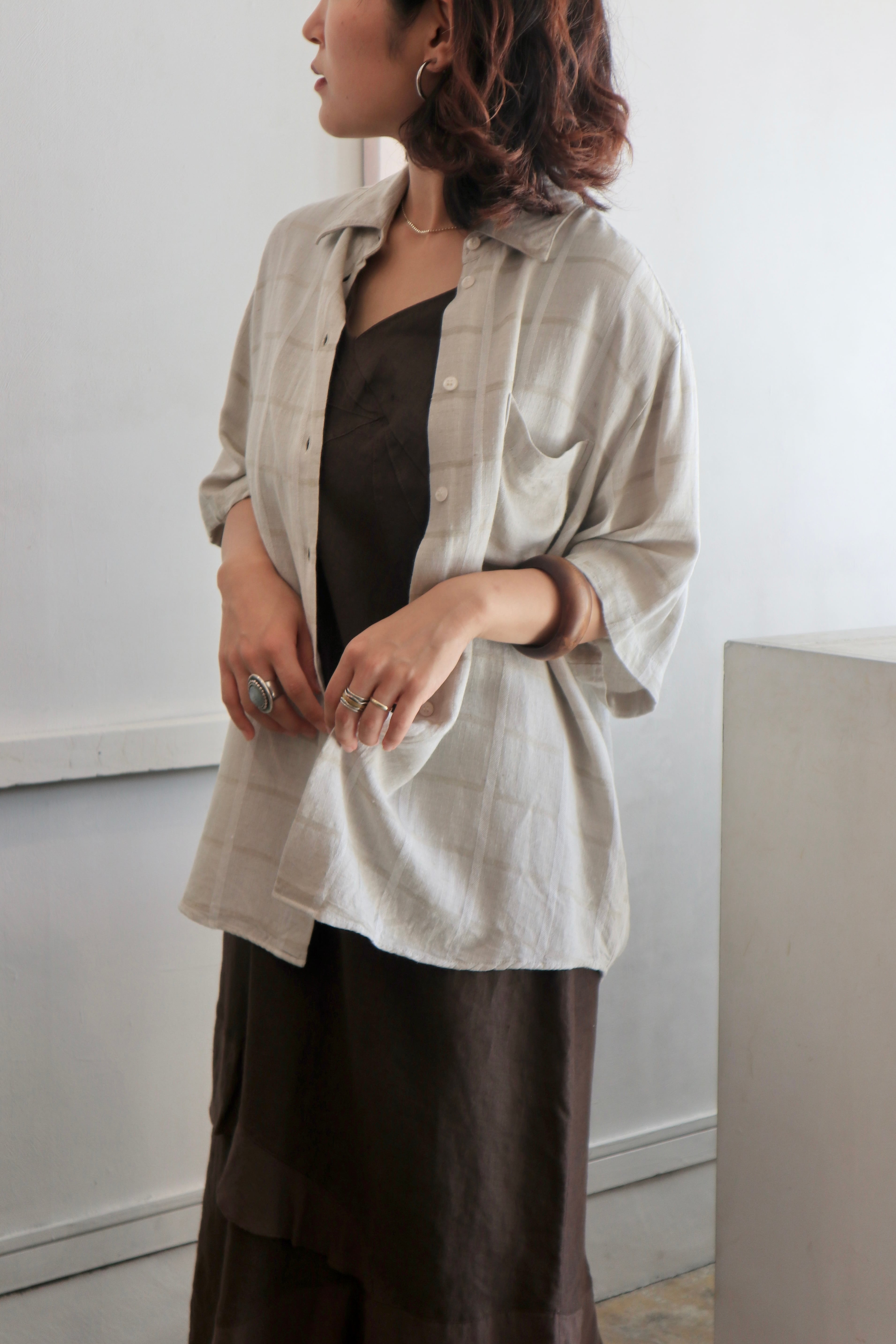 淡い色合いと、風をまとったような素材感のチェックシャツ