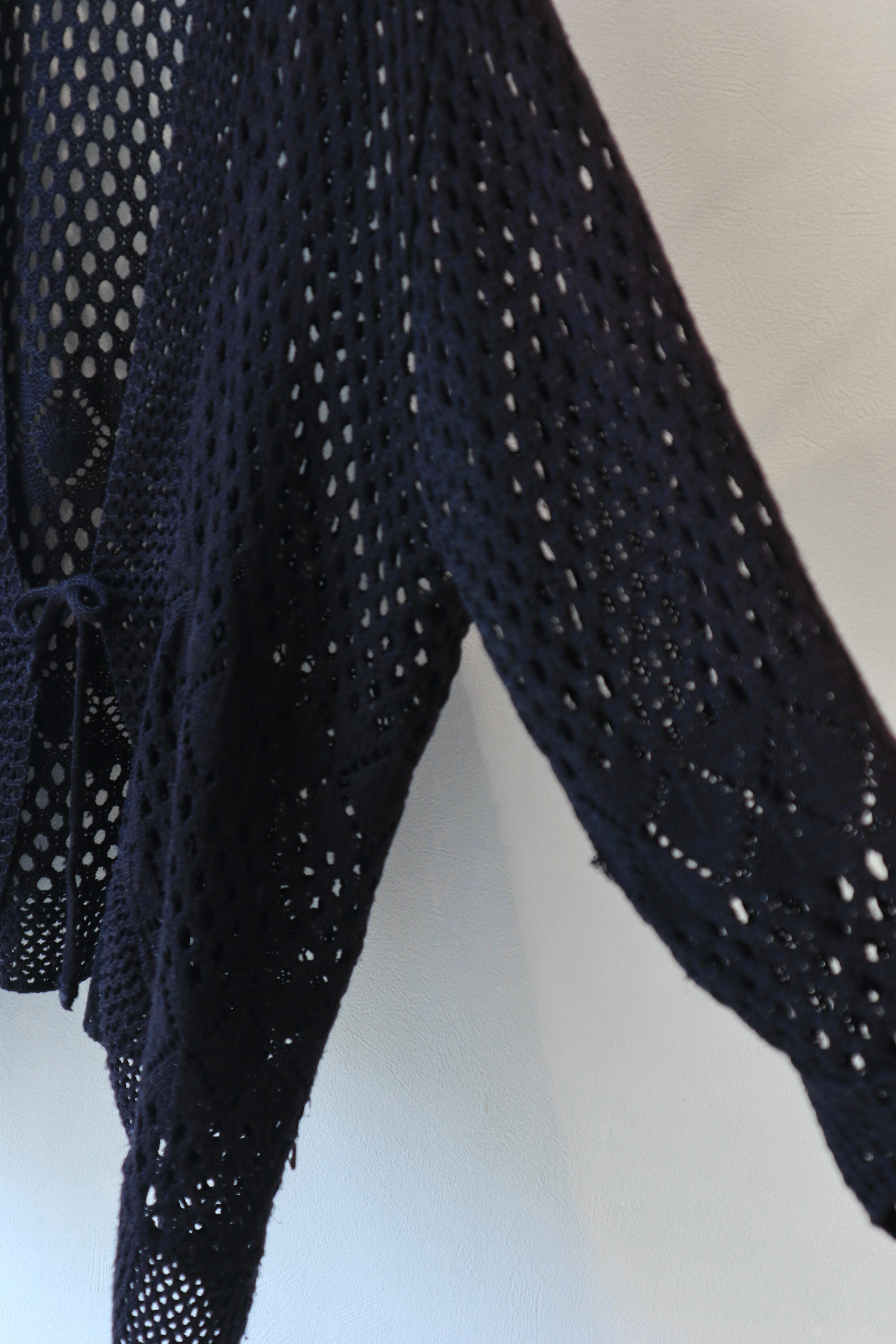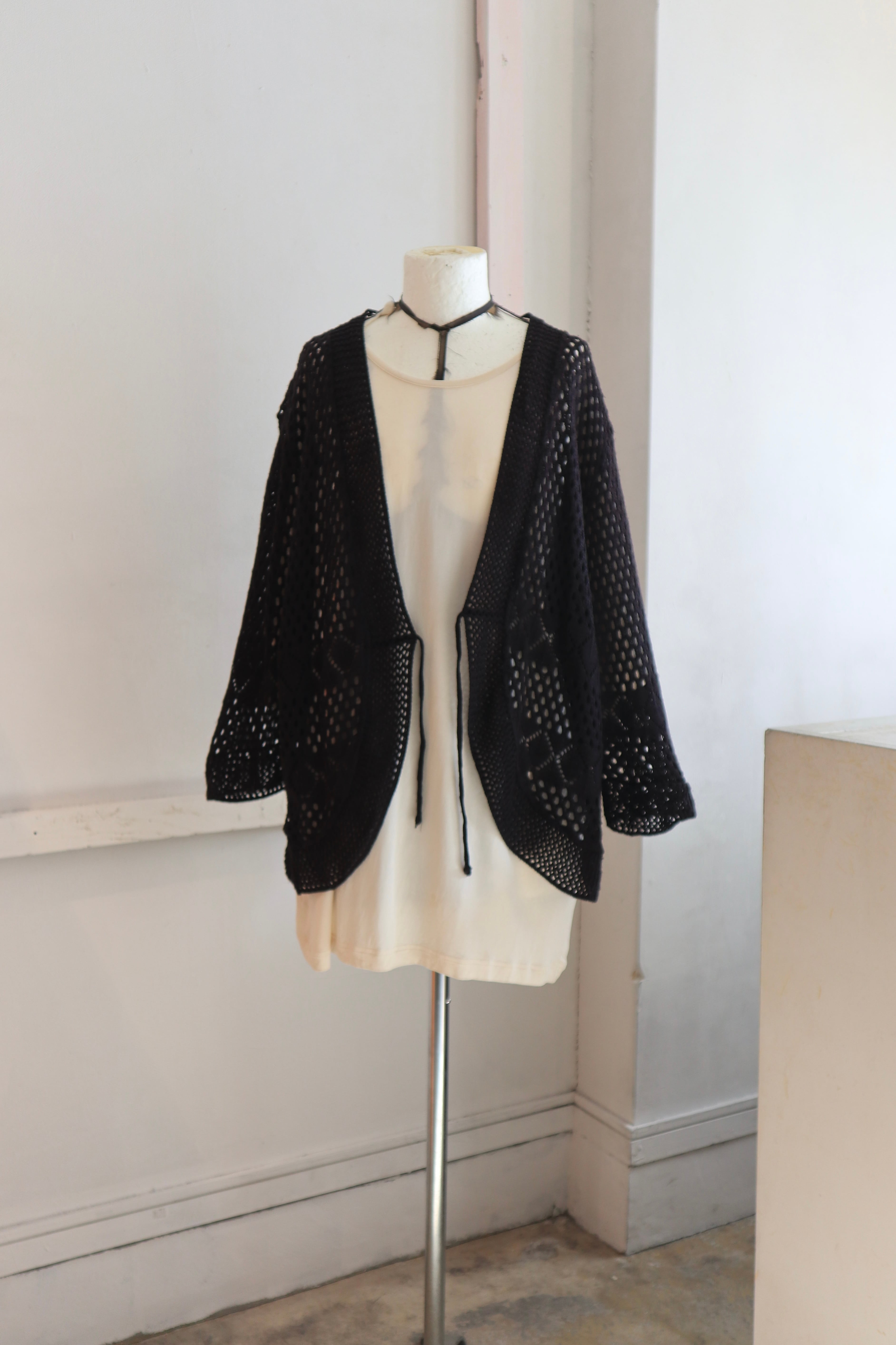 繊細な透かし編みが目を惹く上品なクロシェカーディガン