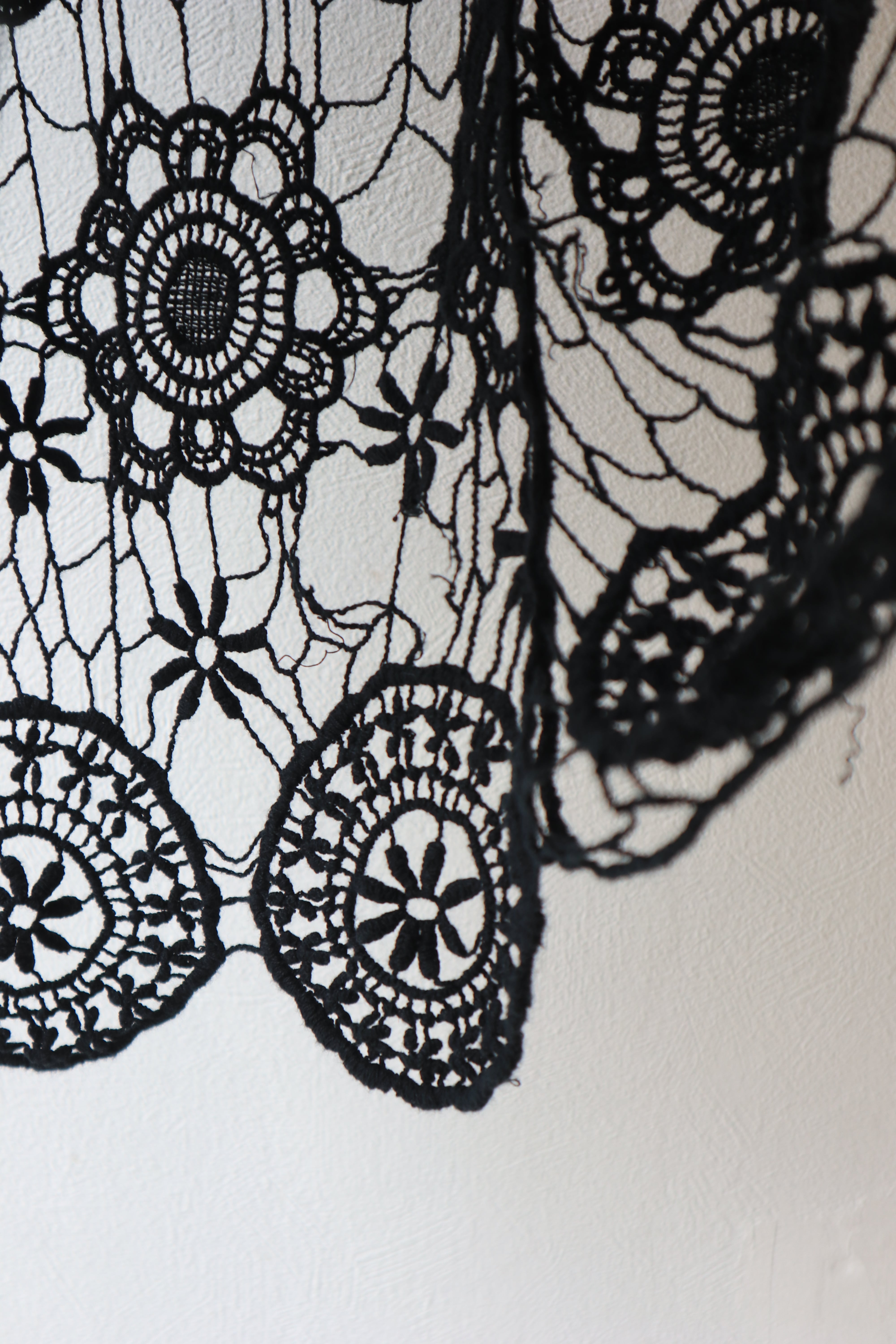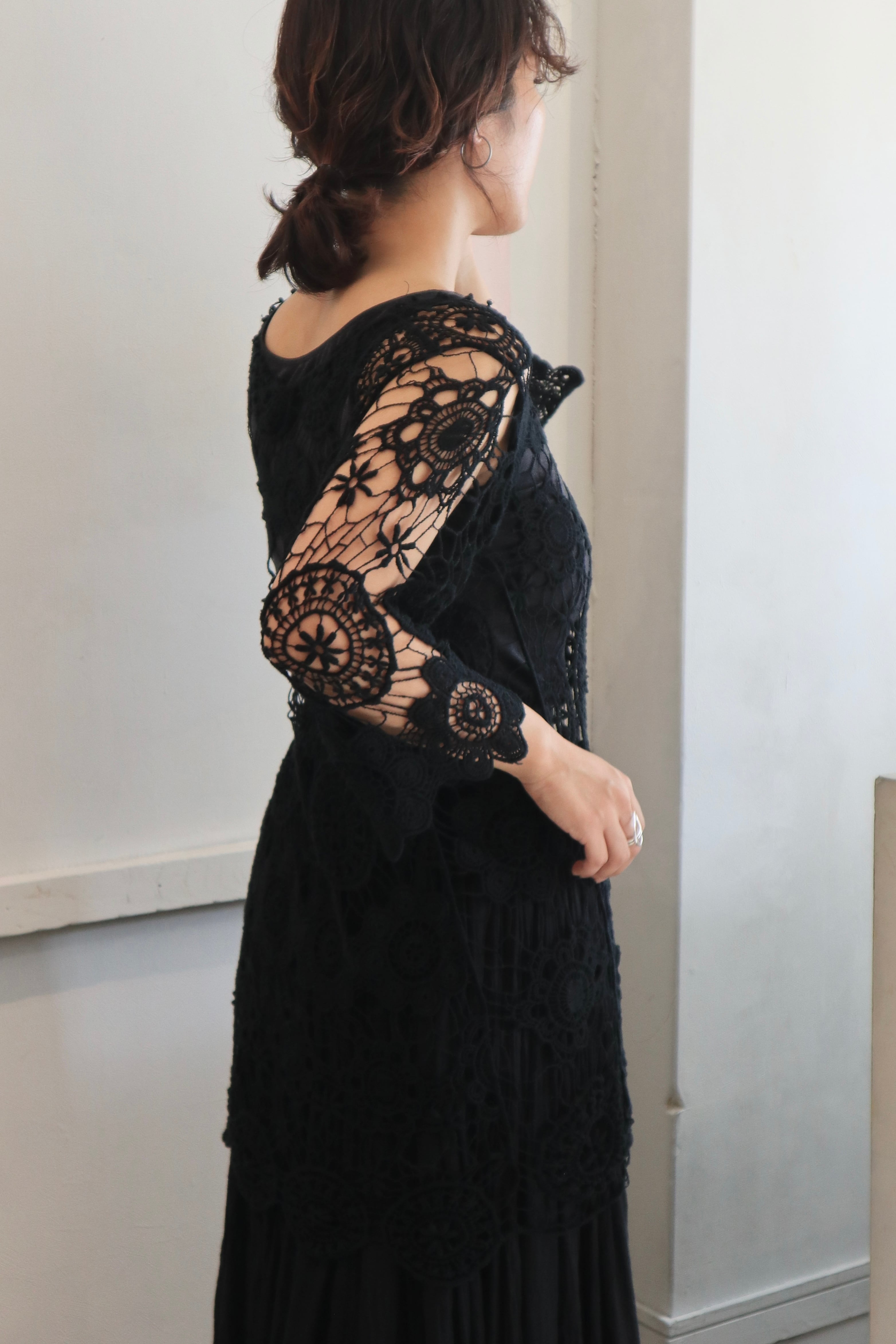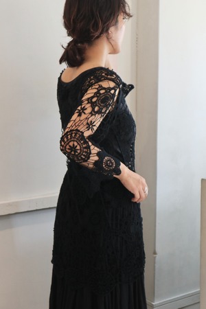 裾や袖口のスカラップデザインは、全体をより女性らしく見せるアクセントになっています