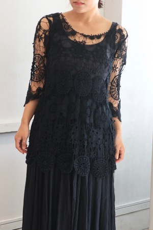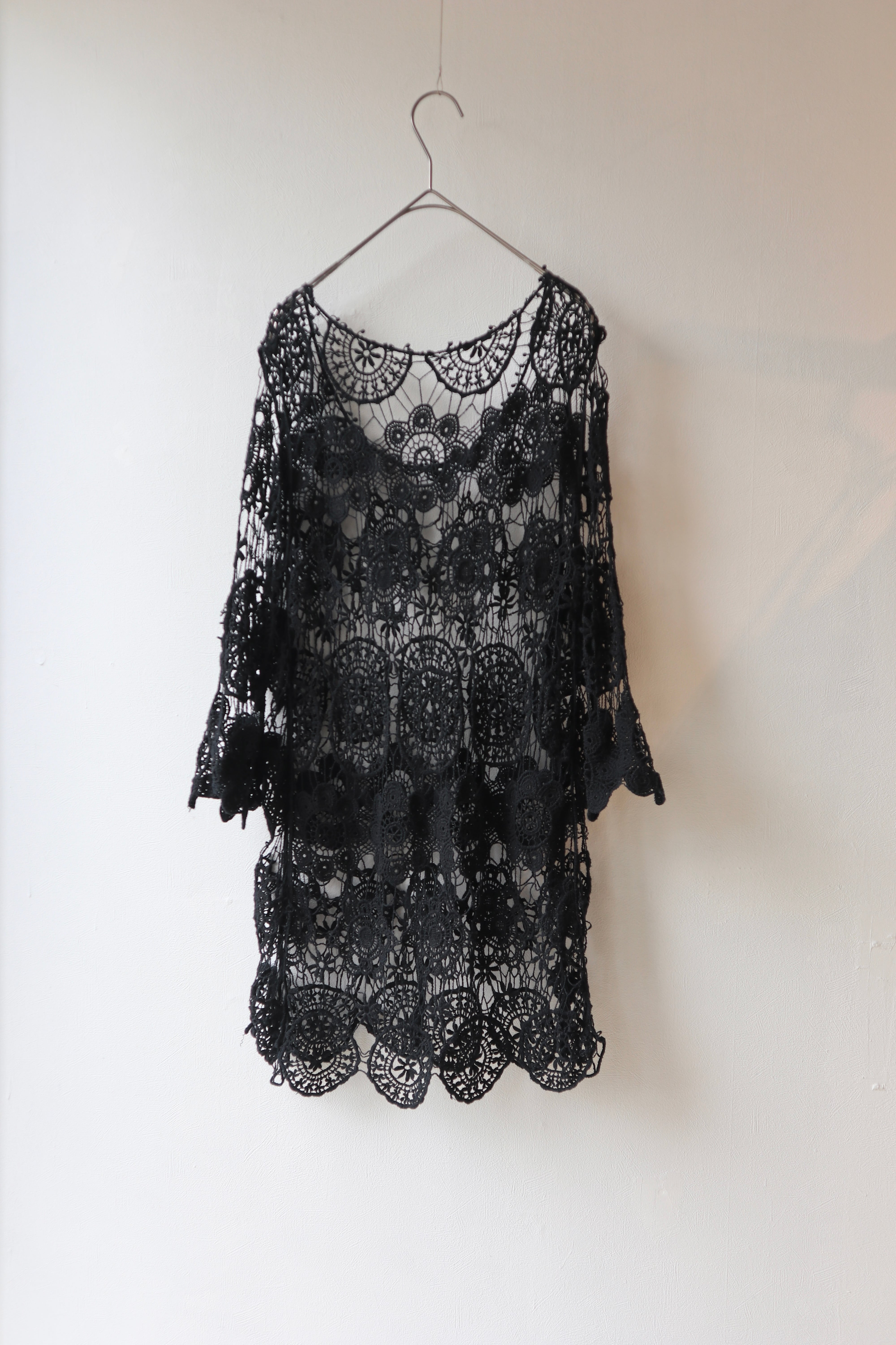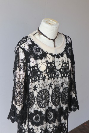 ざっくりとした編み地で、インナーとのレイヤードが楽しめるのが魅力