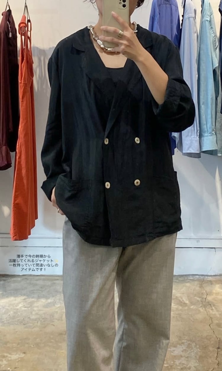 程よく透け感のある、軽やかなシルクのダブルジャケット