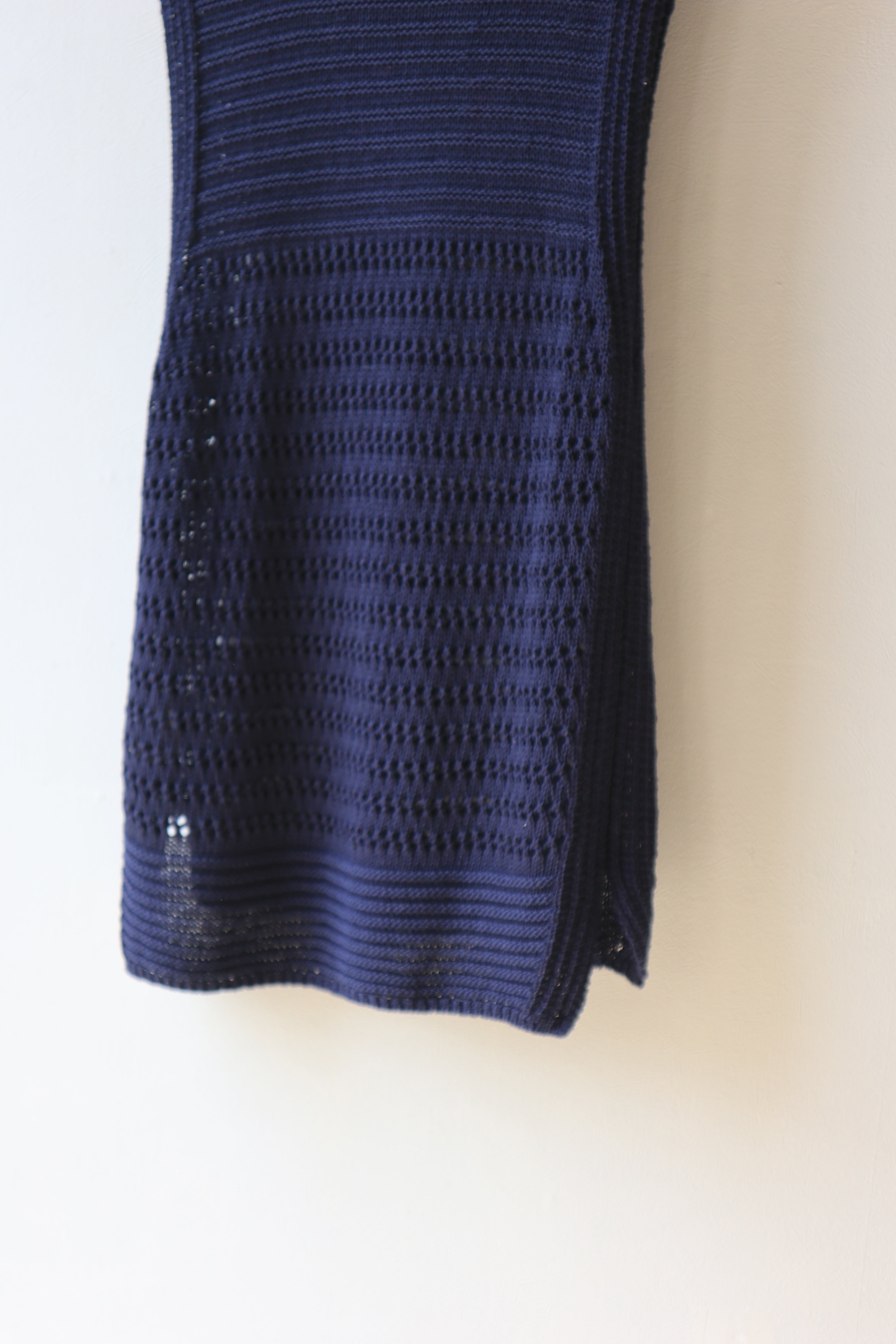 編み地の切り替えによって表情豊かに仕上げられており、シンプルなコーディネートに奥行きを与えます