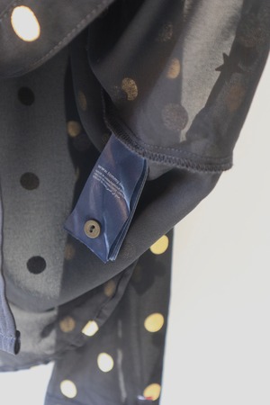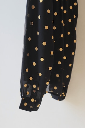 透け感のあるシアー素材が特徴で、光の当たり方によってゴールドのドットの表情が変わります