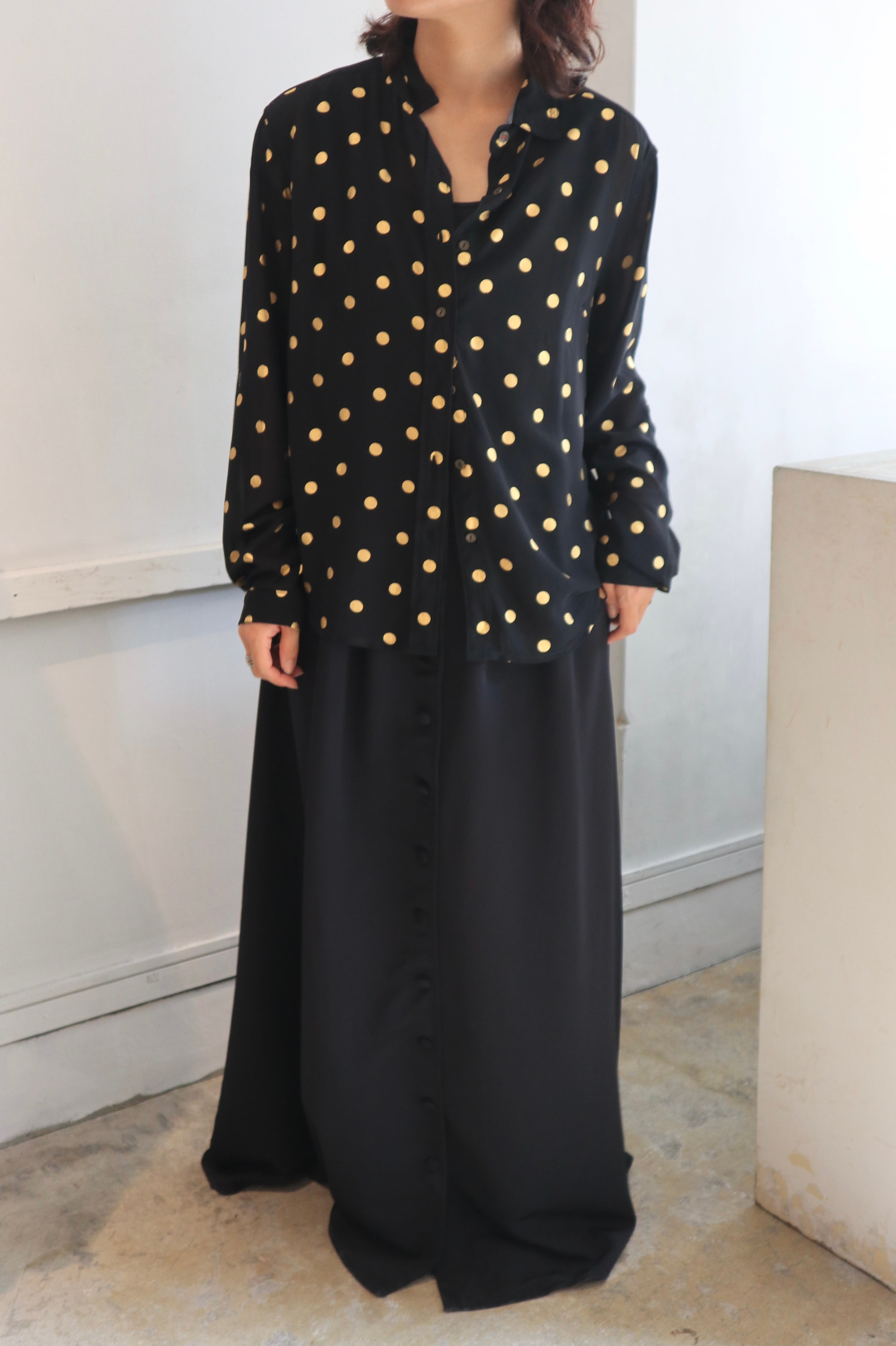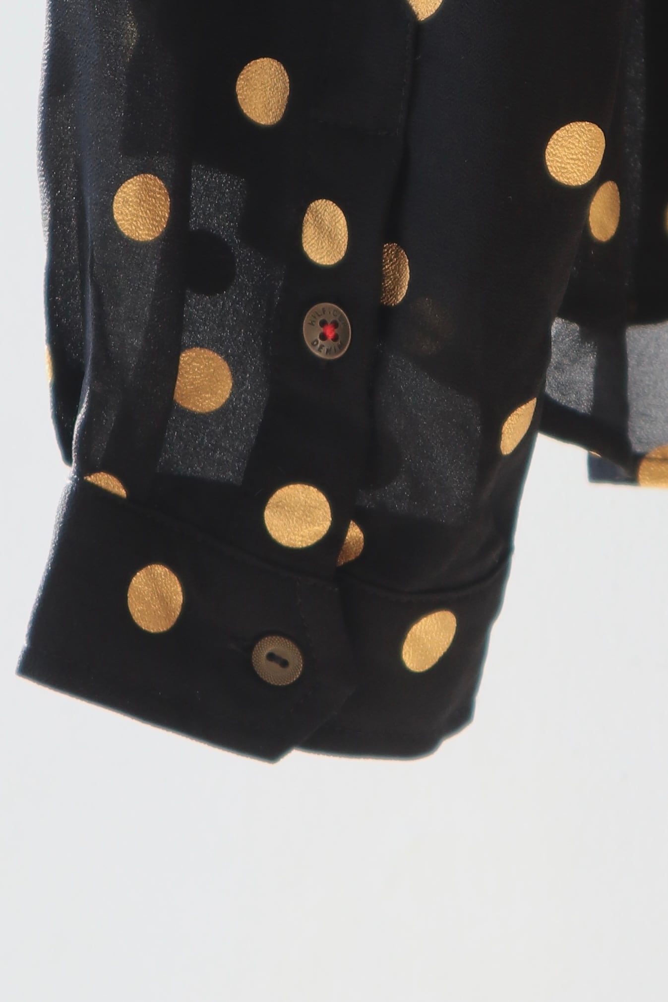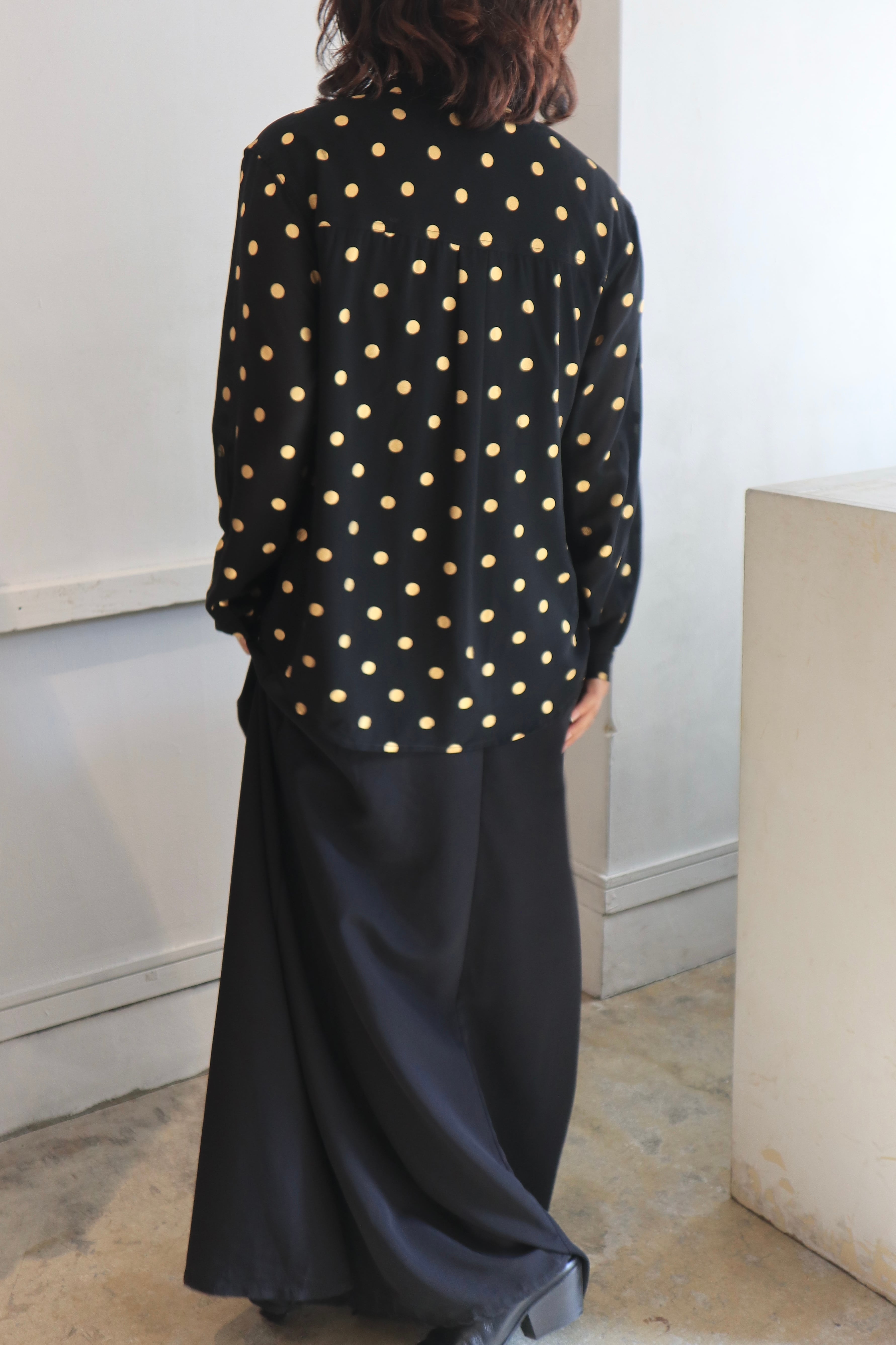 軽やかな黒地に、華やかなゴールドのドットが散りばめられたトレンドライクなシャツ