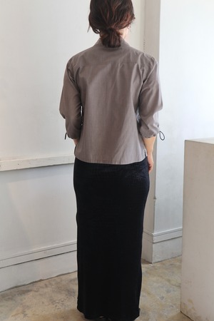 袖についたドローコードは、きゅっと絞れば、ふんわりと丸みを帯びたバルーンシルエットに