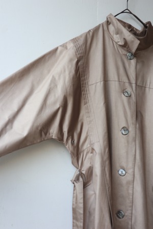 絶妙なニュアンスカラーと控えめな光沢感が印象的なトレンチコート
