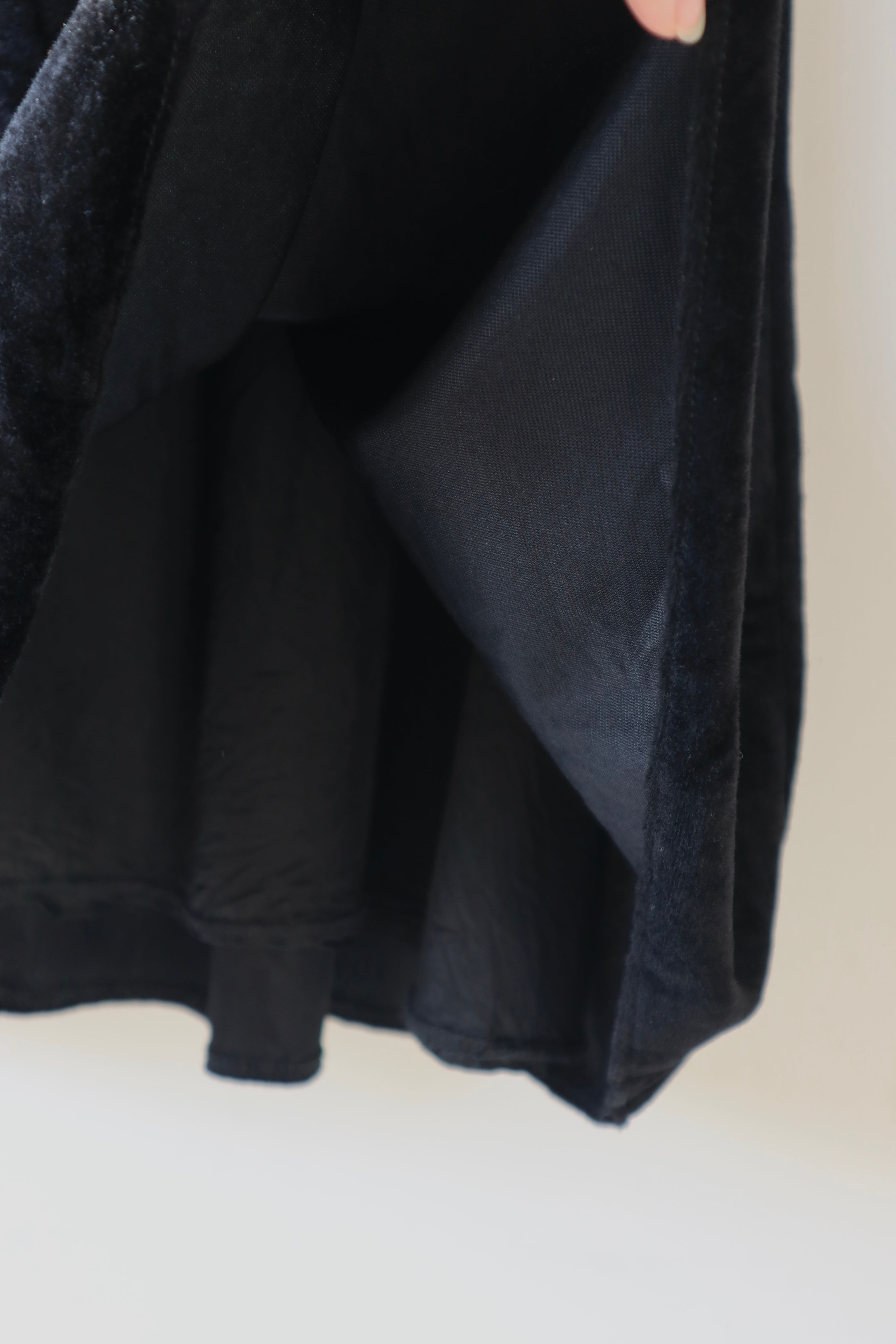 しっとりとした光沢を放つブラックベロアのフレアスカート