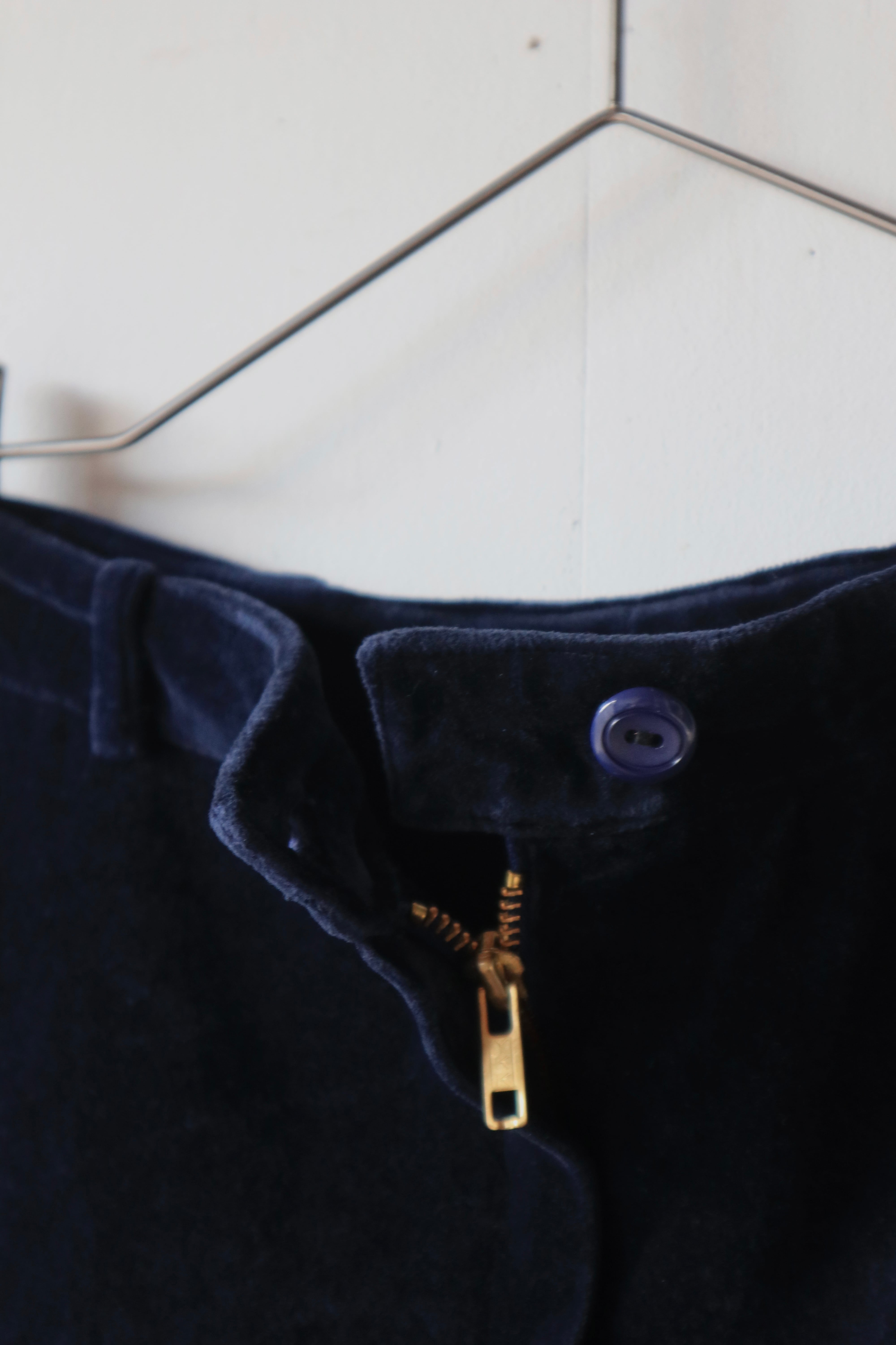 いつものコーディネートを秋冬のムードたっぷりに格上げする、ネイビーのベロアパンツ
