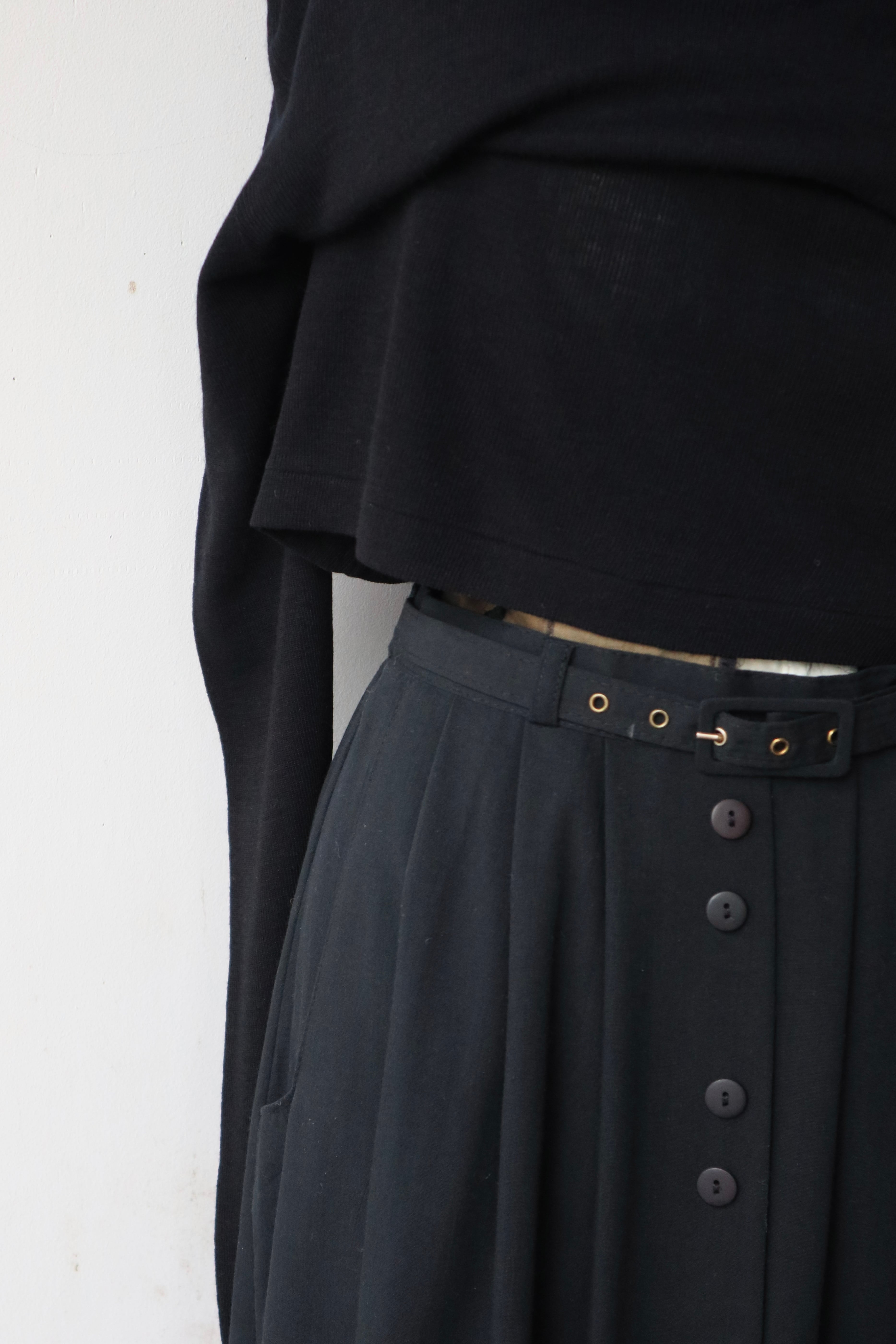 同色の細めベルトは取り外し可能で、トップスとのバランスに合わせてアレンジも楽しめます