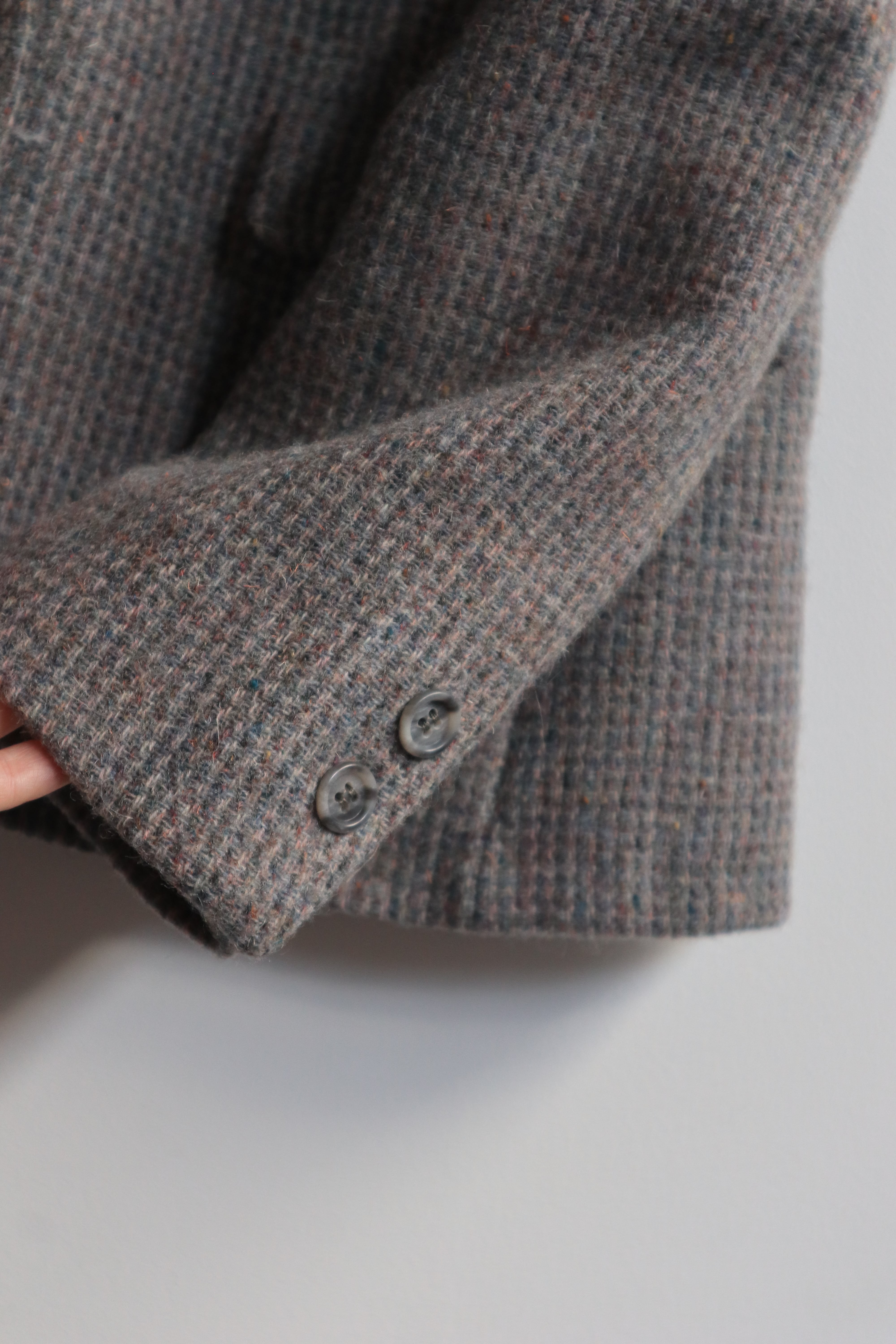 グレーやピンク、ブルーなど様々な色が織り交ぜられた表情豊かなウール生地
