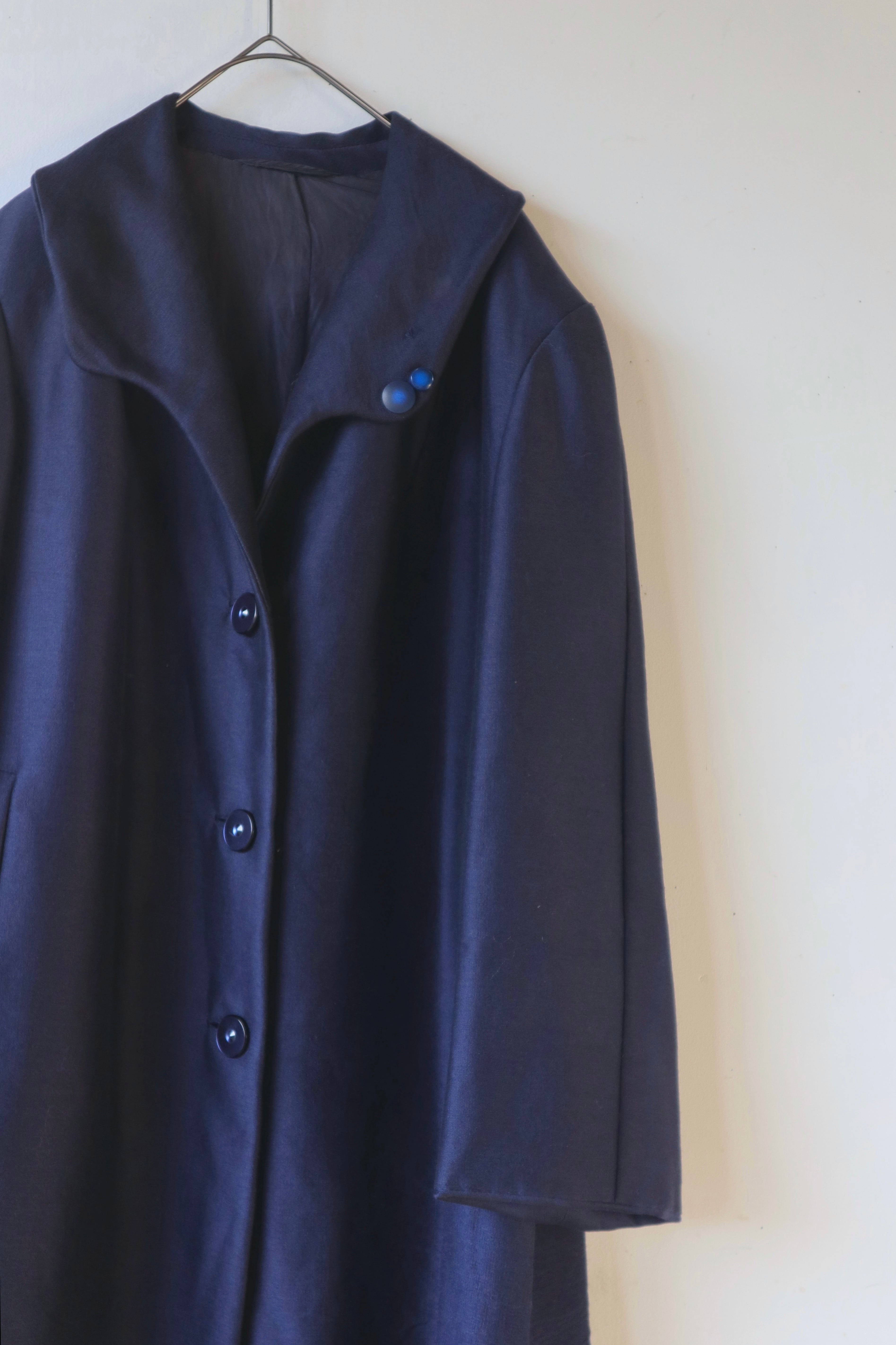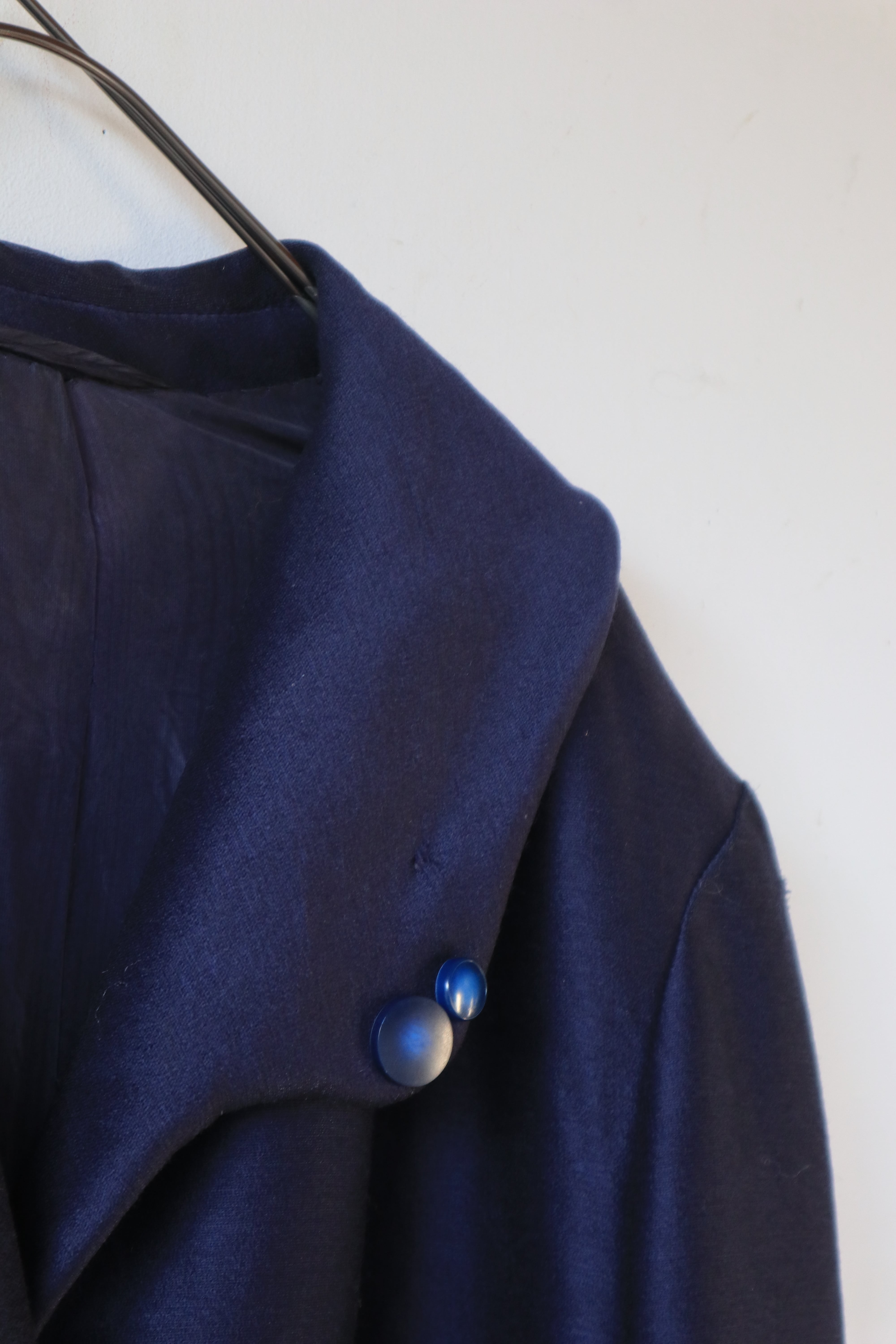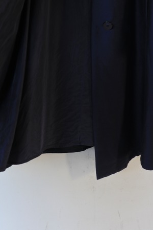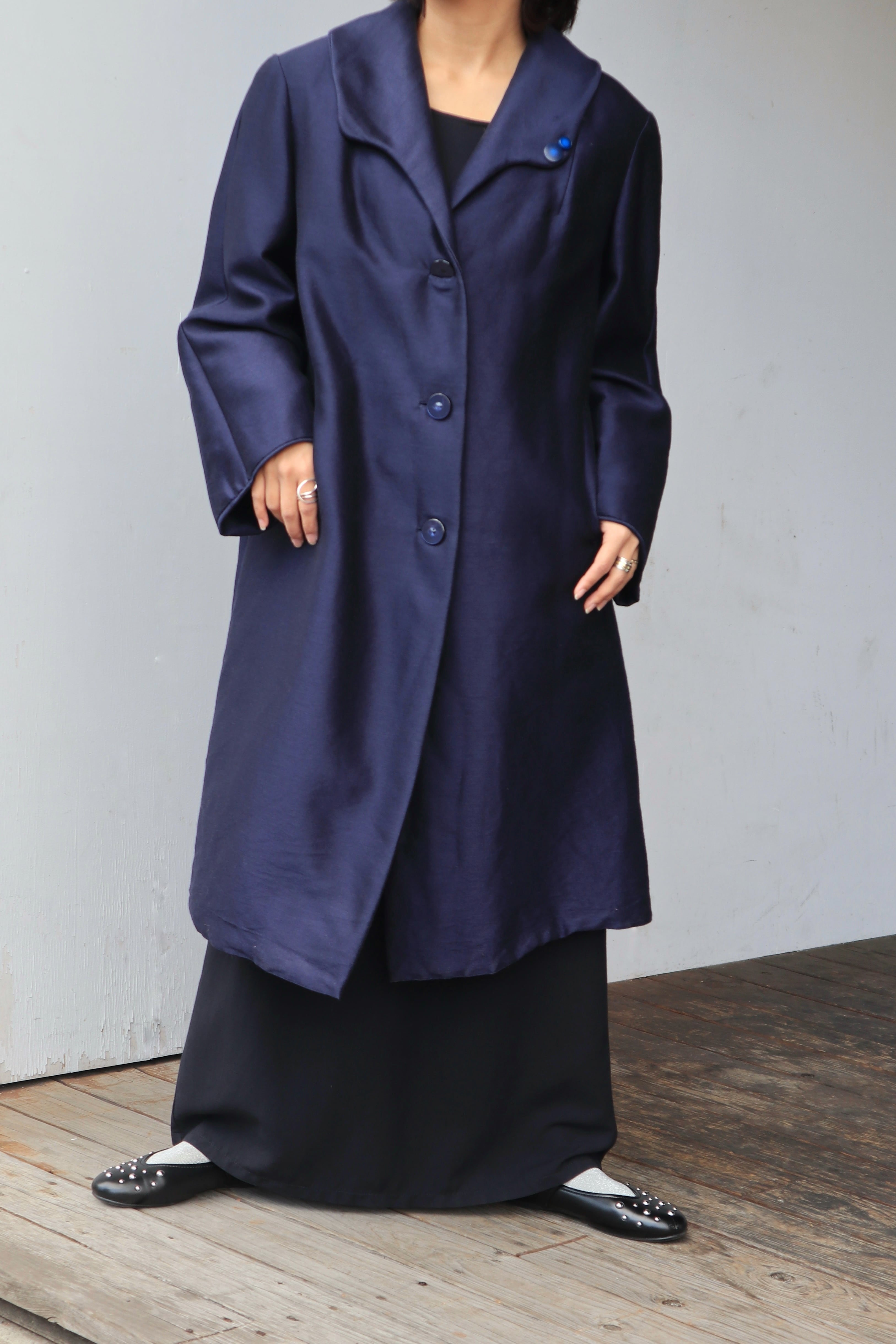 [glossy fabric navy coat]