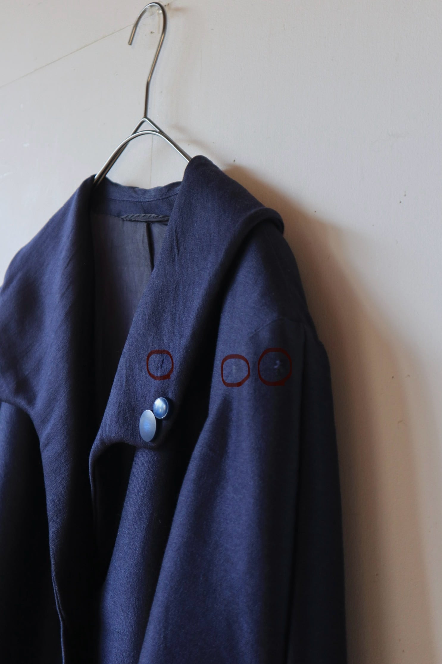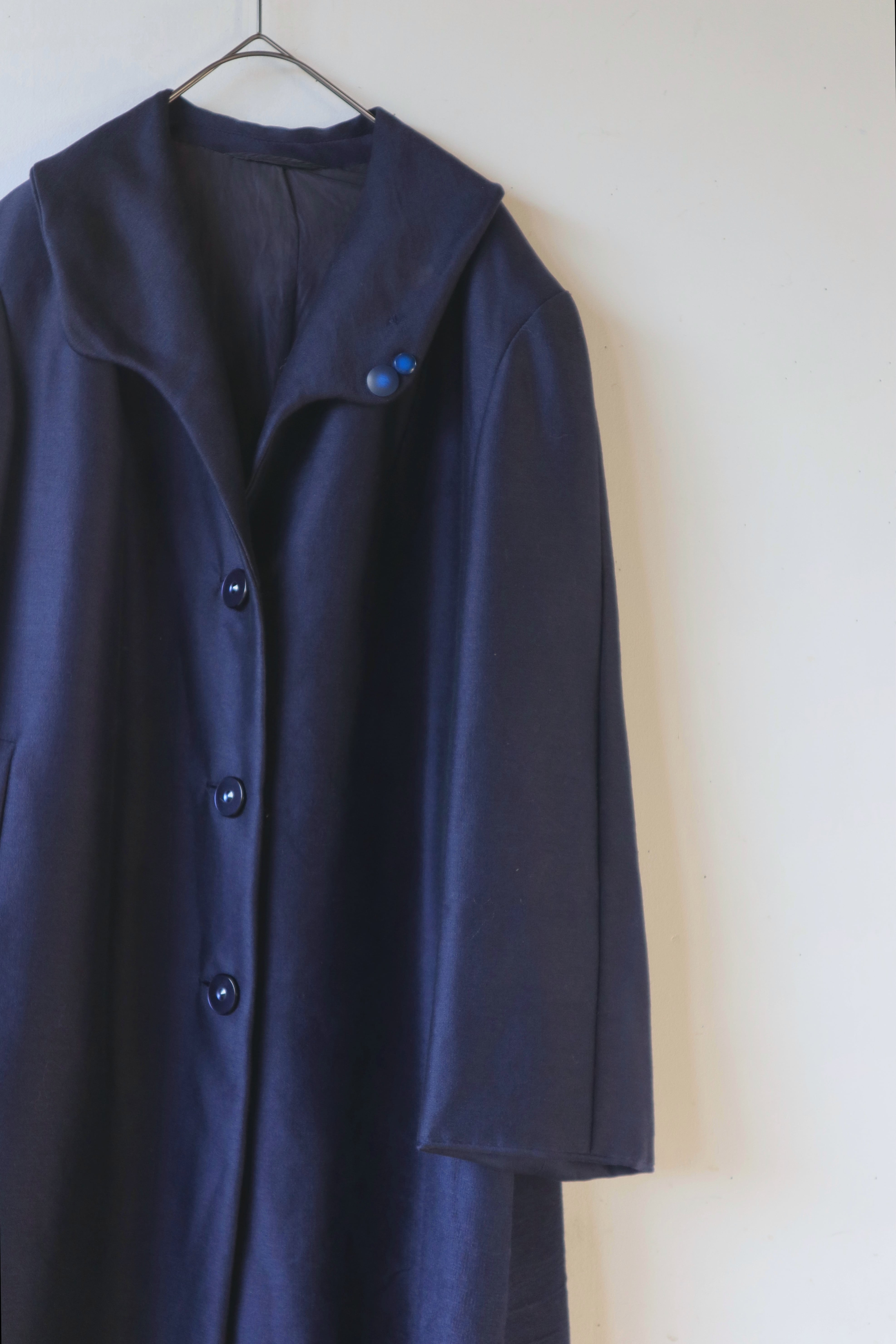同色のネイビーのボタンがさりげないアクセントになっています