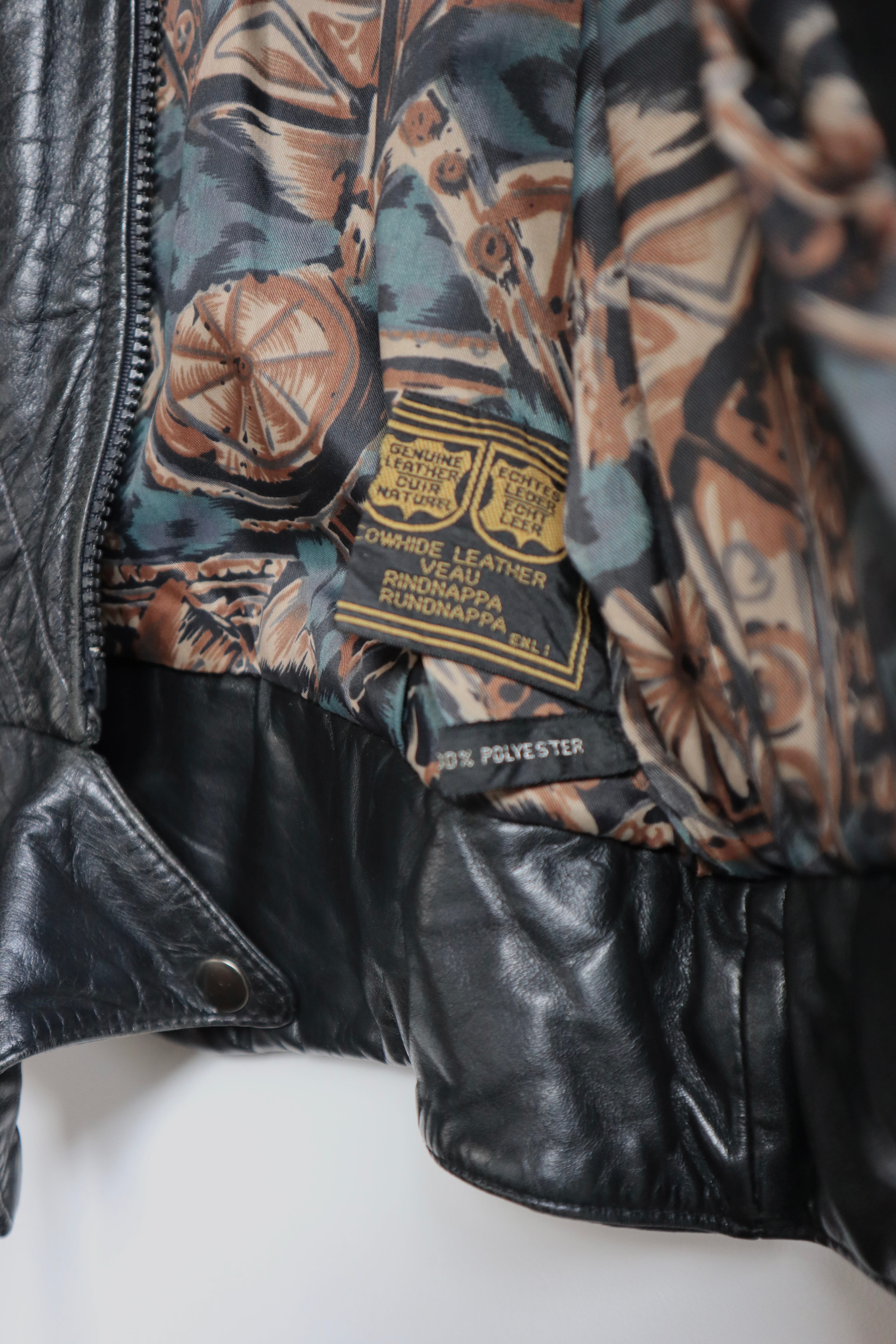 一見するとシックなブラックのジャケットですが、エッジの効いた幾何学模様の裏地がポイント