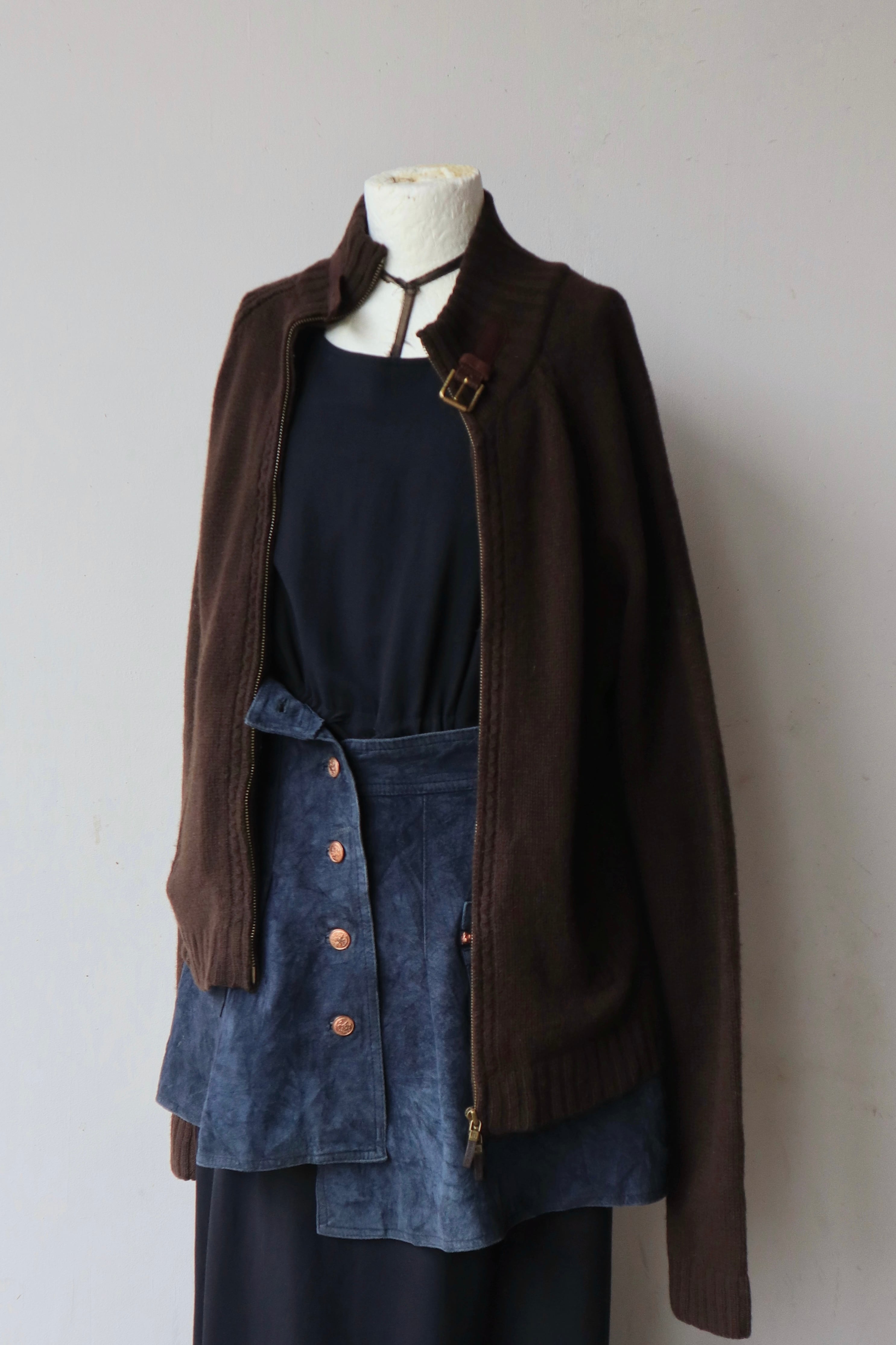 深みのあるチョコレートブラウンと、身体に優しくフィットするシルエットが、着る人に落ち着きと洗練された印象を与えます
