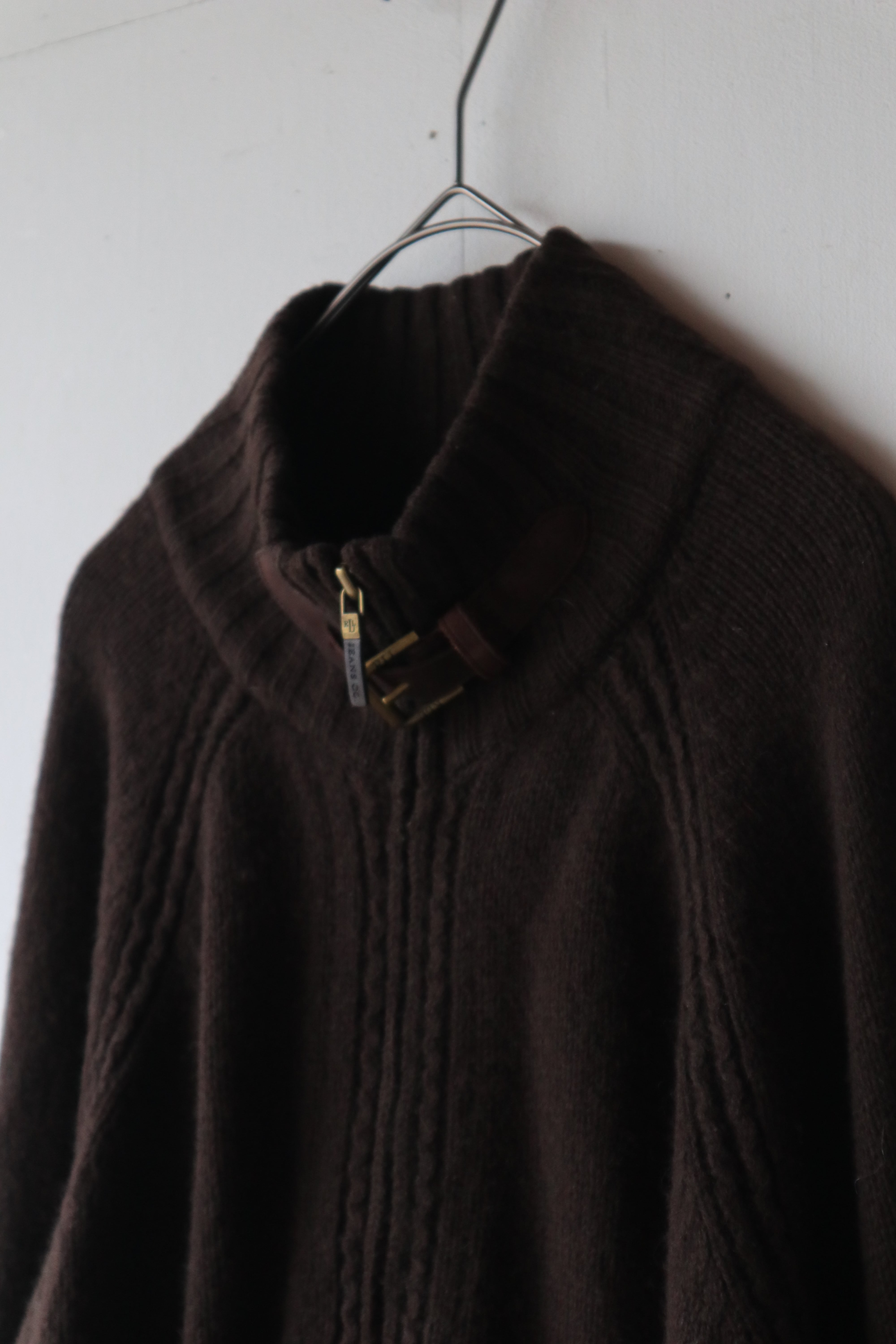 首元をしっかりと包むスタンドカラーとレザーのベルトが特徴的