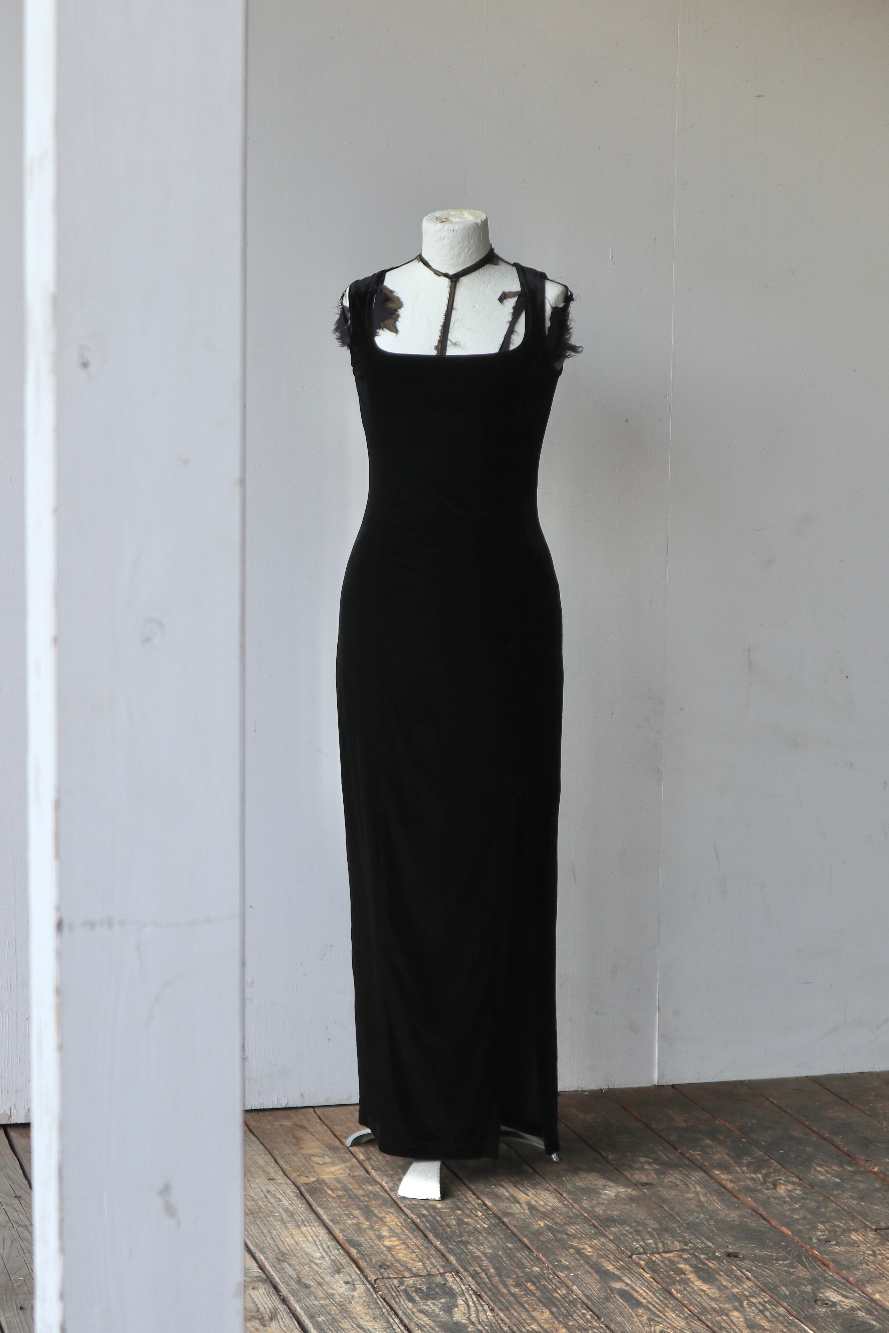 ストレッチ性のある生地が体に美しく沿い、女性らしいラインを際立たせます