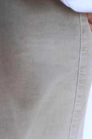 畝の立ったコーデュロイ生地があたたかみのある表情をつくり、ベージュカラーならではのやさしい雰囲気がスタイリングに自然と馴染みます