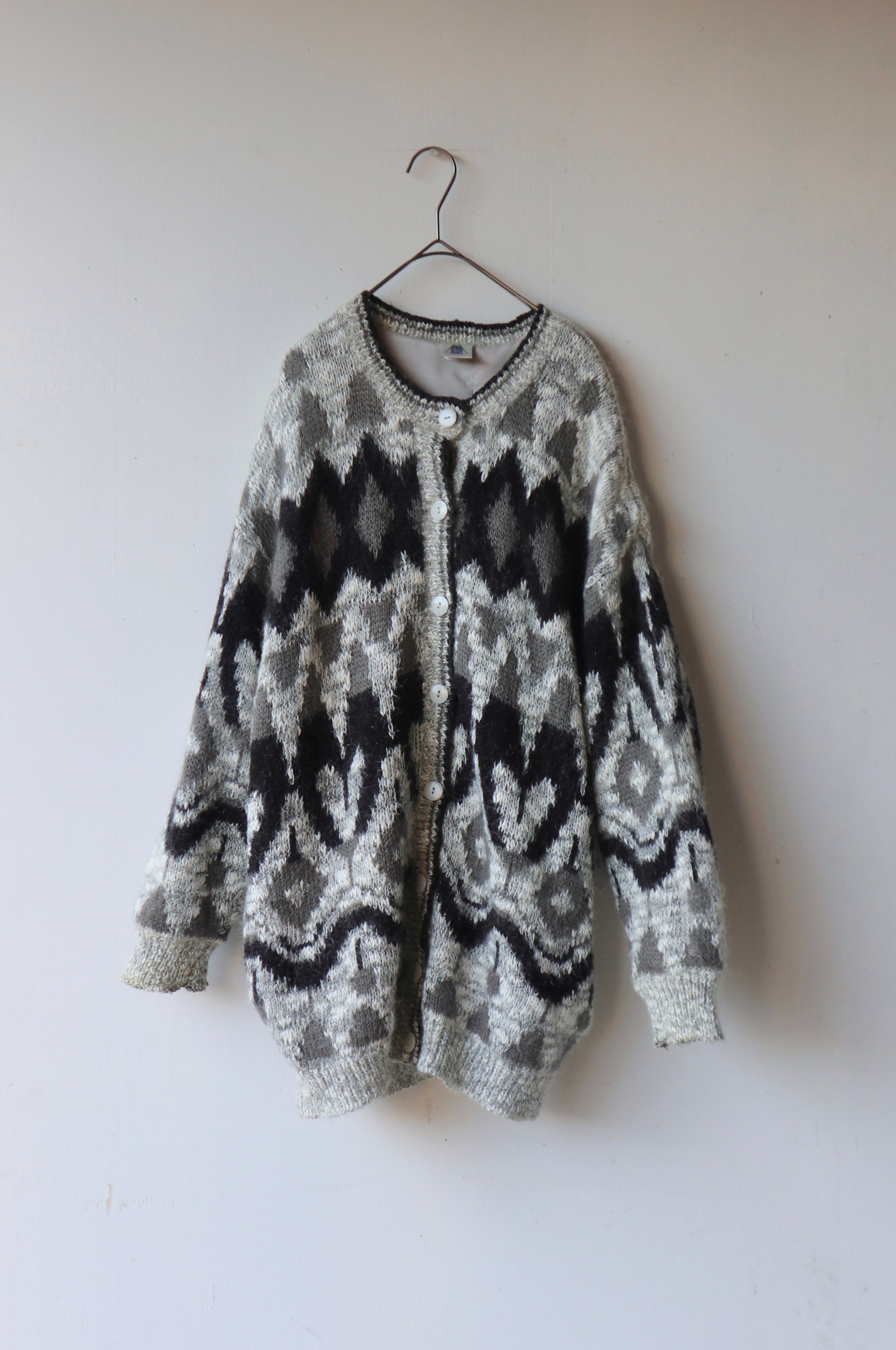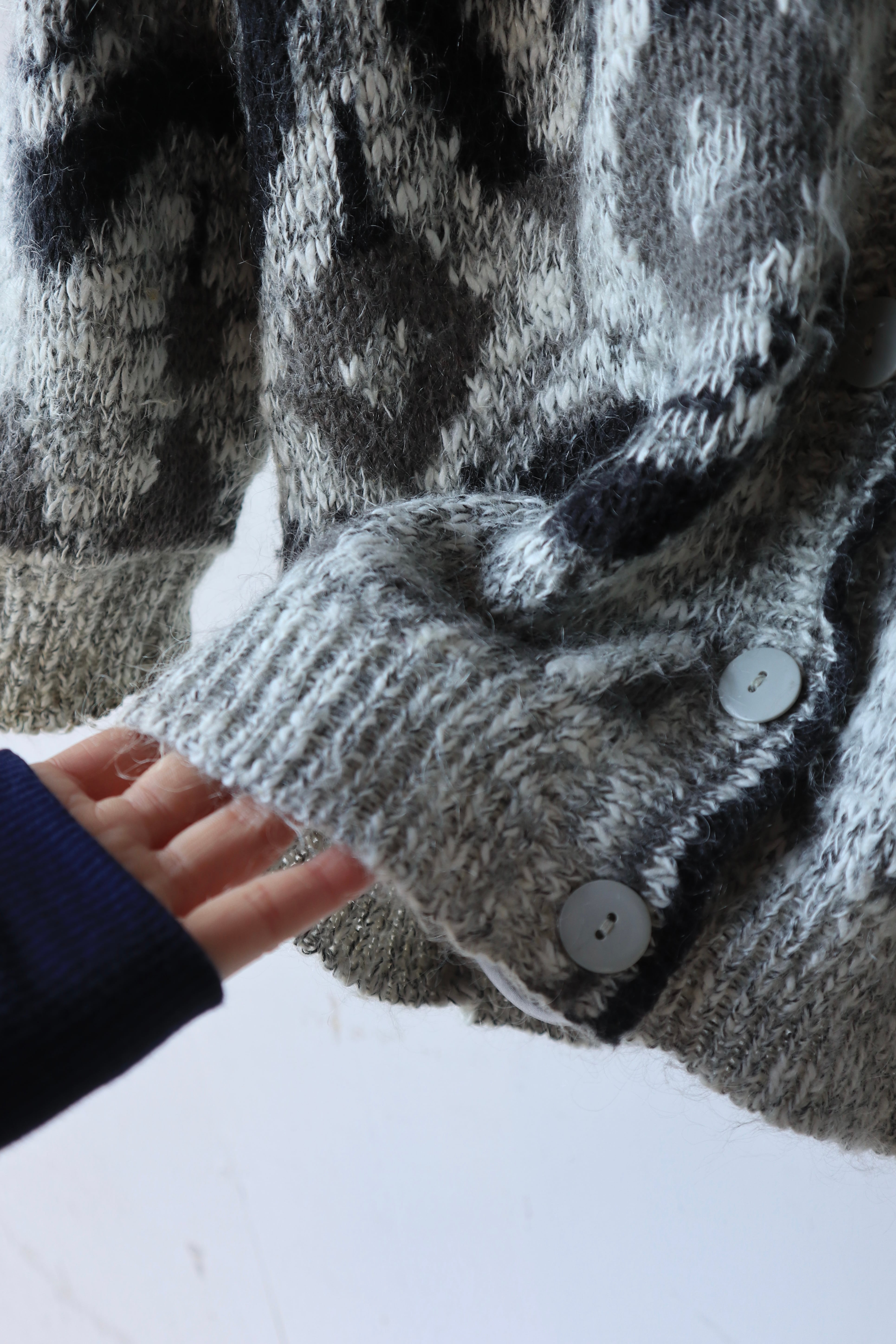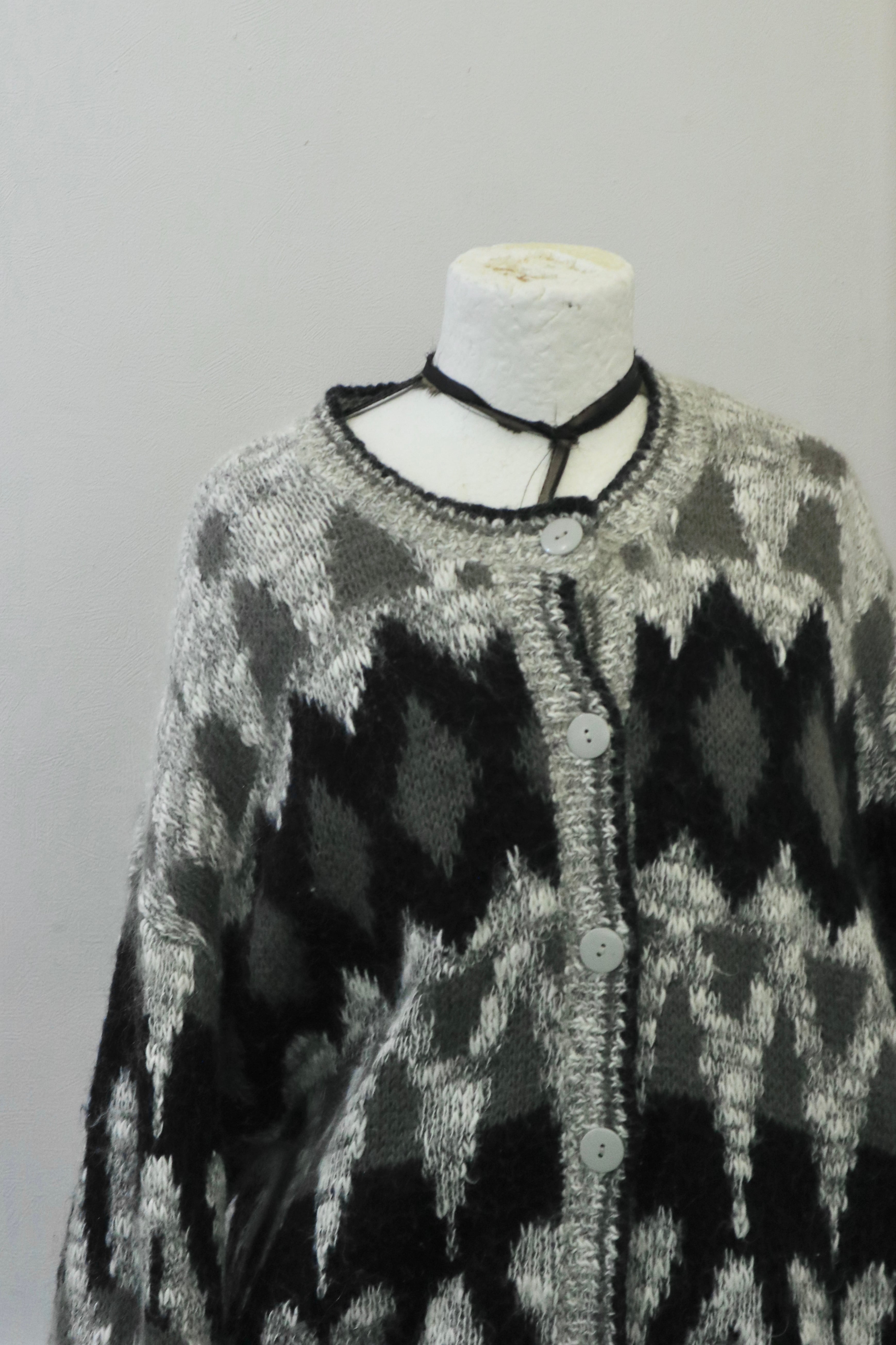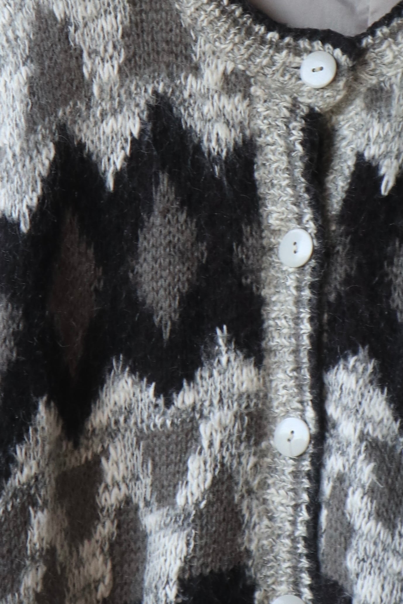 モノトーンの幾何学柄が印象的なニットカーディガン