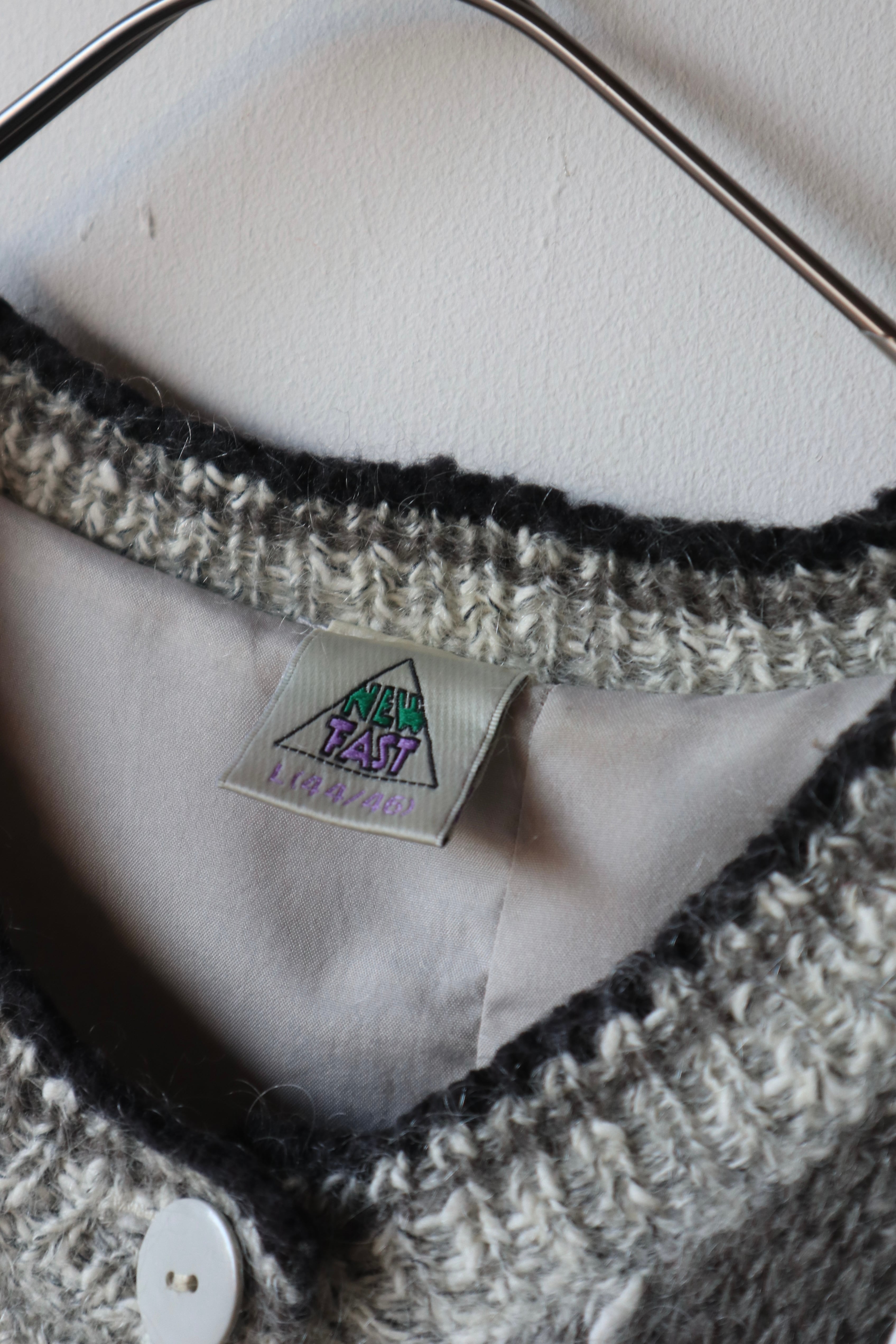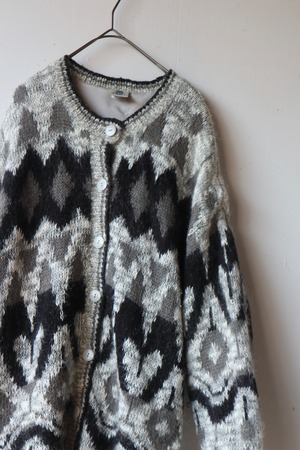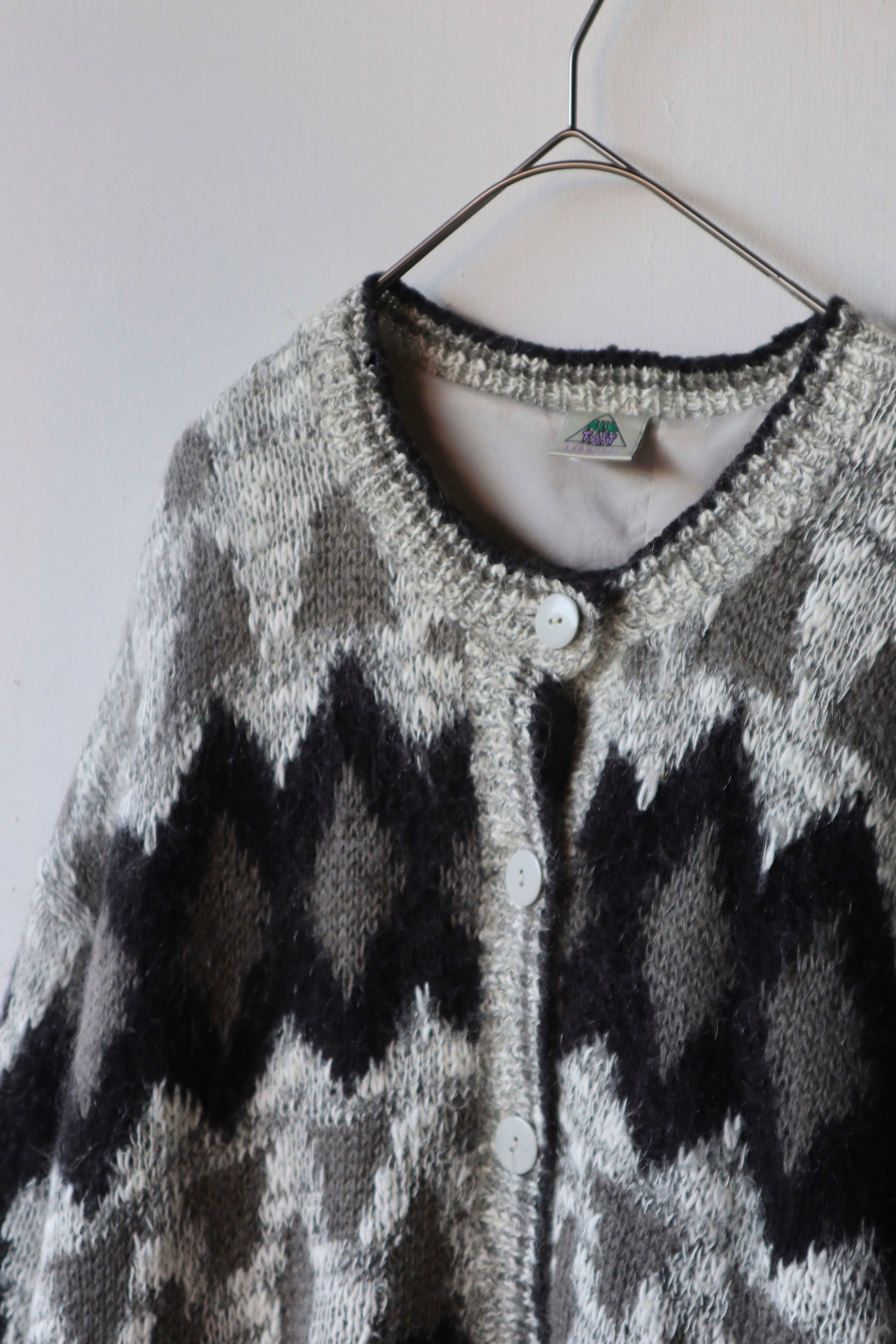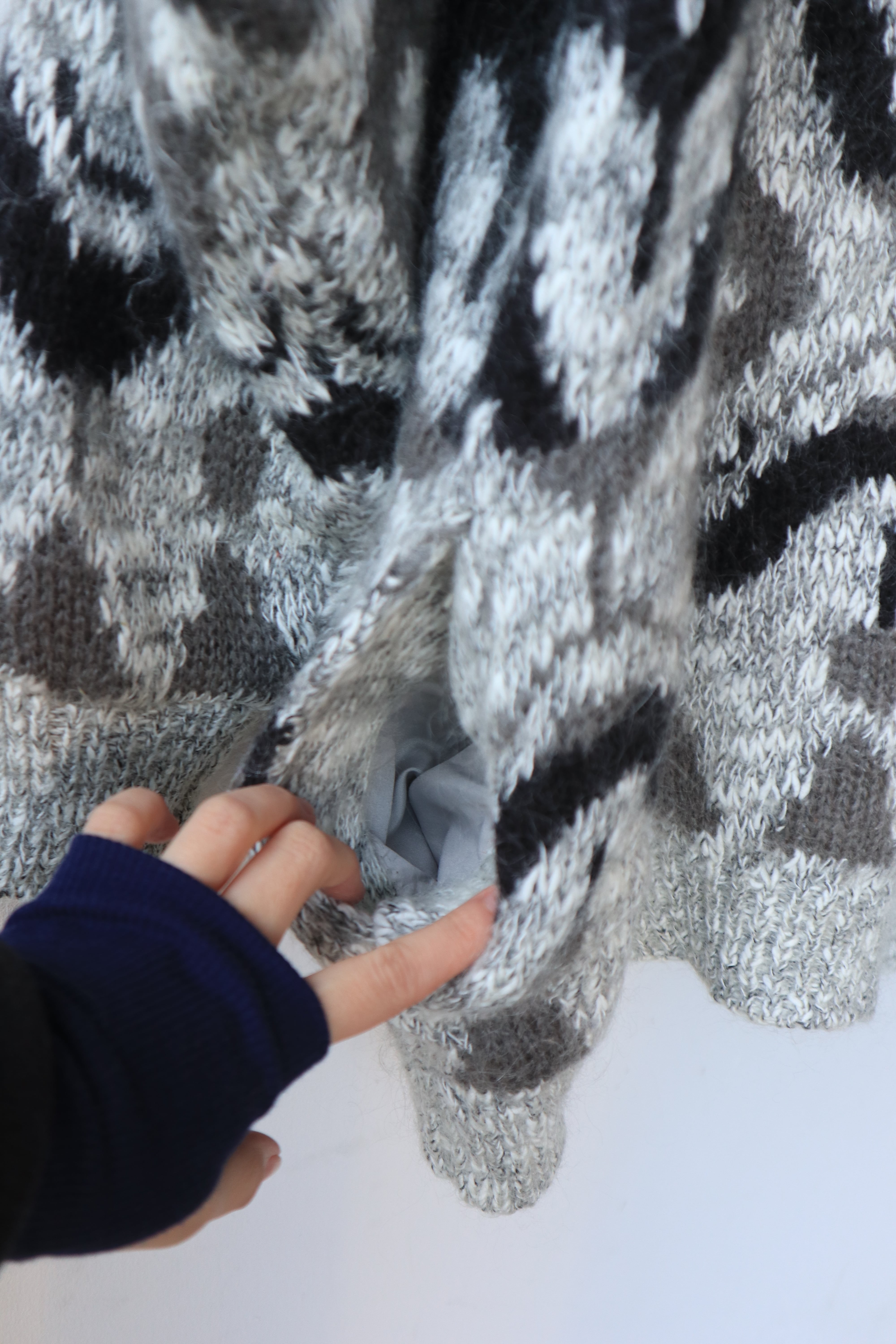 モノトーンの幾何学柄が印象的なニットカーディガン