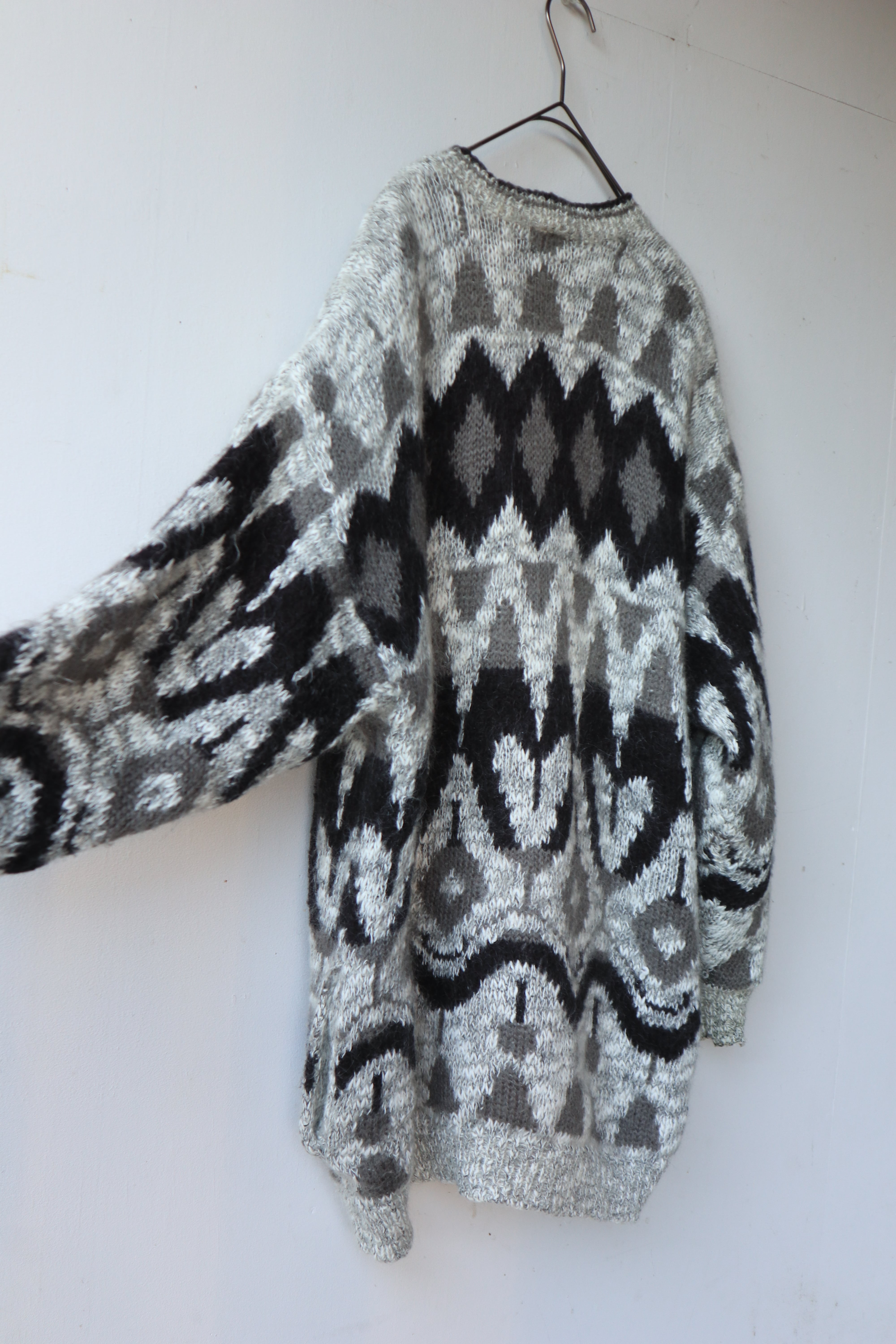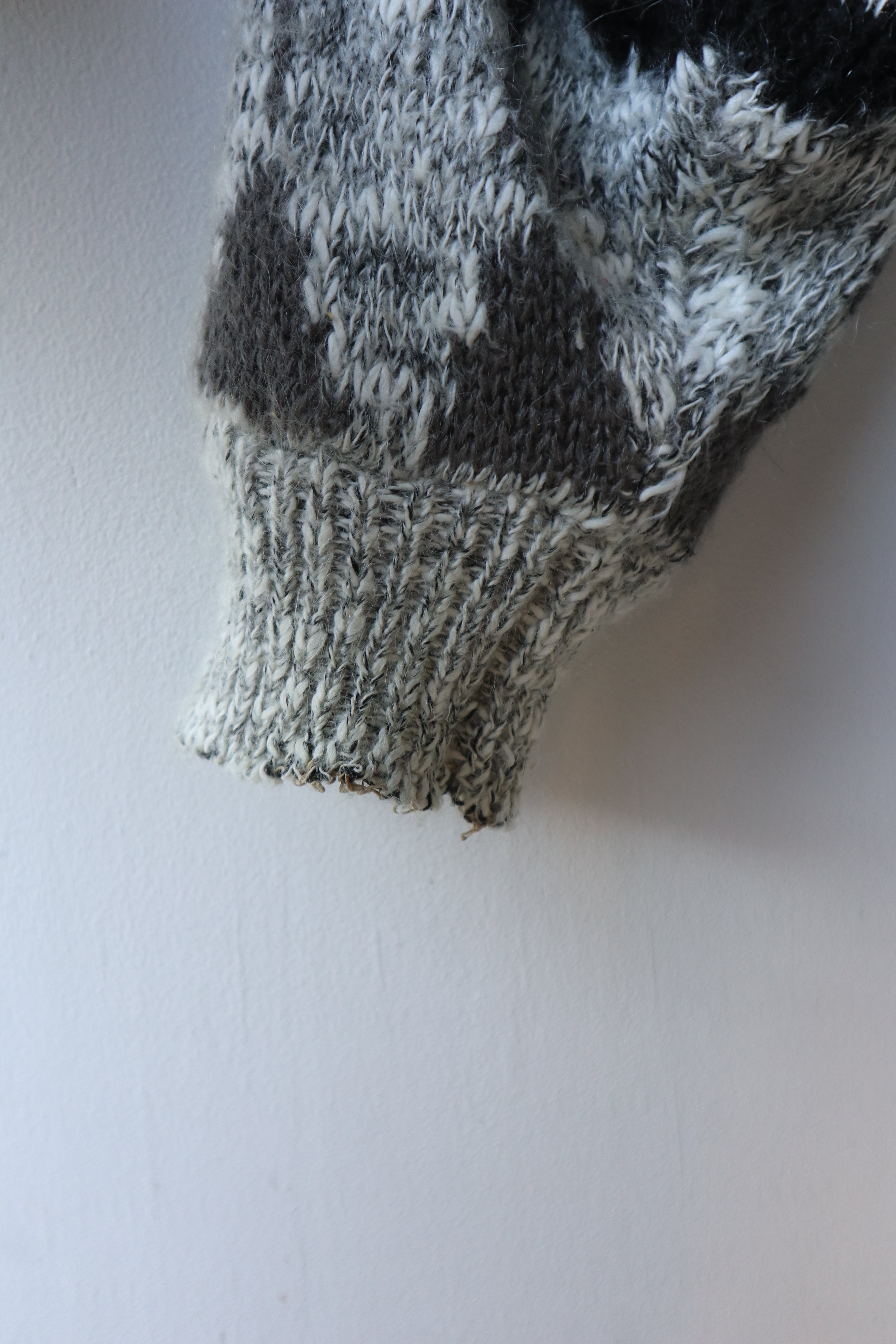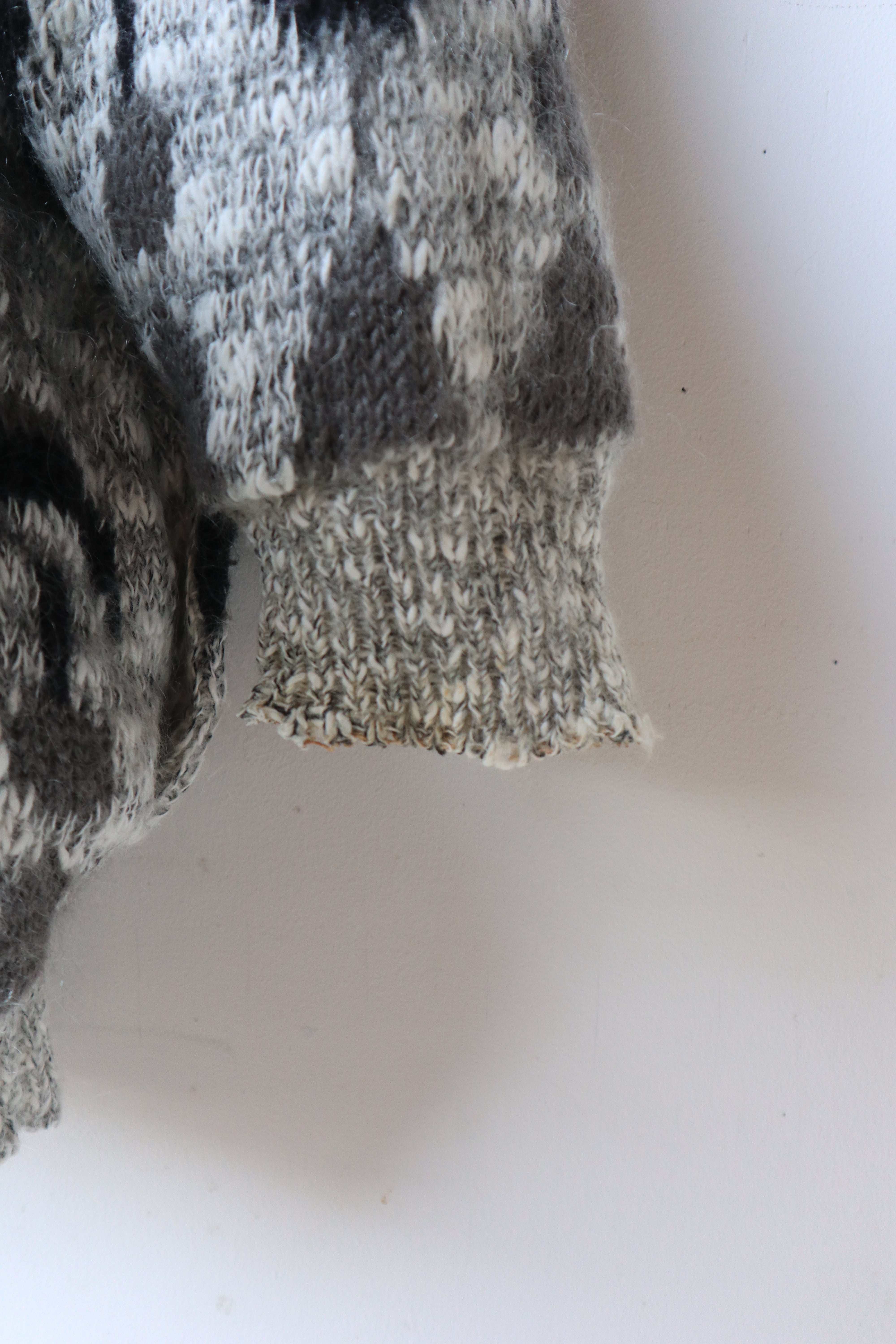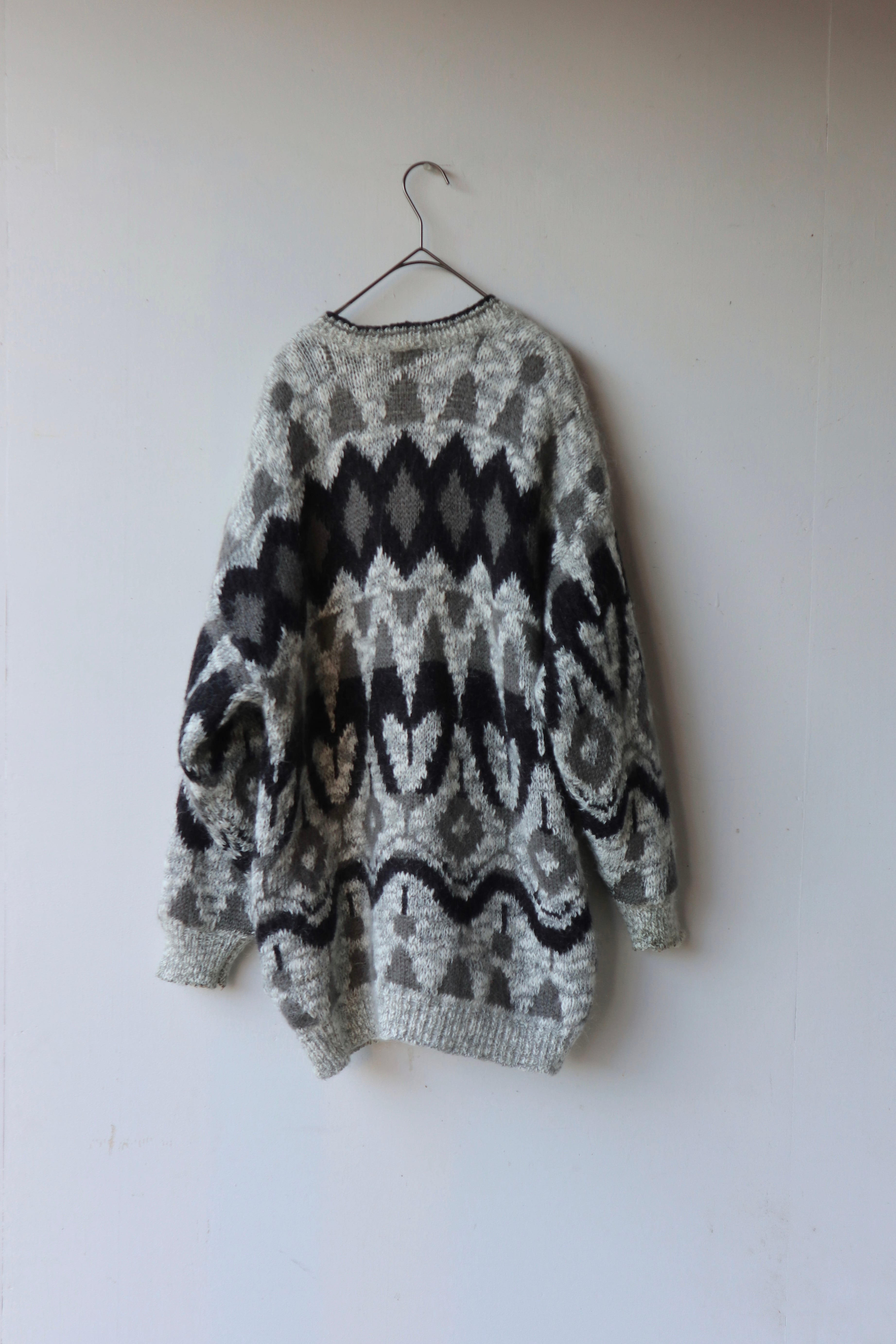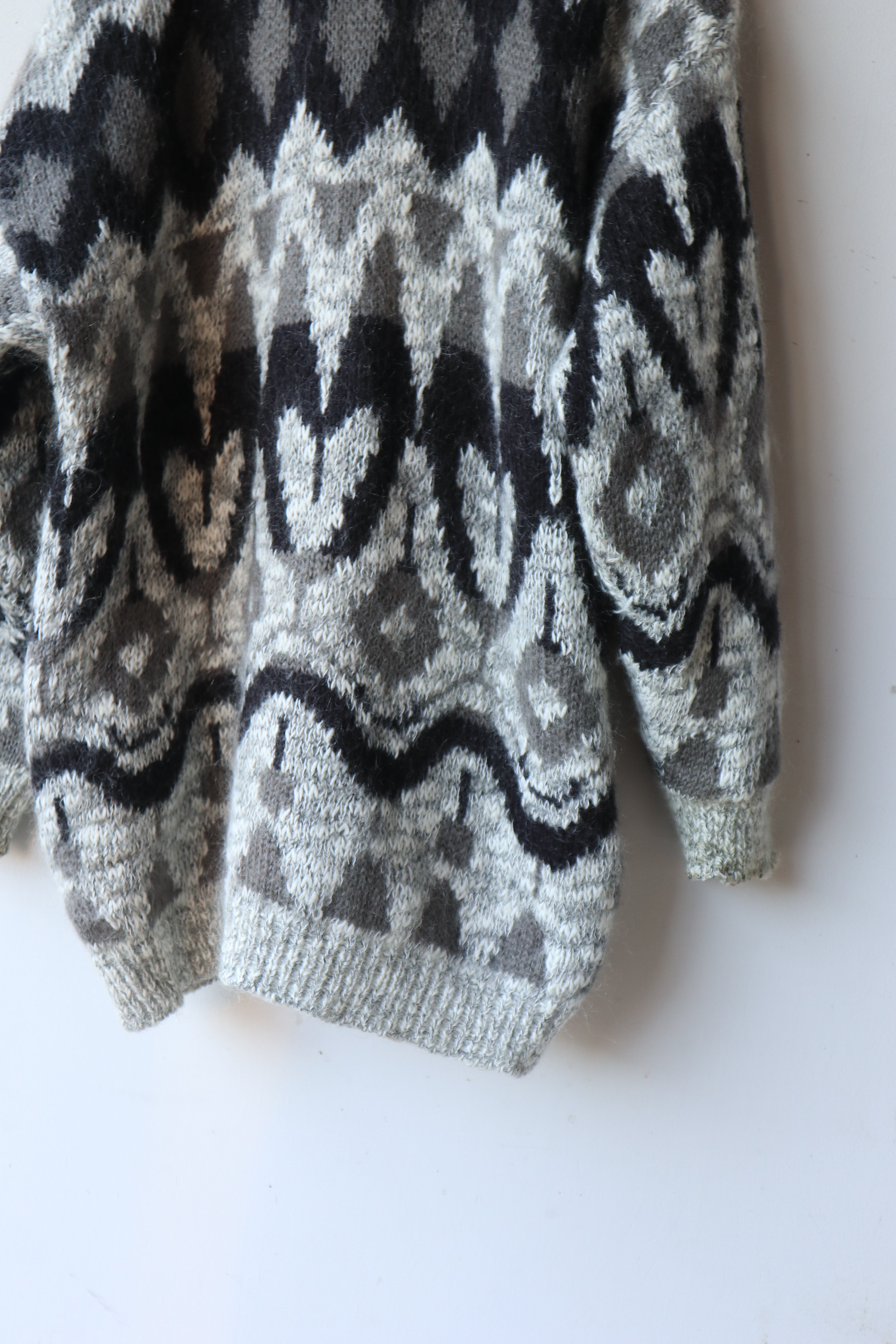 ノルディックや民族調の要素を抽象的に落とし込んだデザインで、1980〜1990年代頃のヨーロッパニットらしい雰囲気
