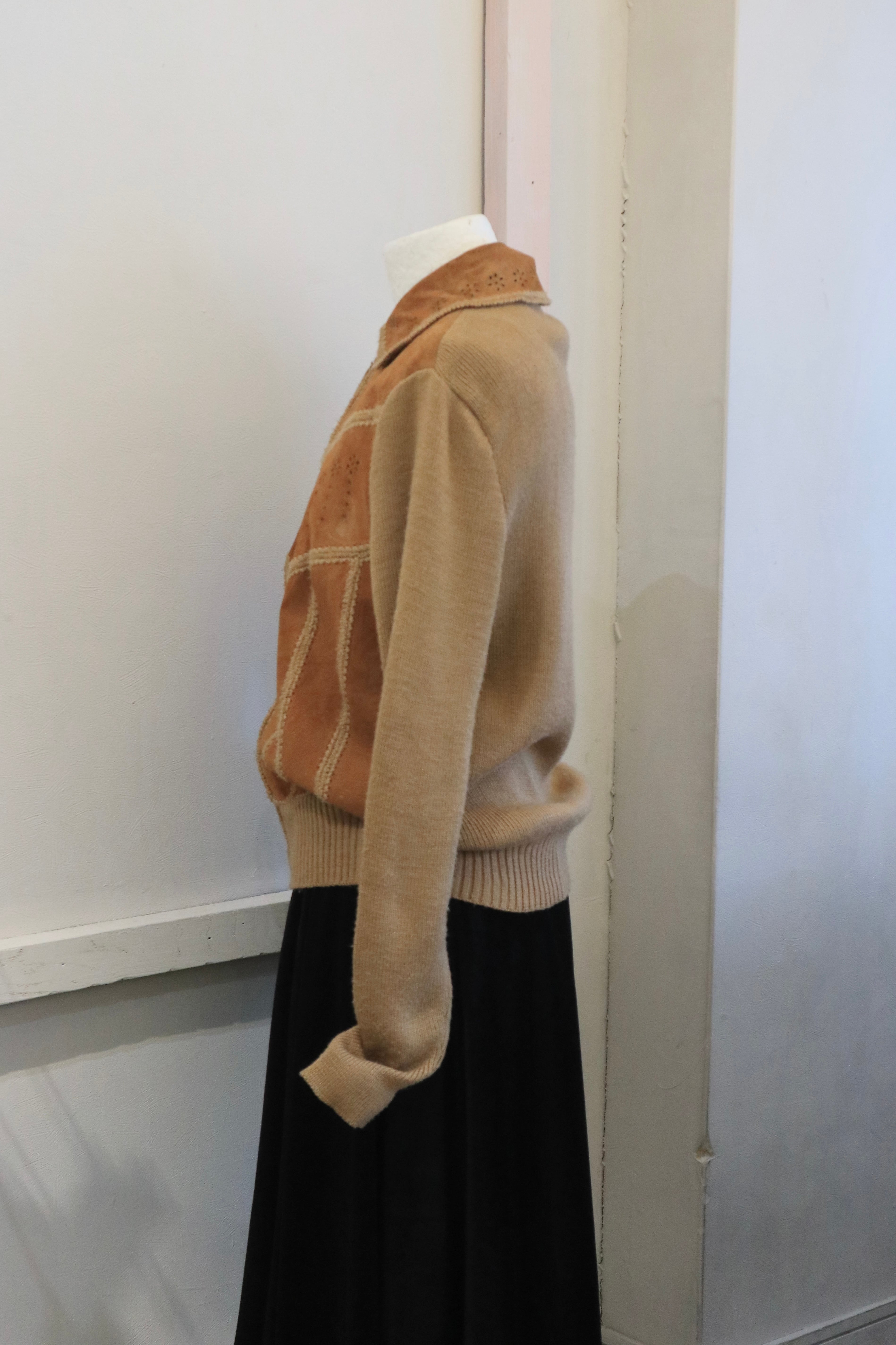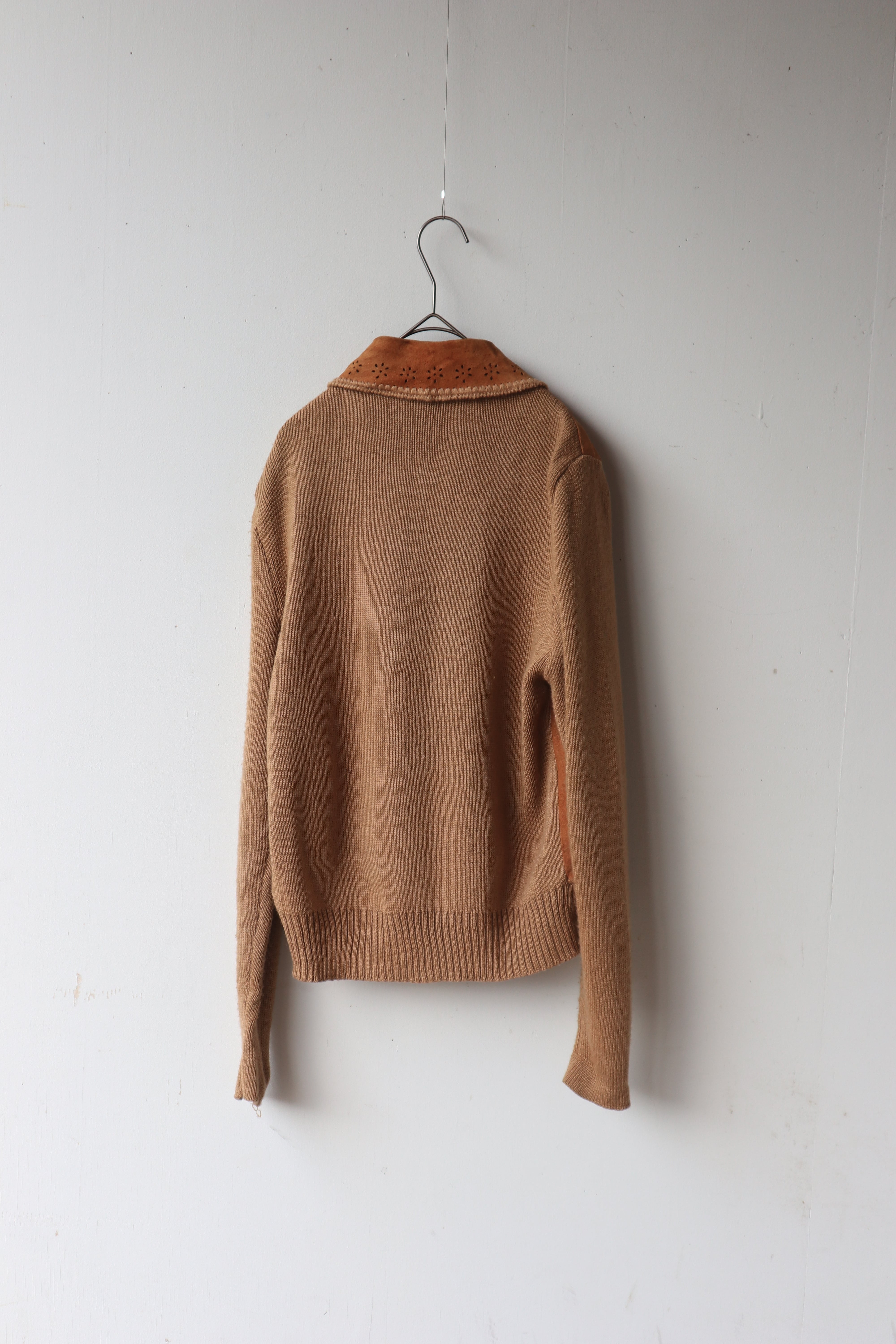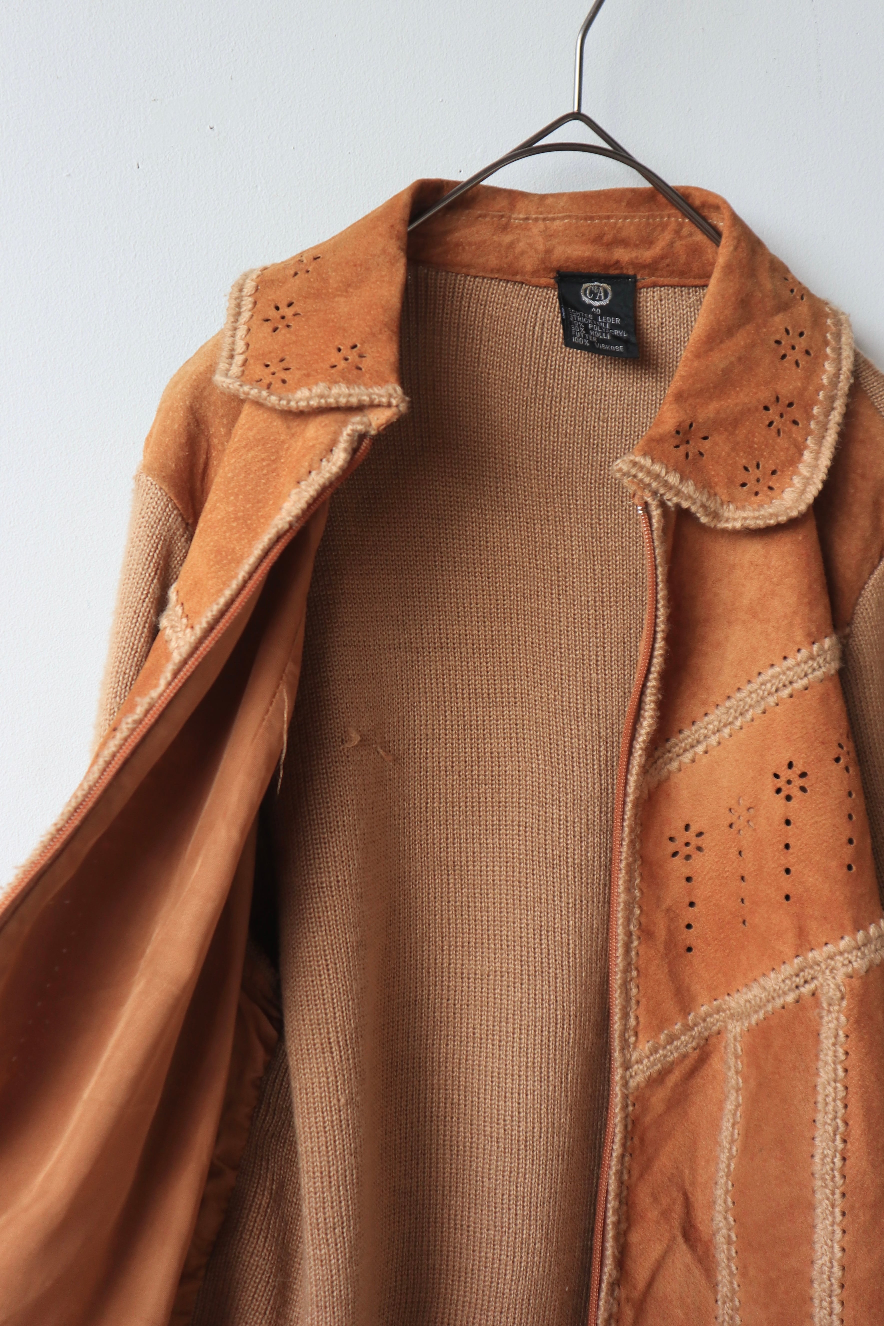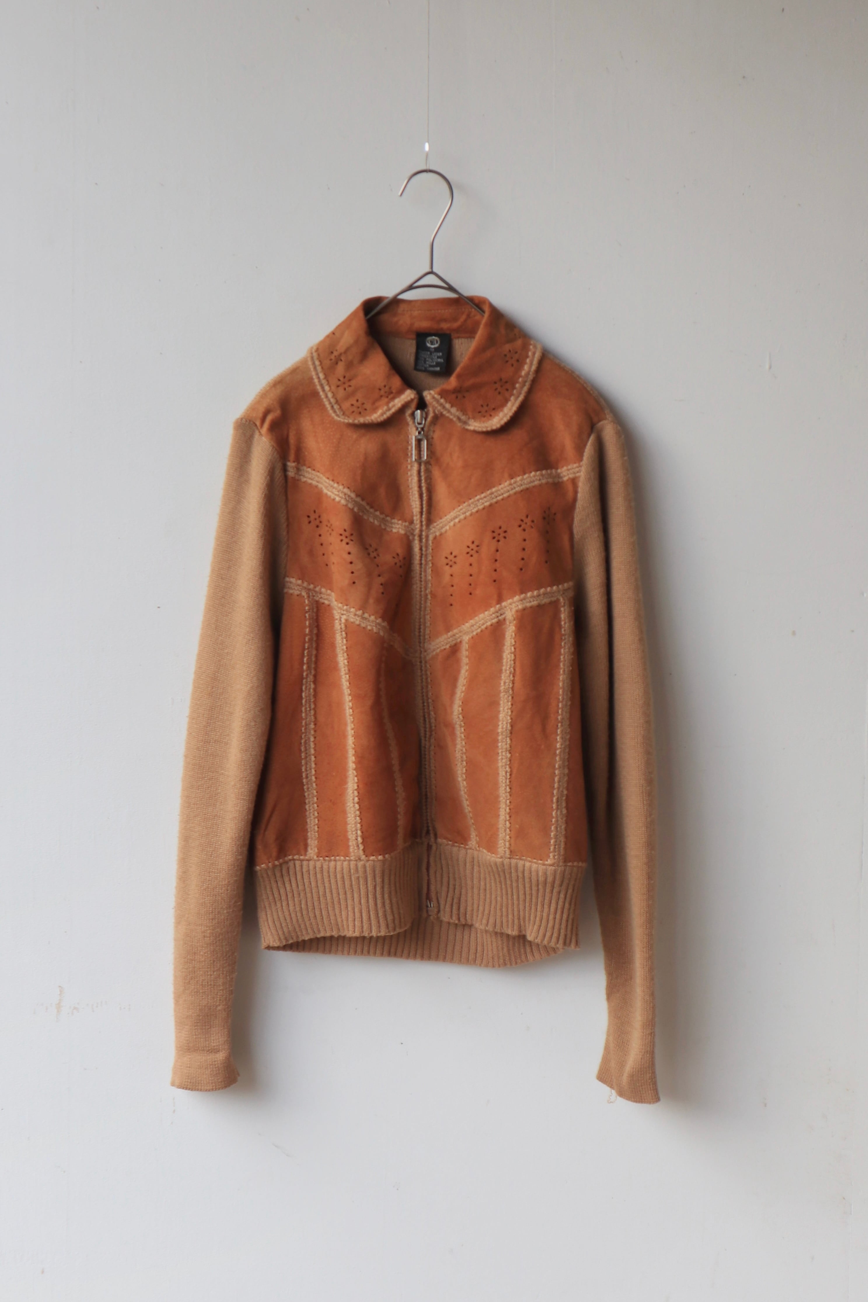 [suède leather × knit zip jacket]