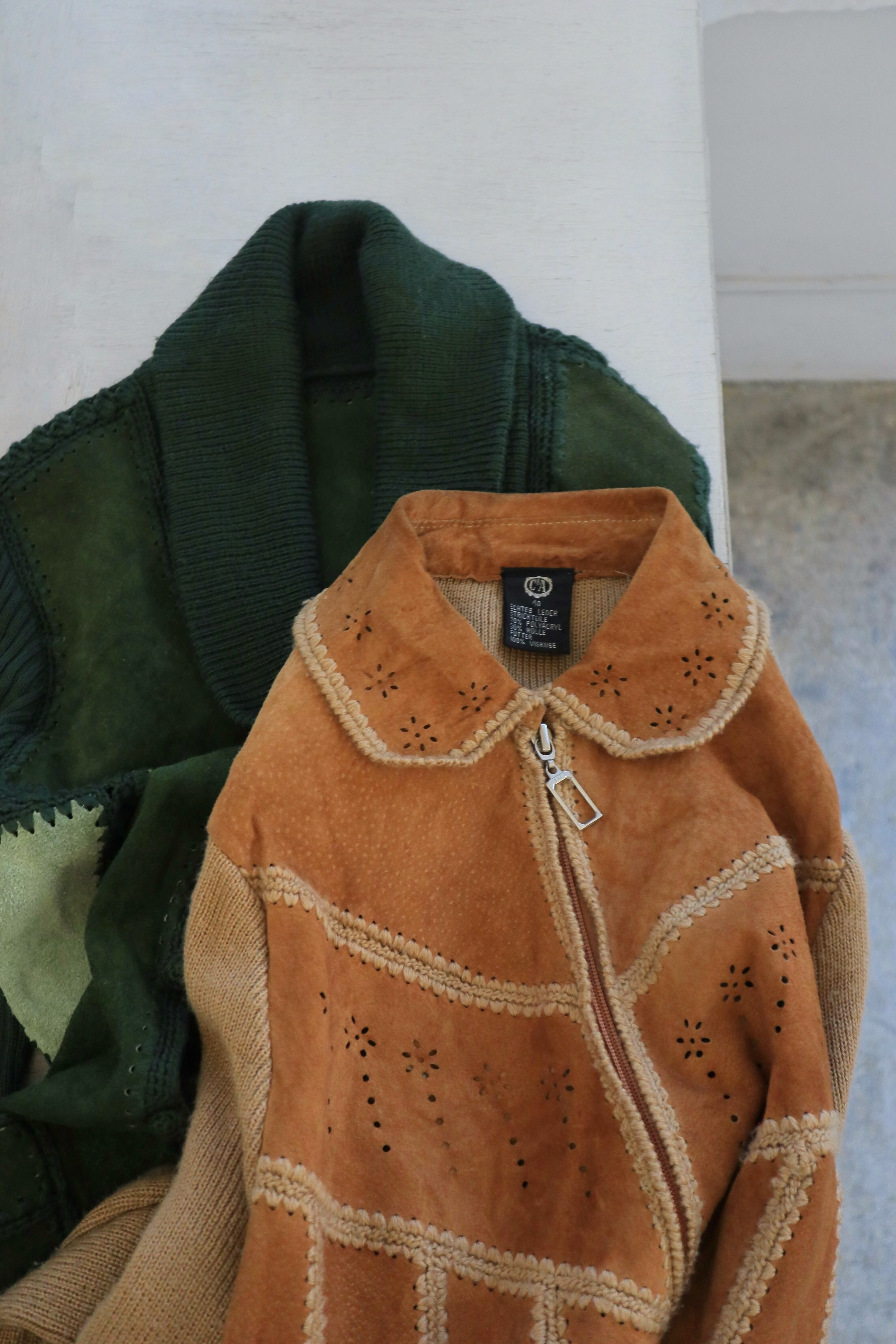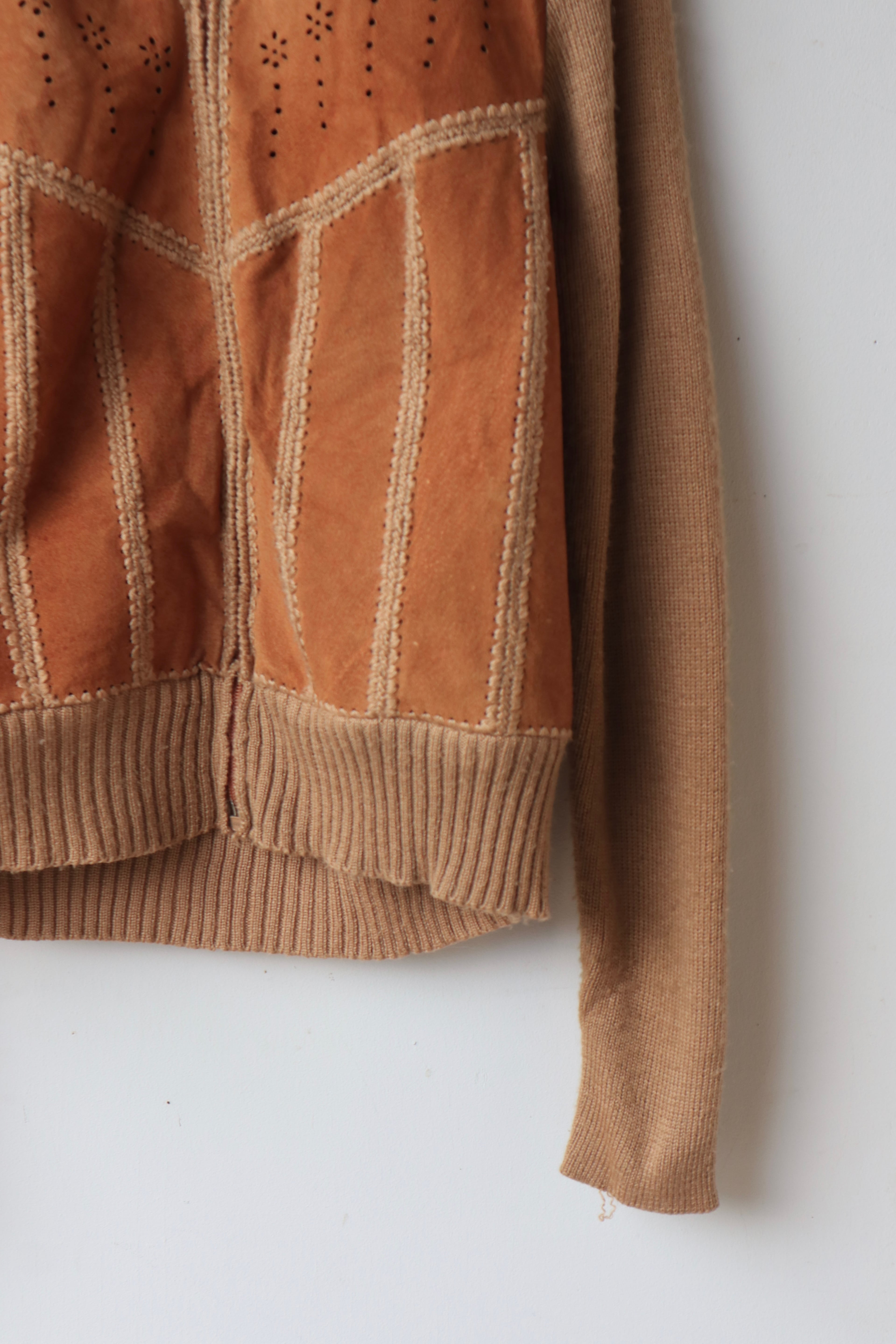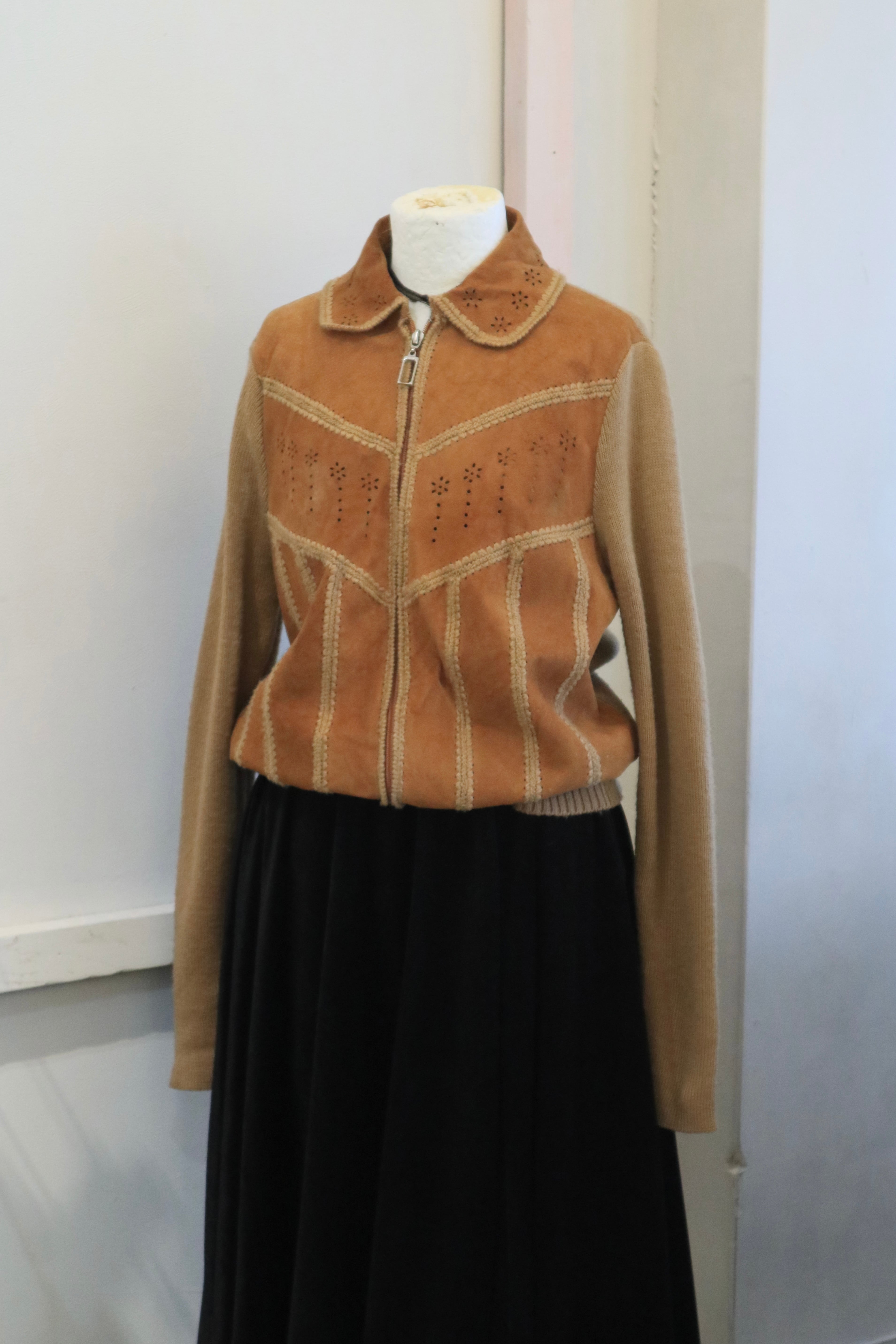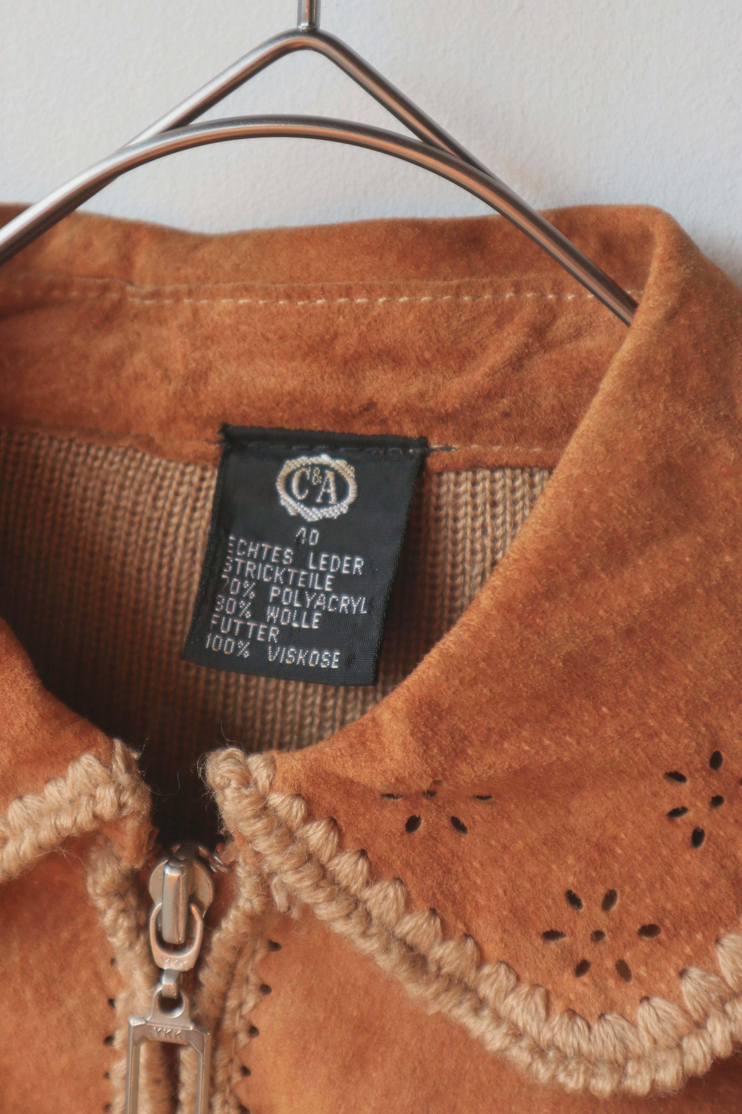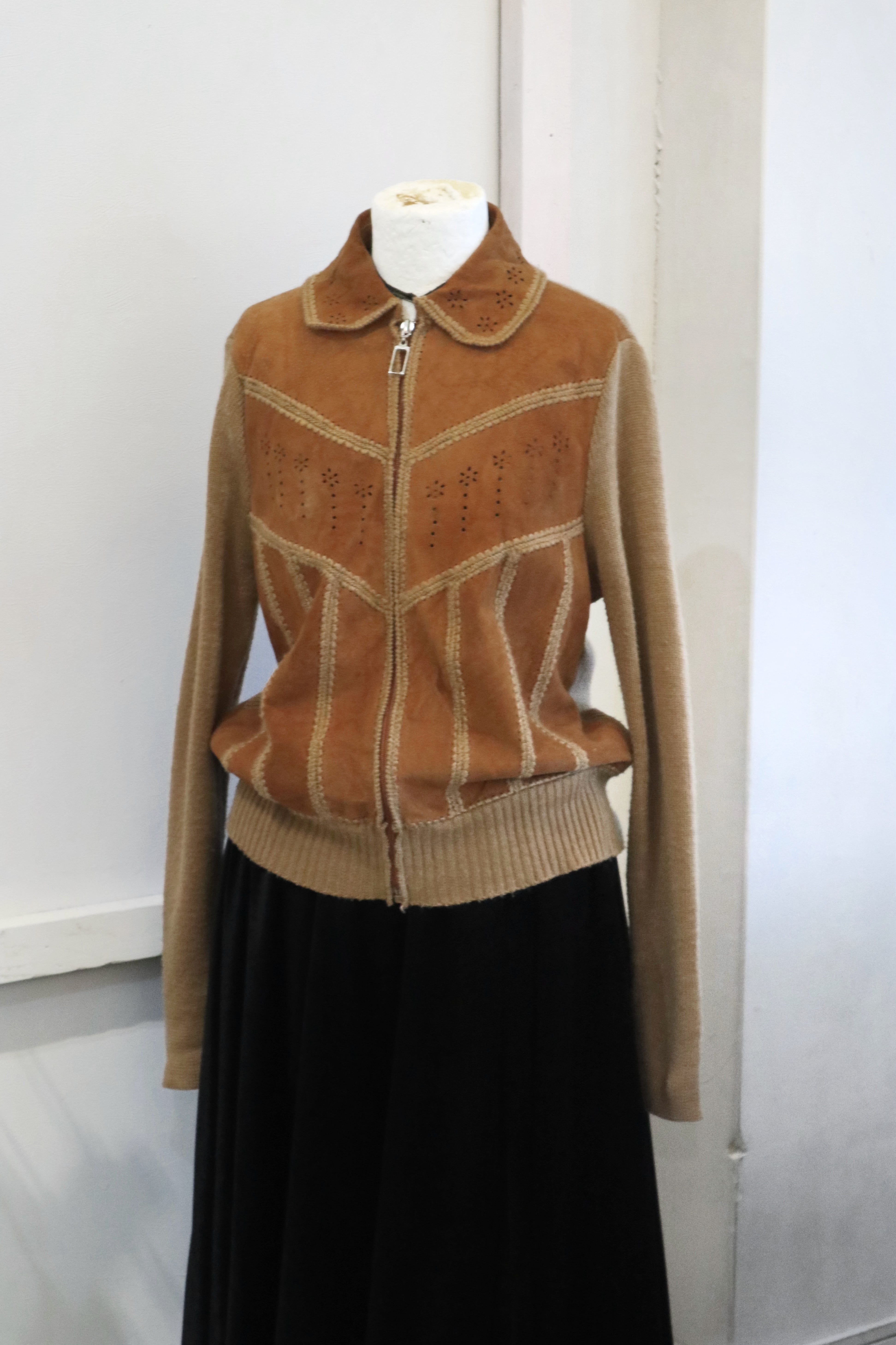 [suède leather × knit zip jacket]
