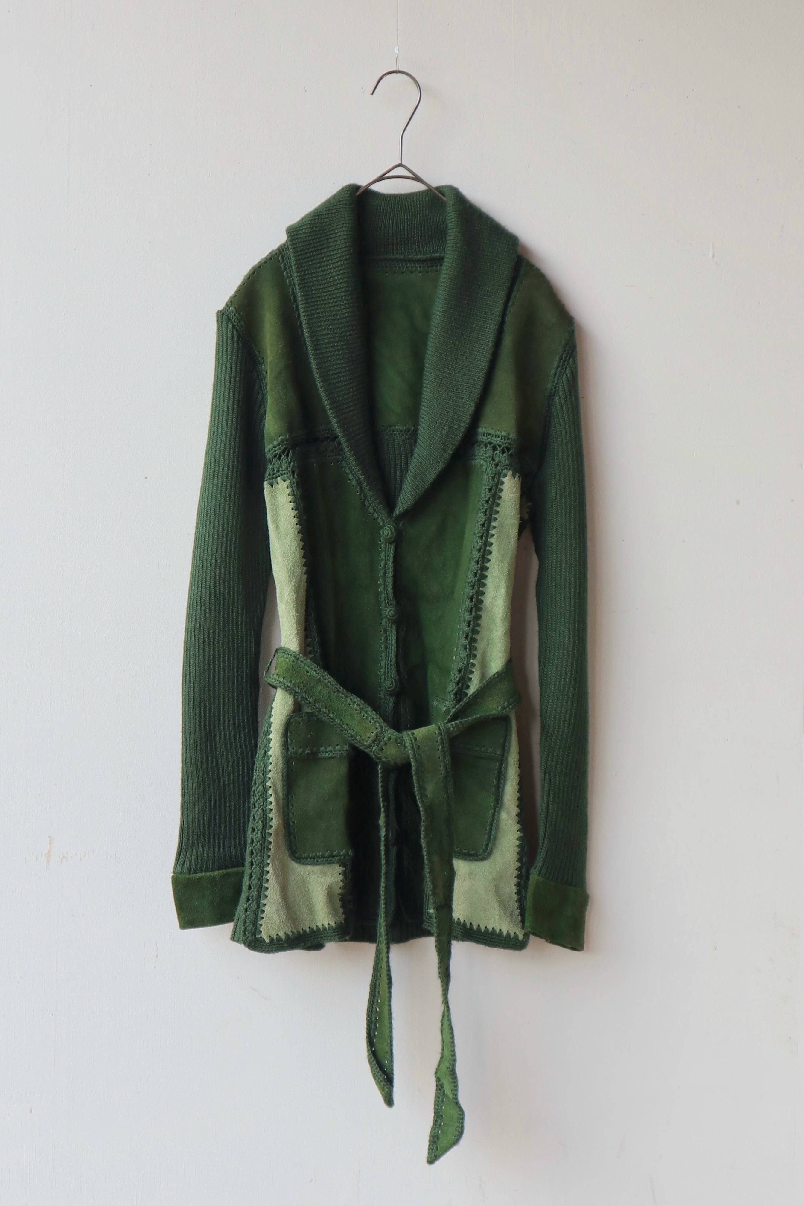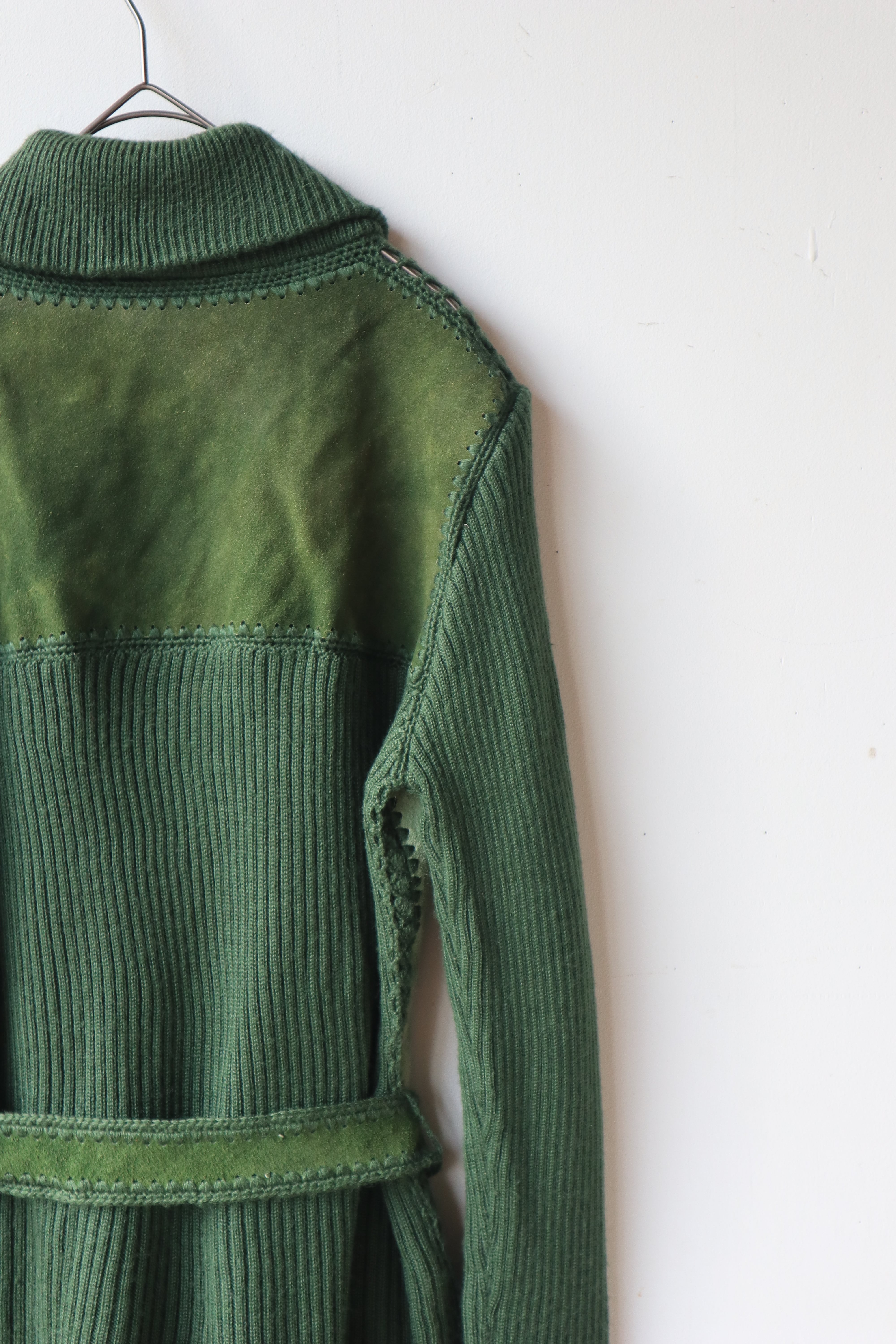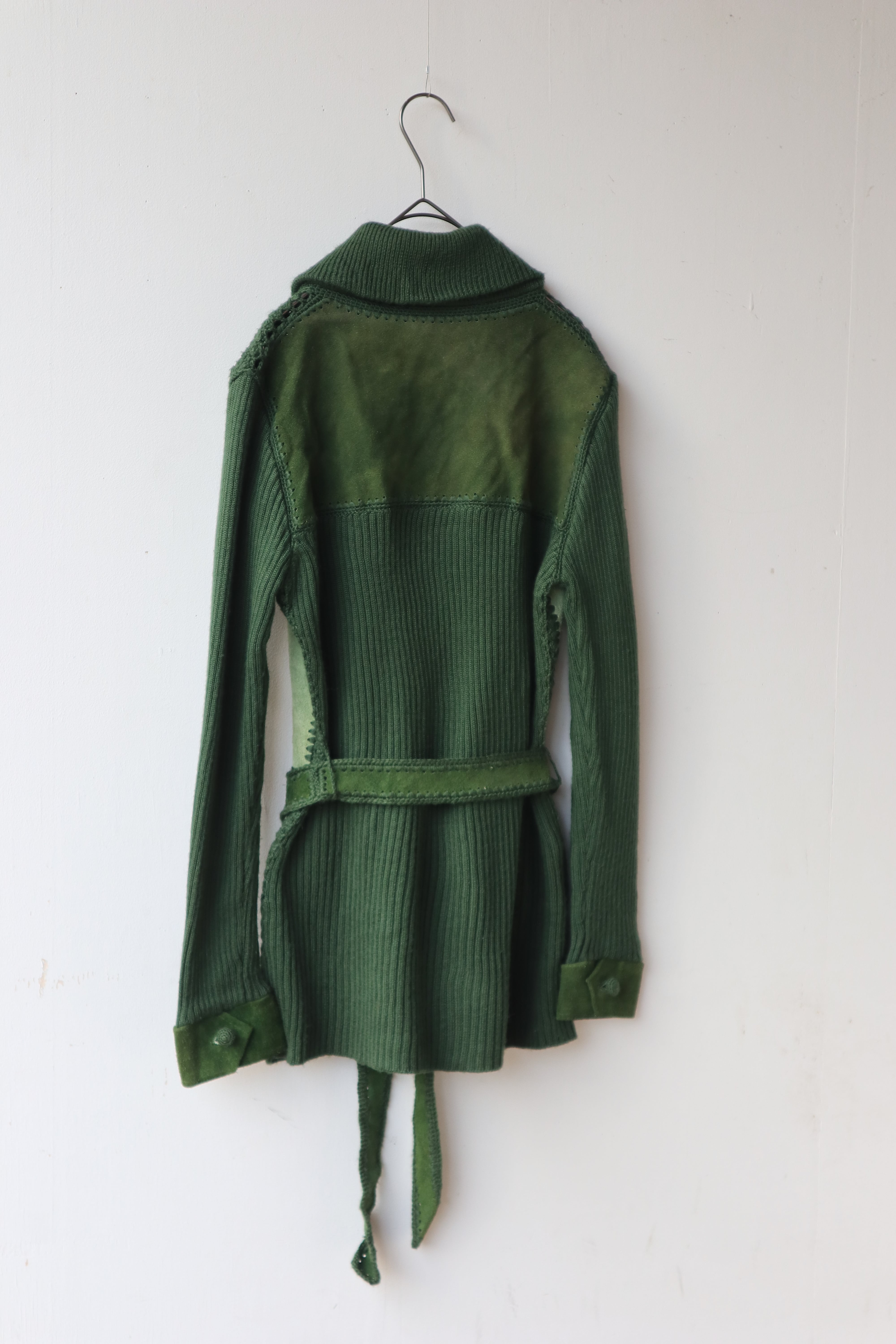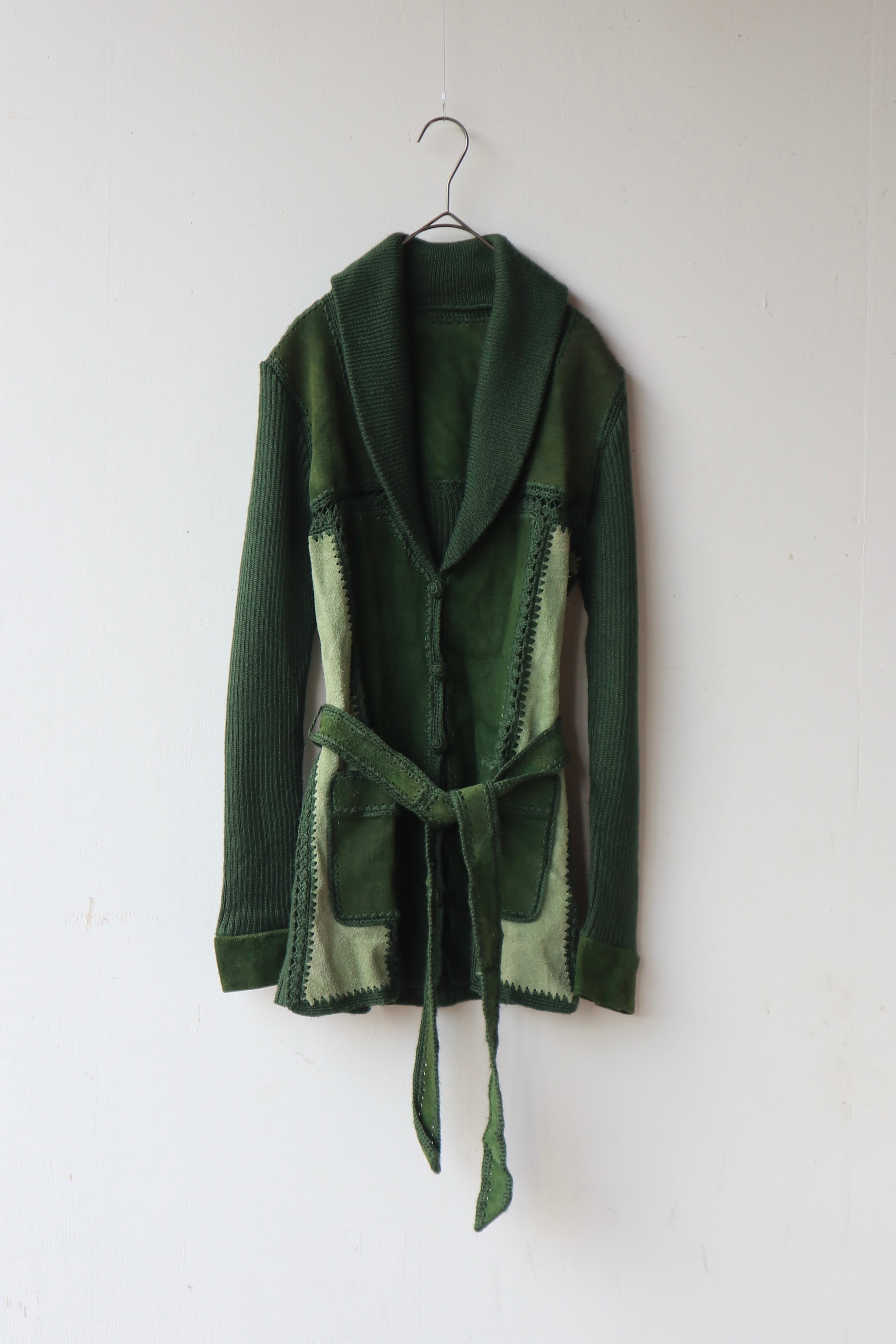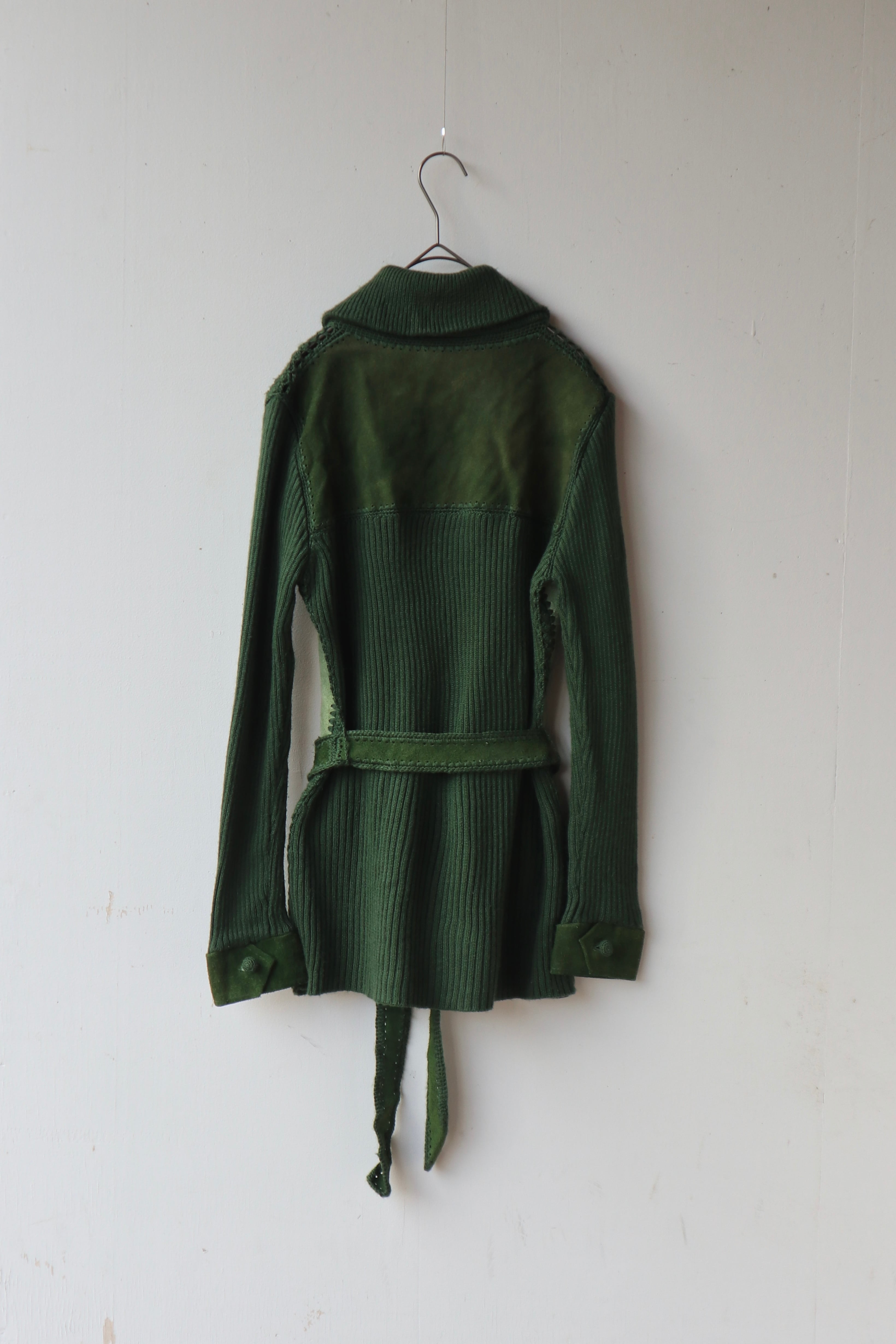 [suède leather × knit belted jacket]