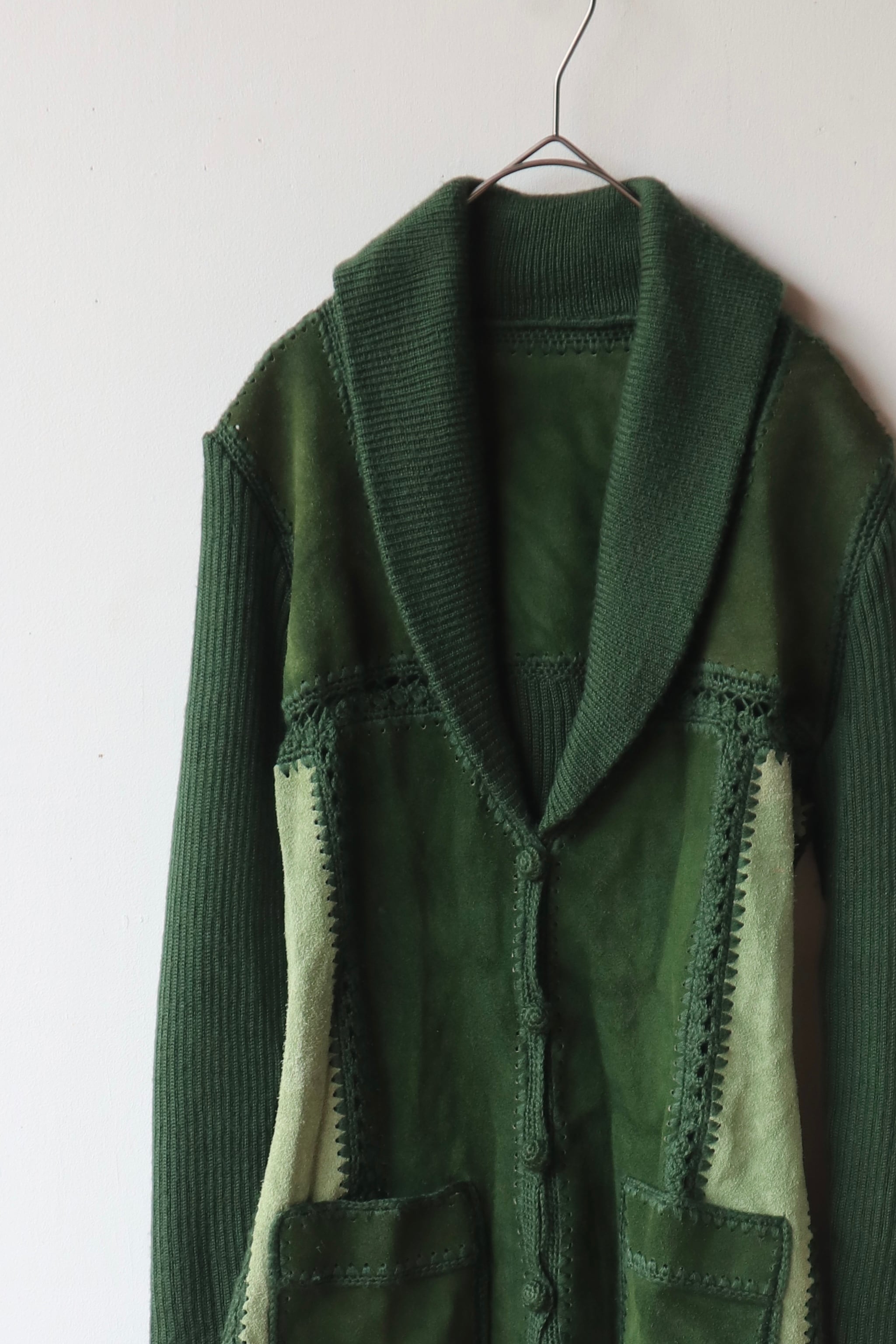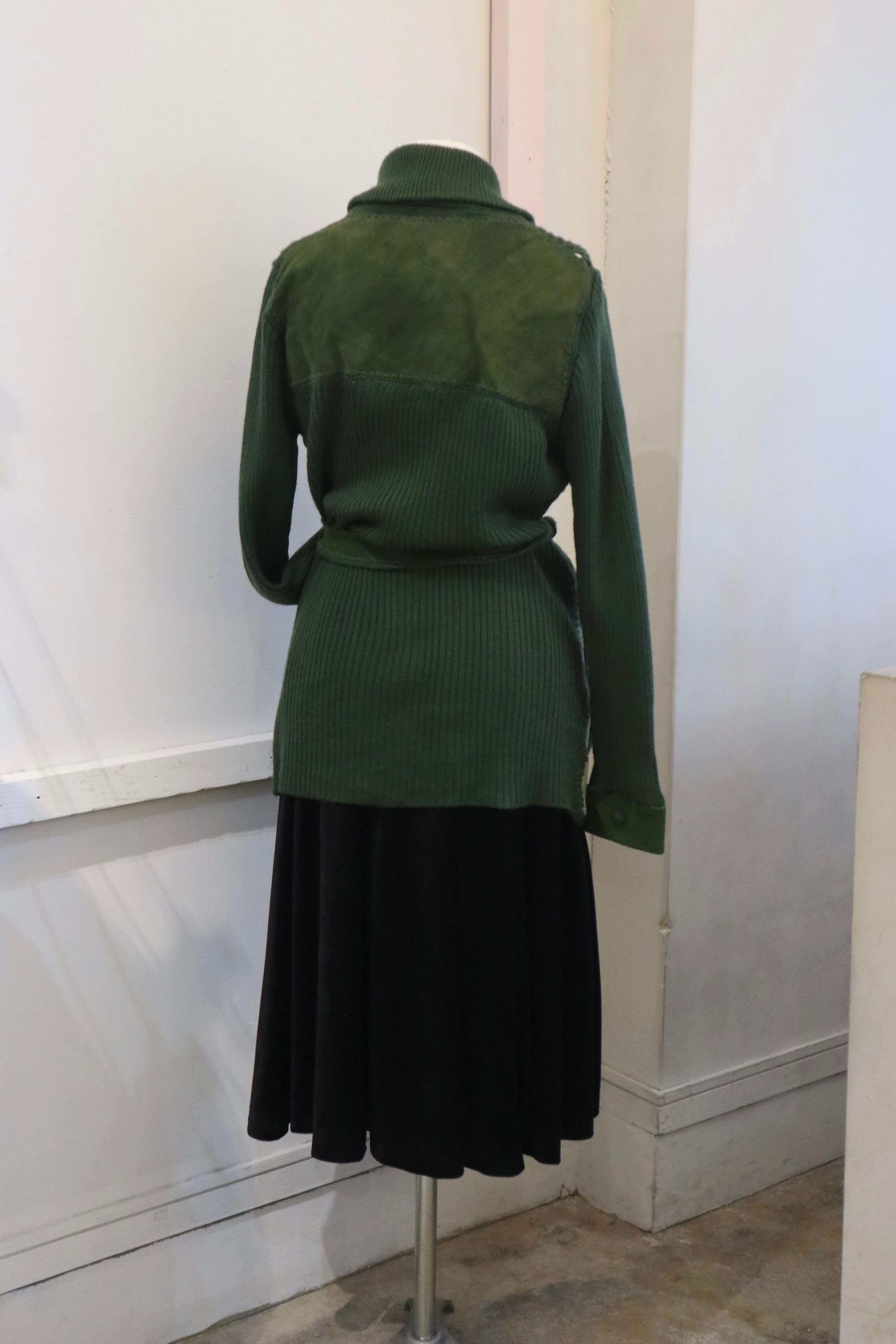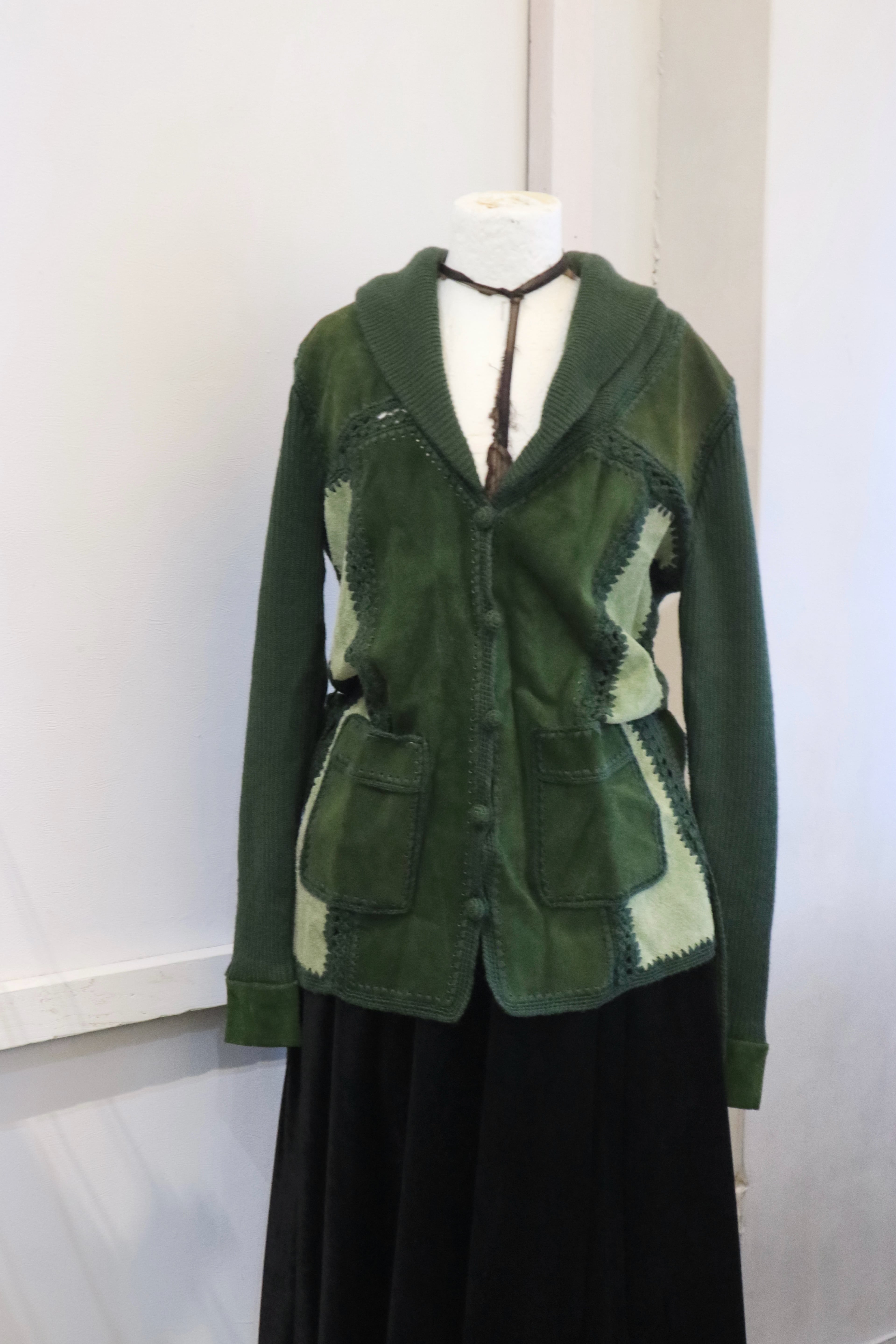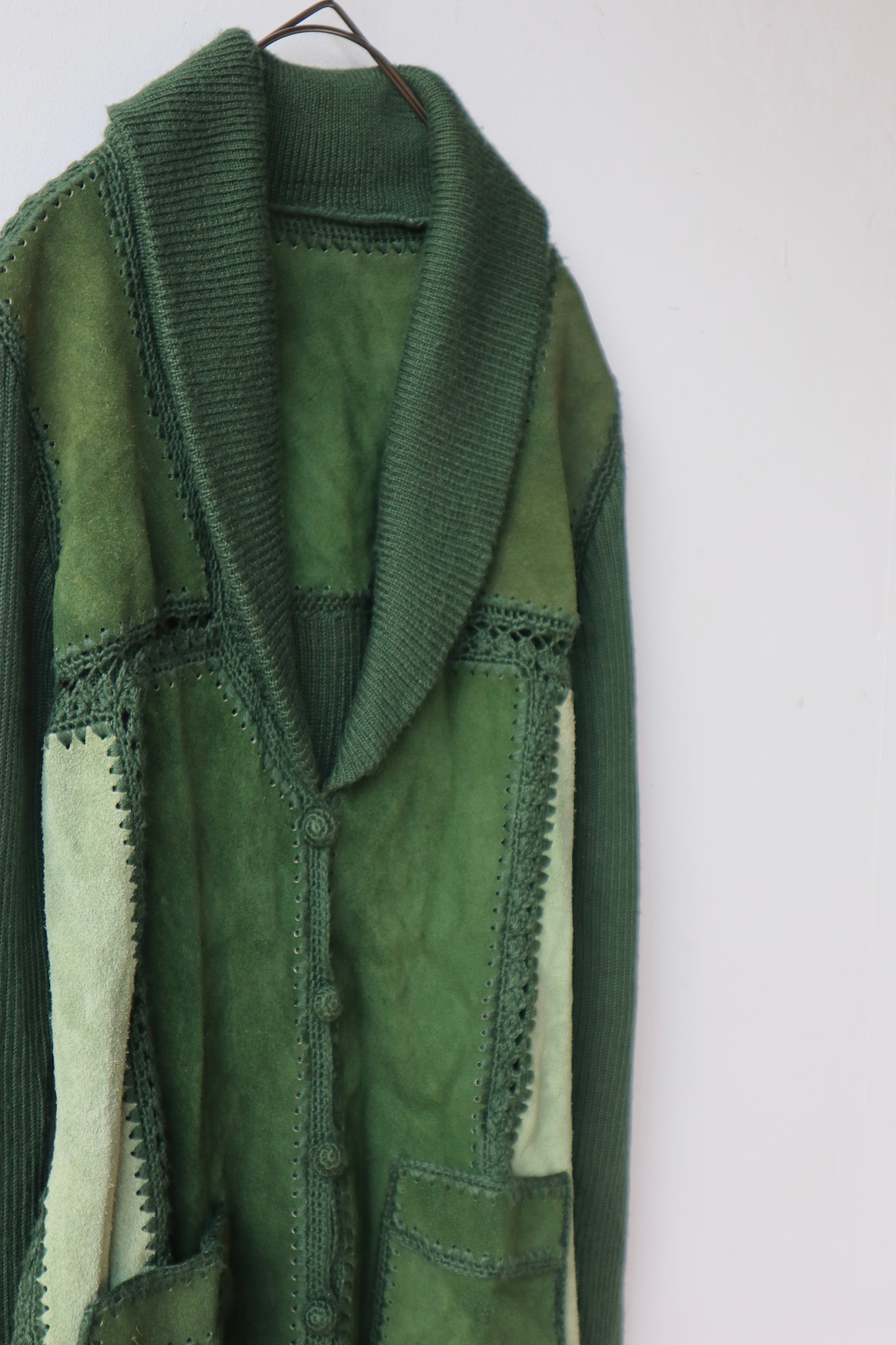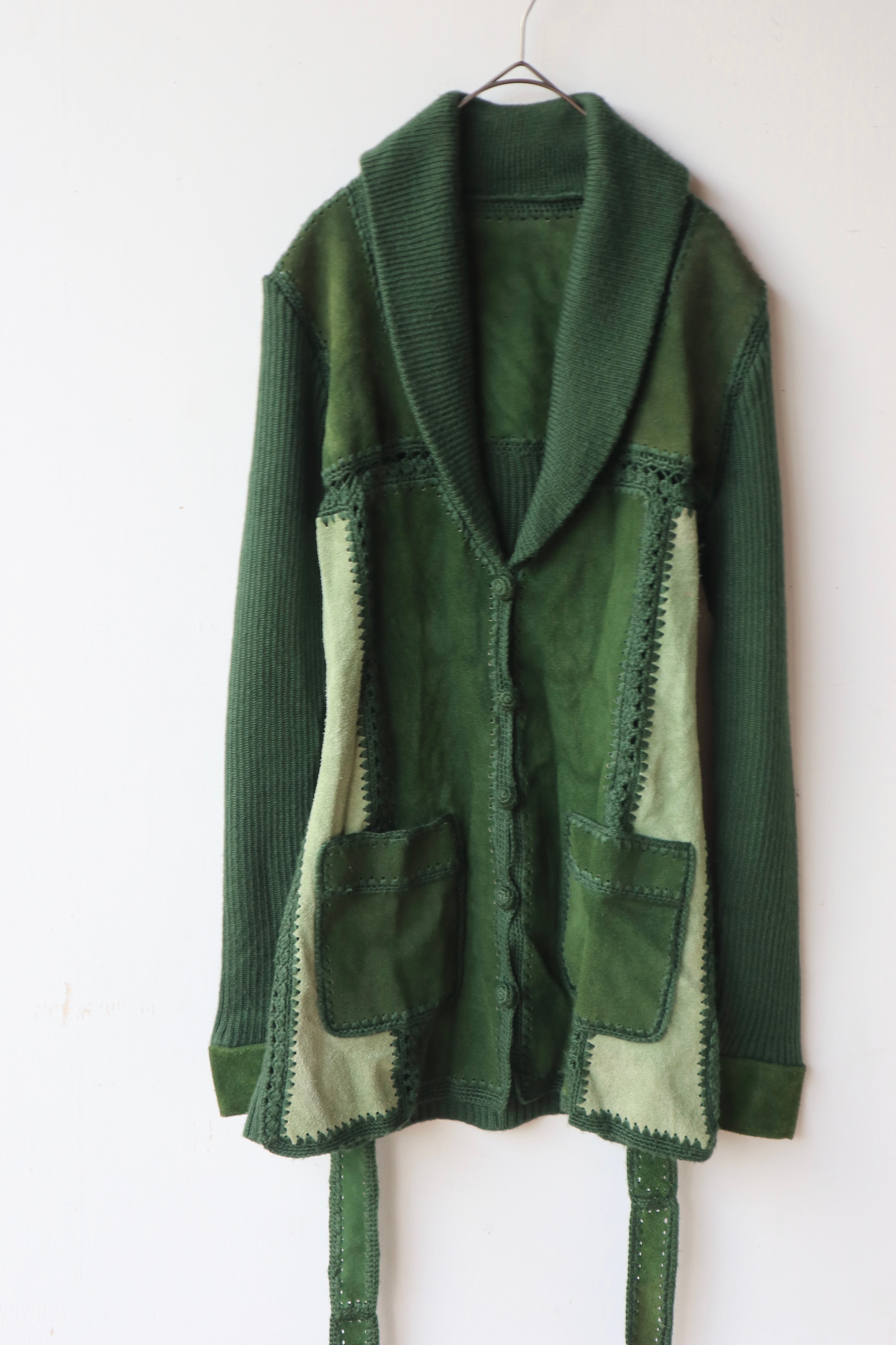 [suède leather × knit belted jacket]