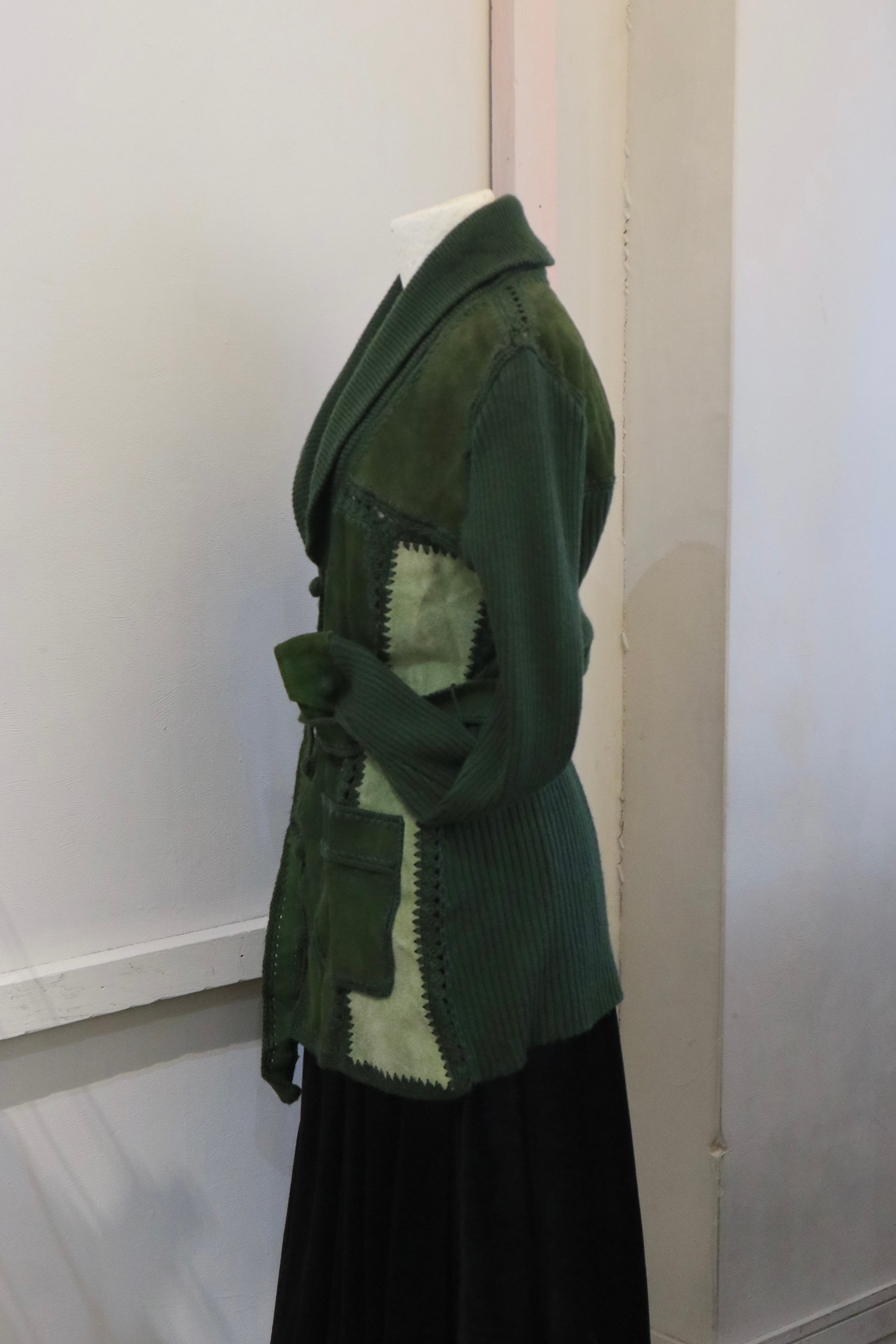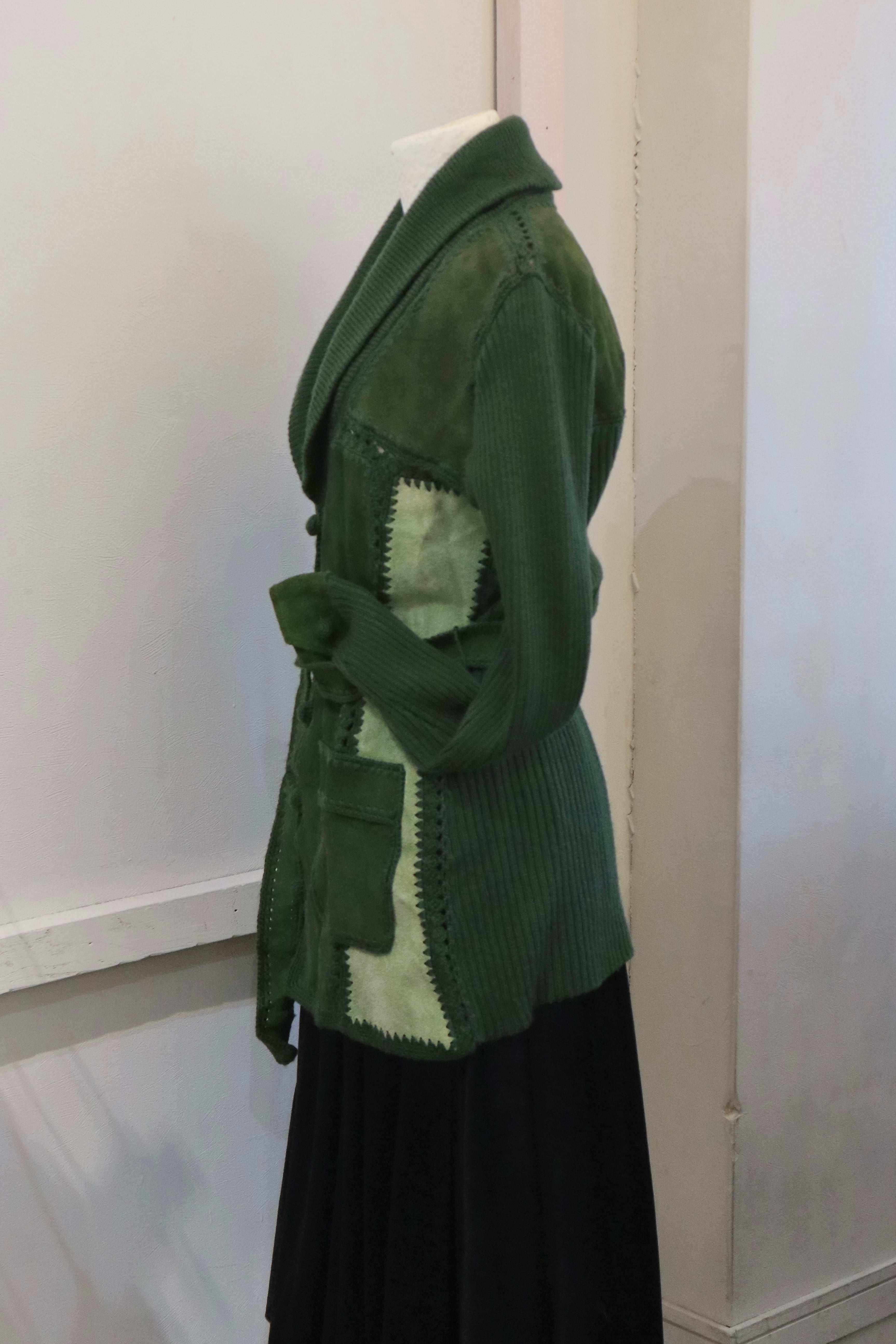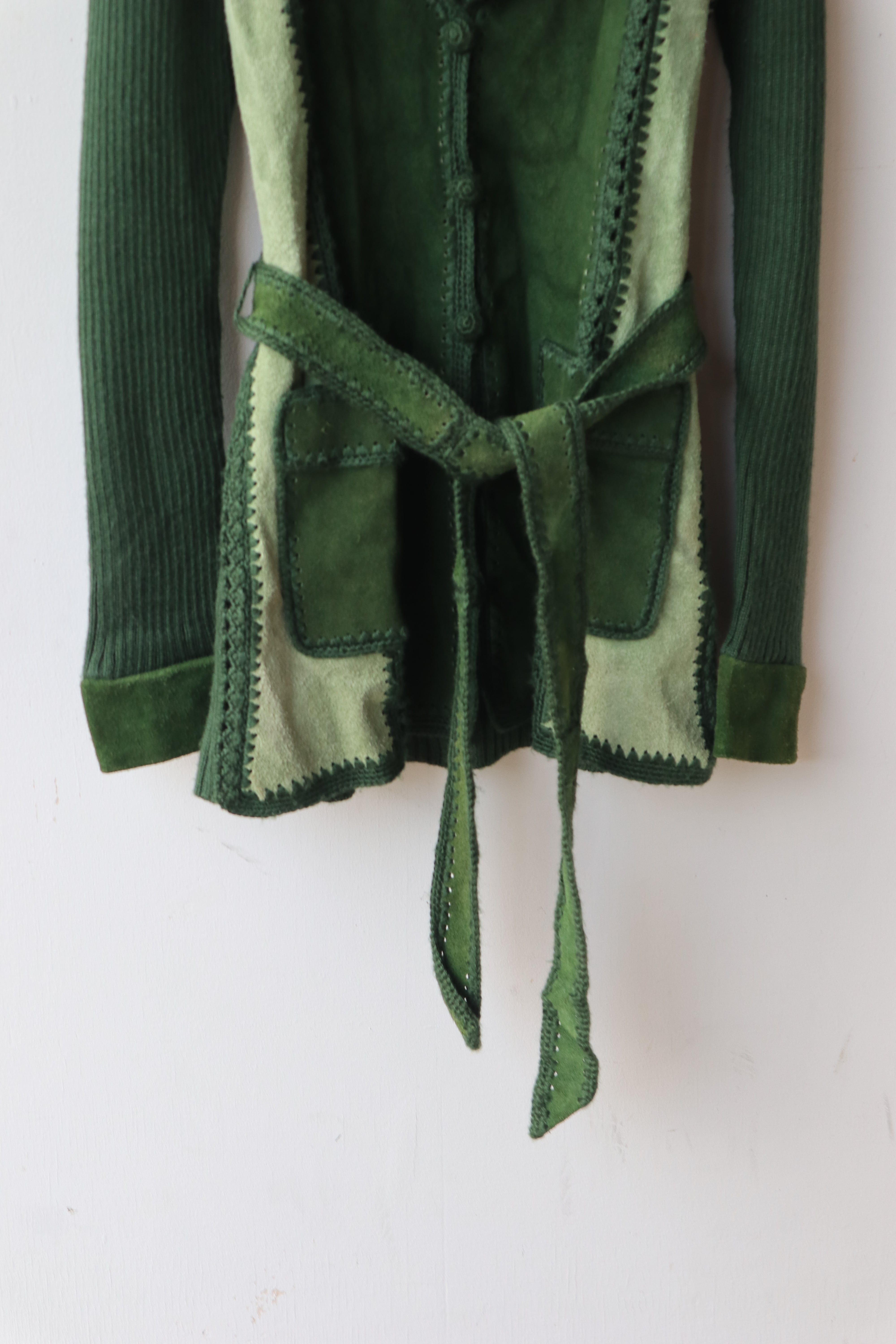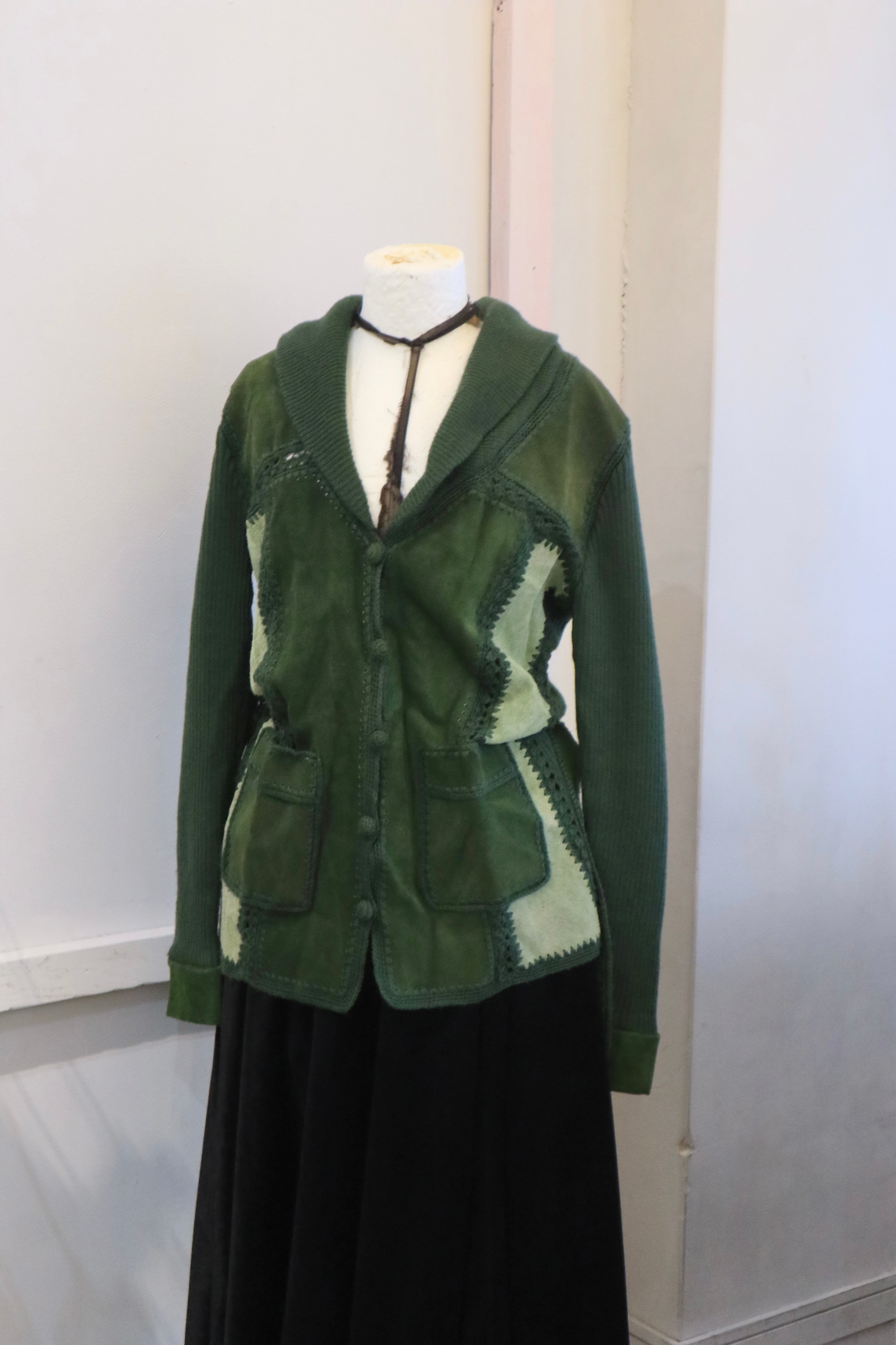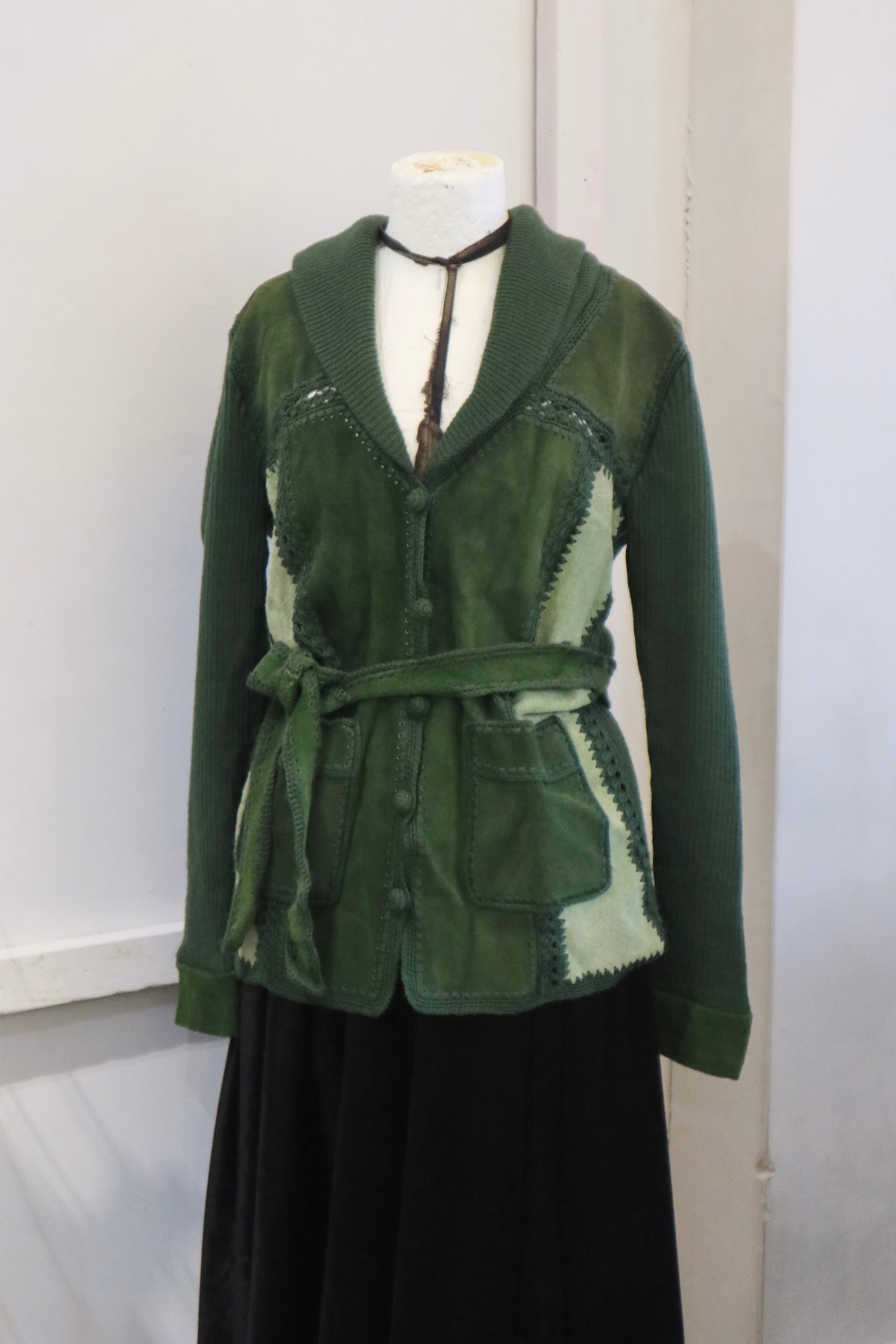 [suède leather × knit belted jacket]