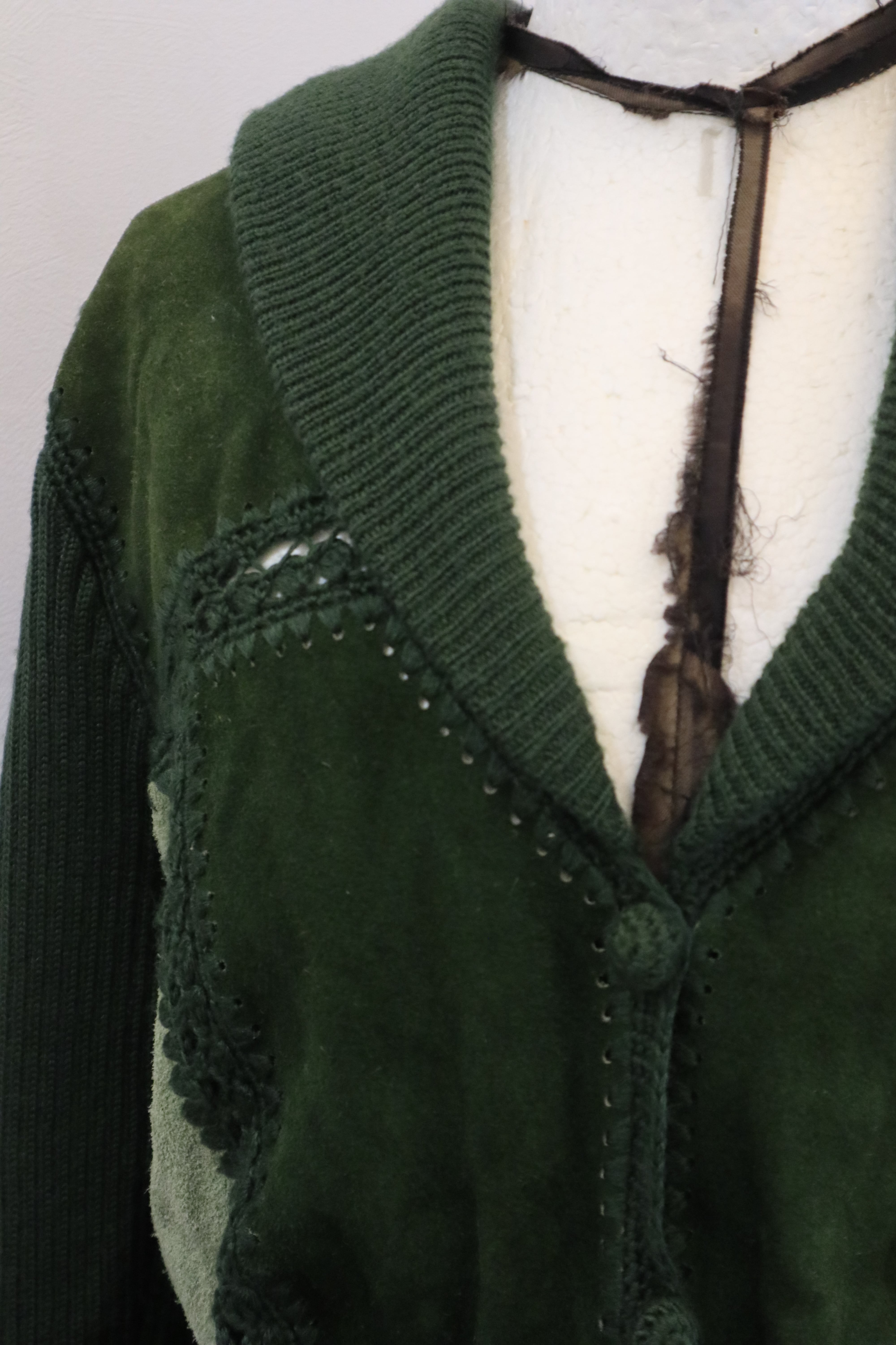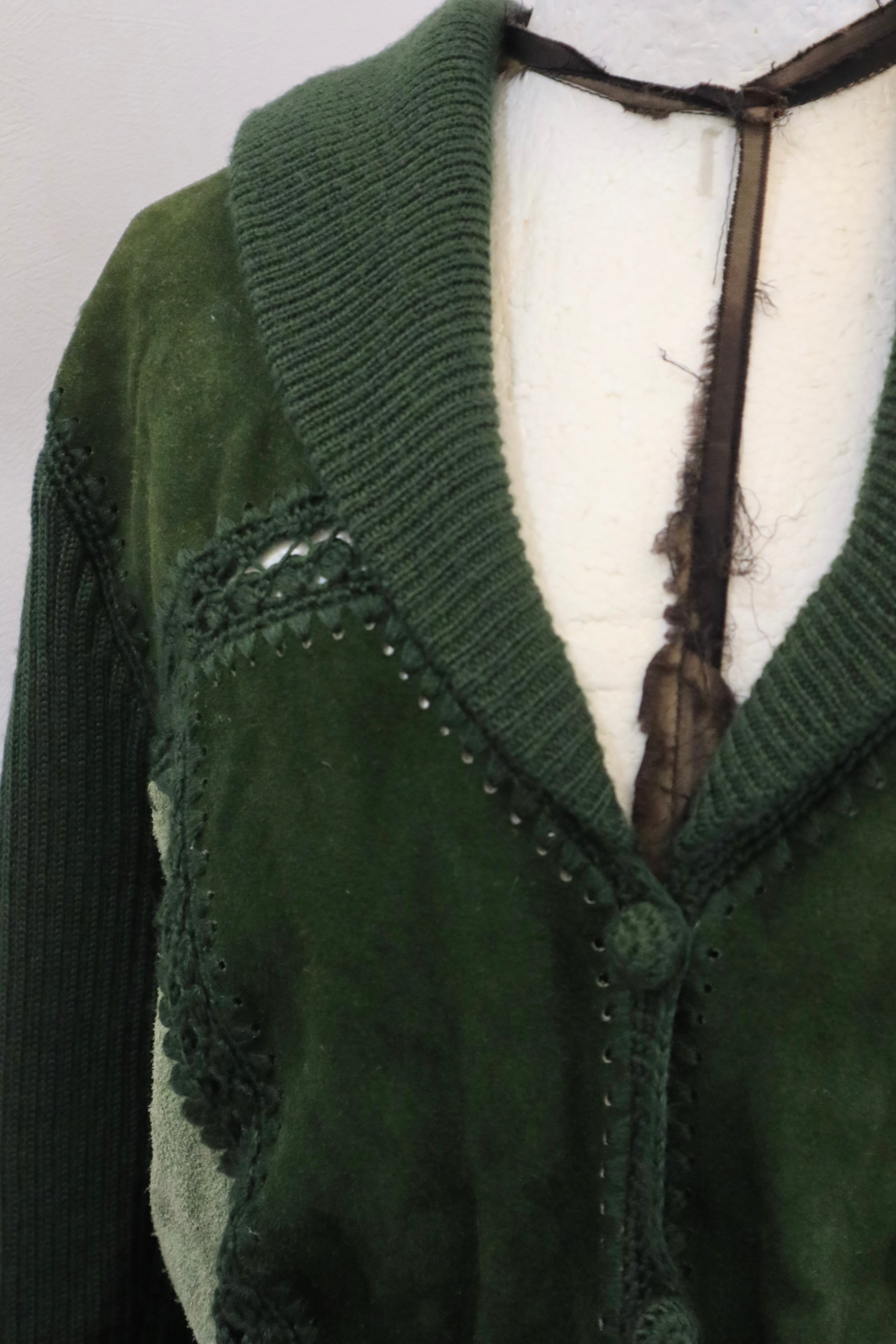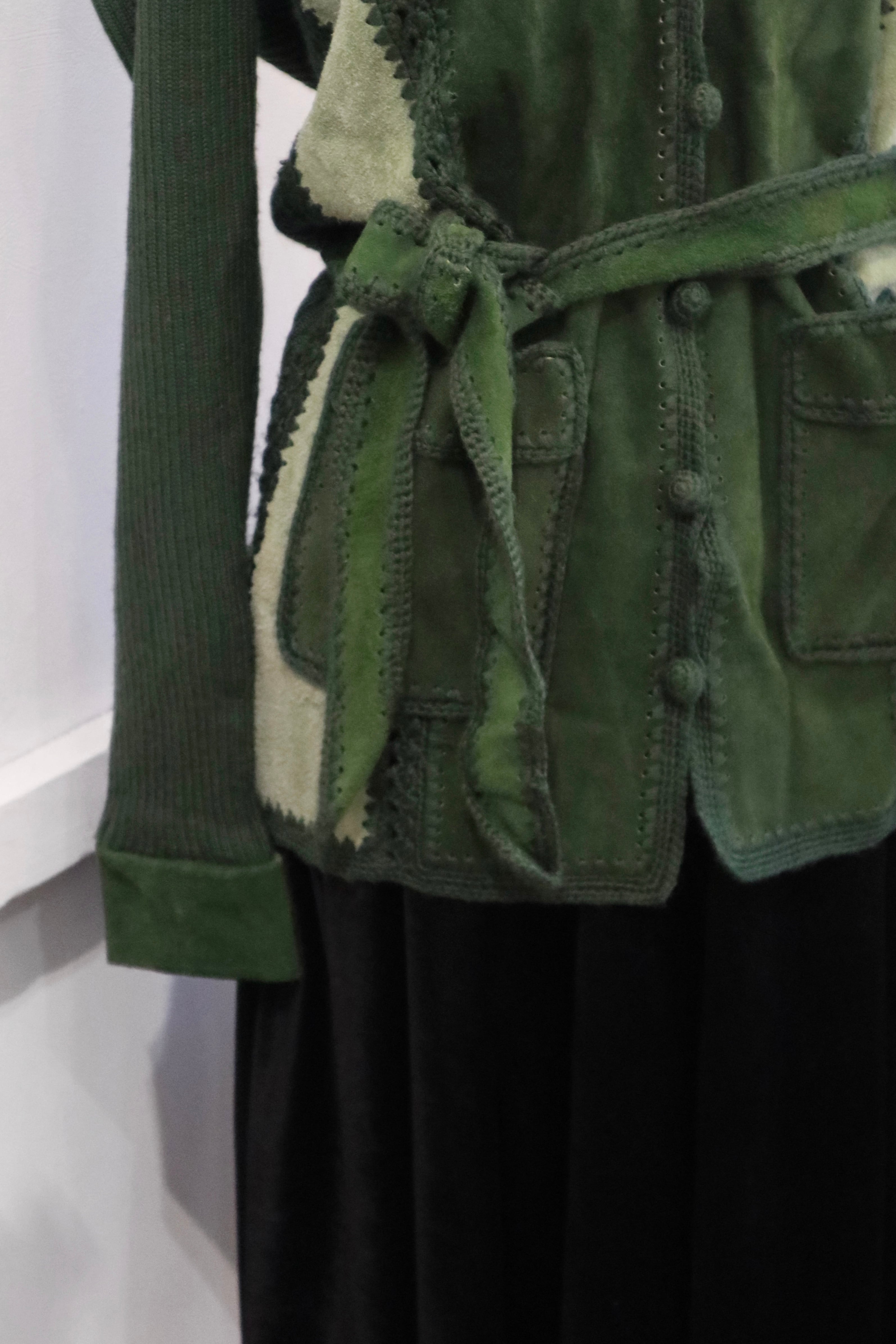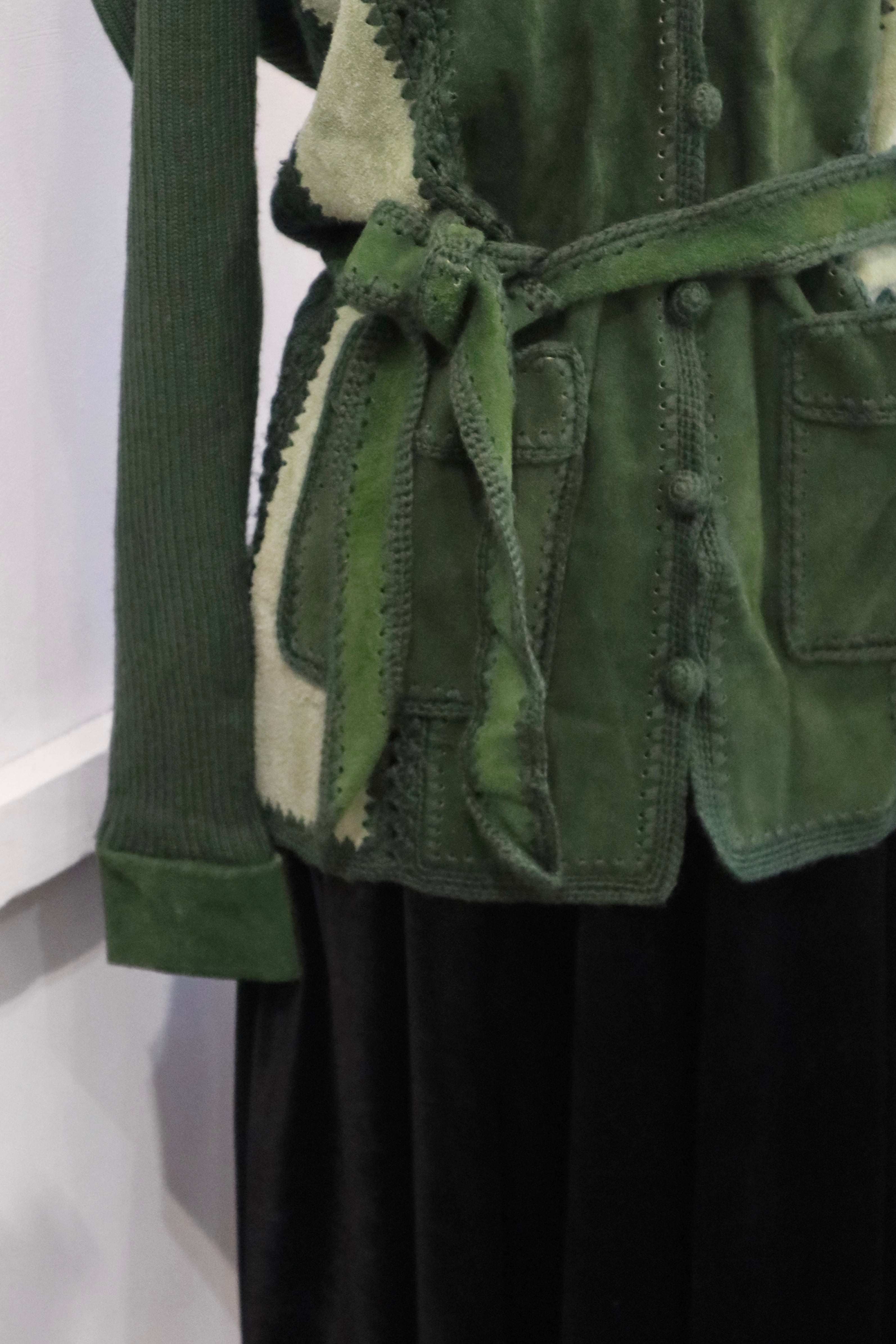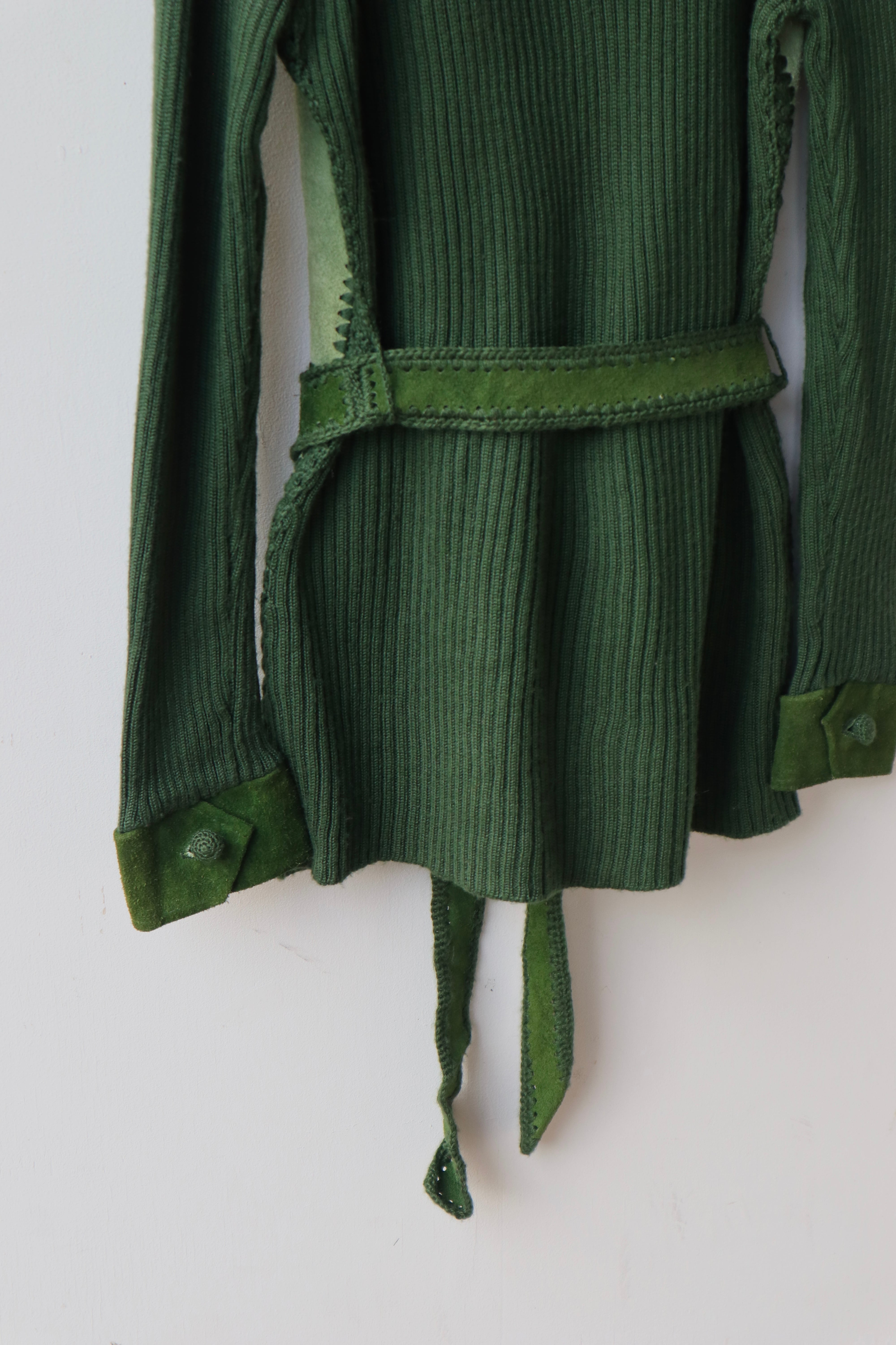 [suède leather × knit belted jacket]