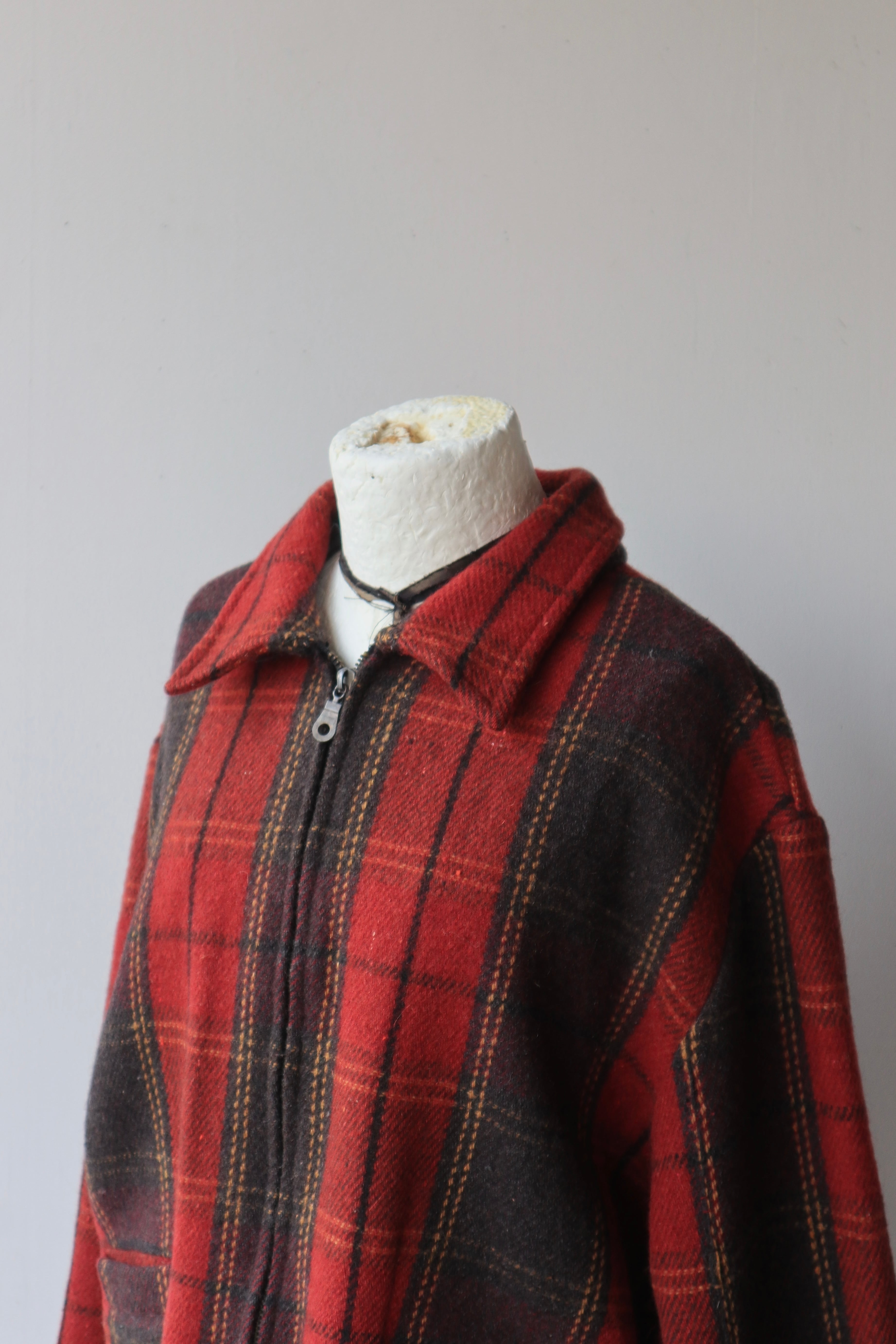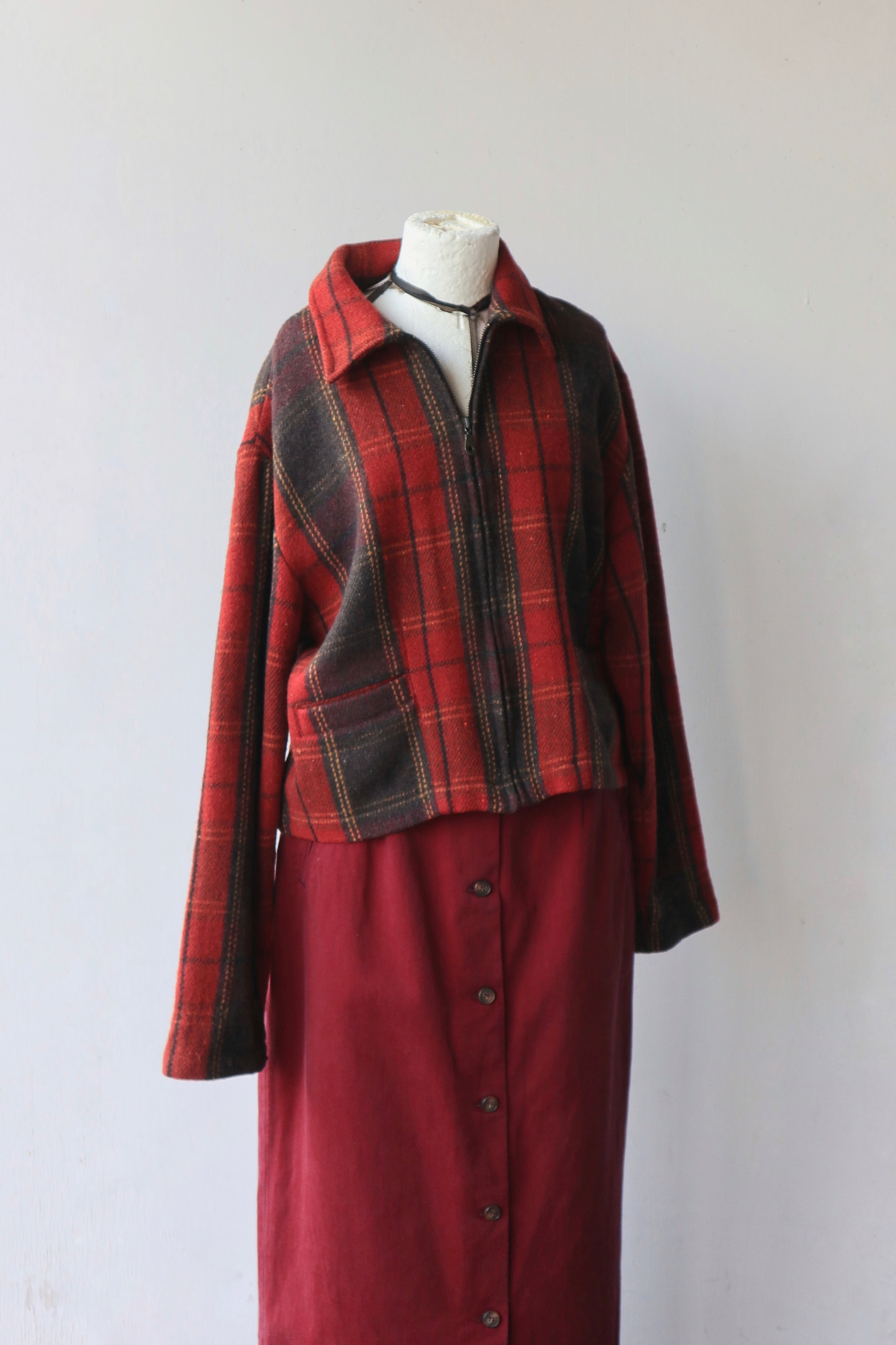 [plaid wool zip short jacket]