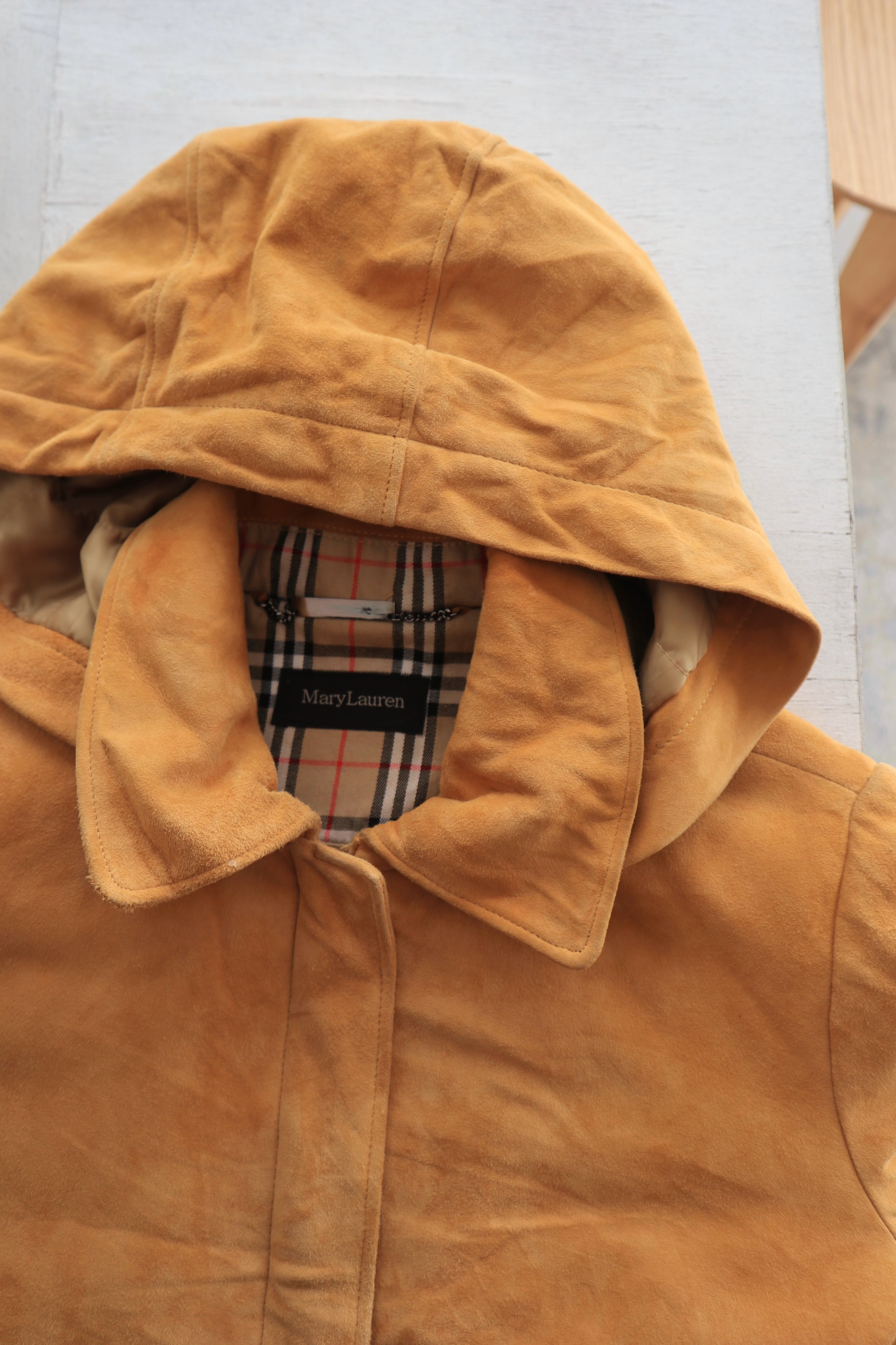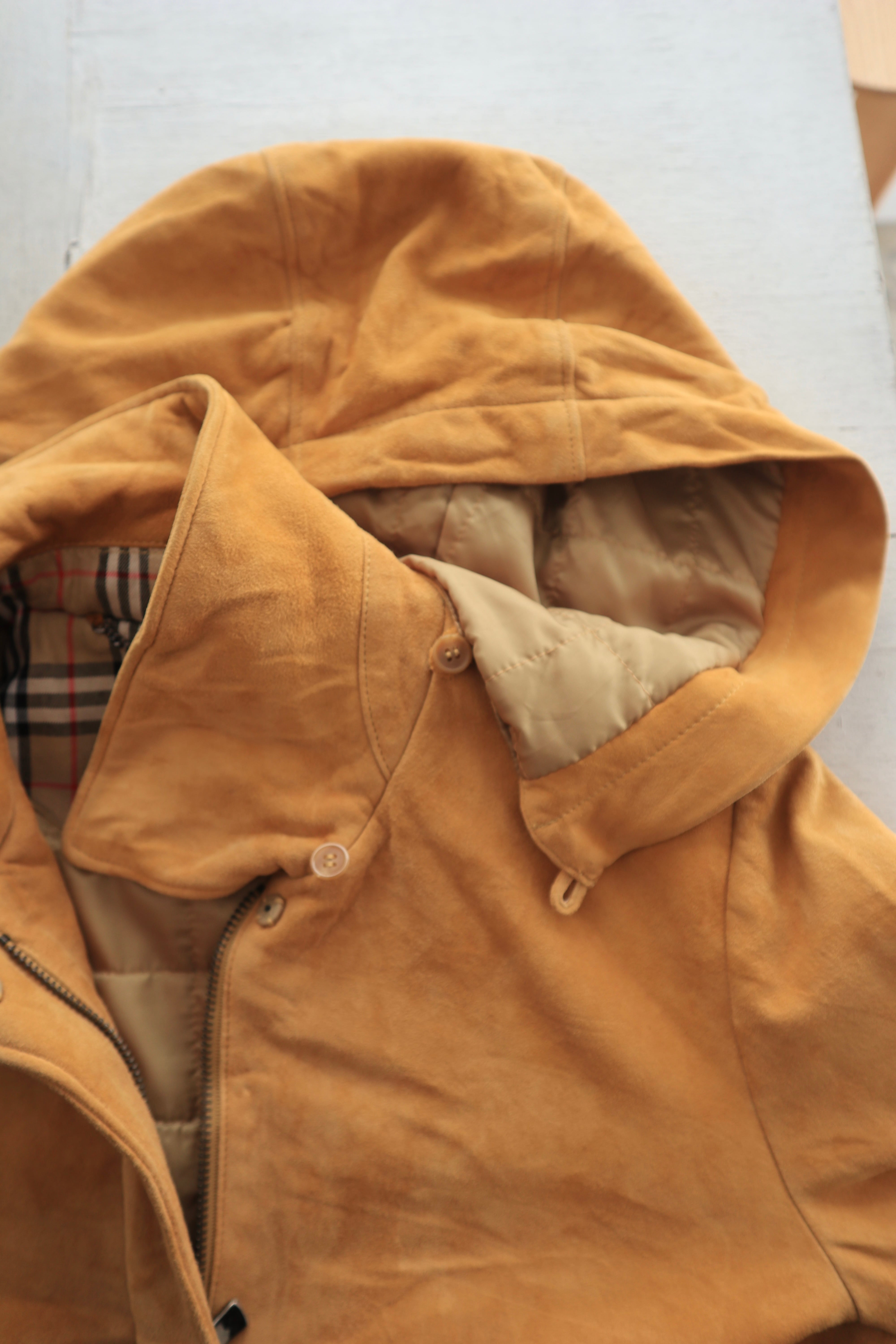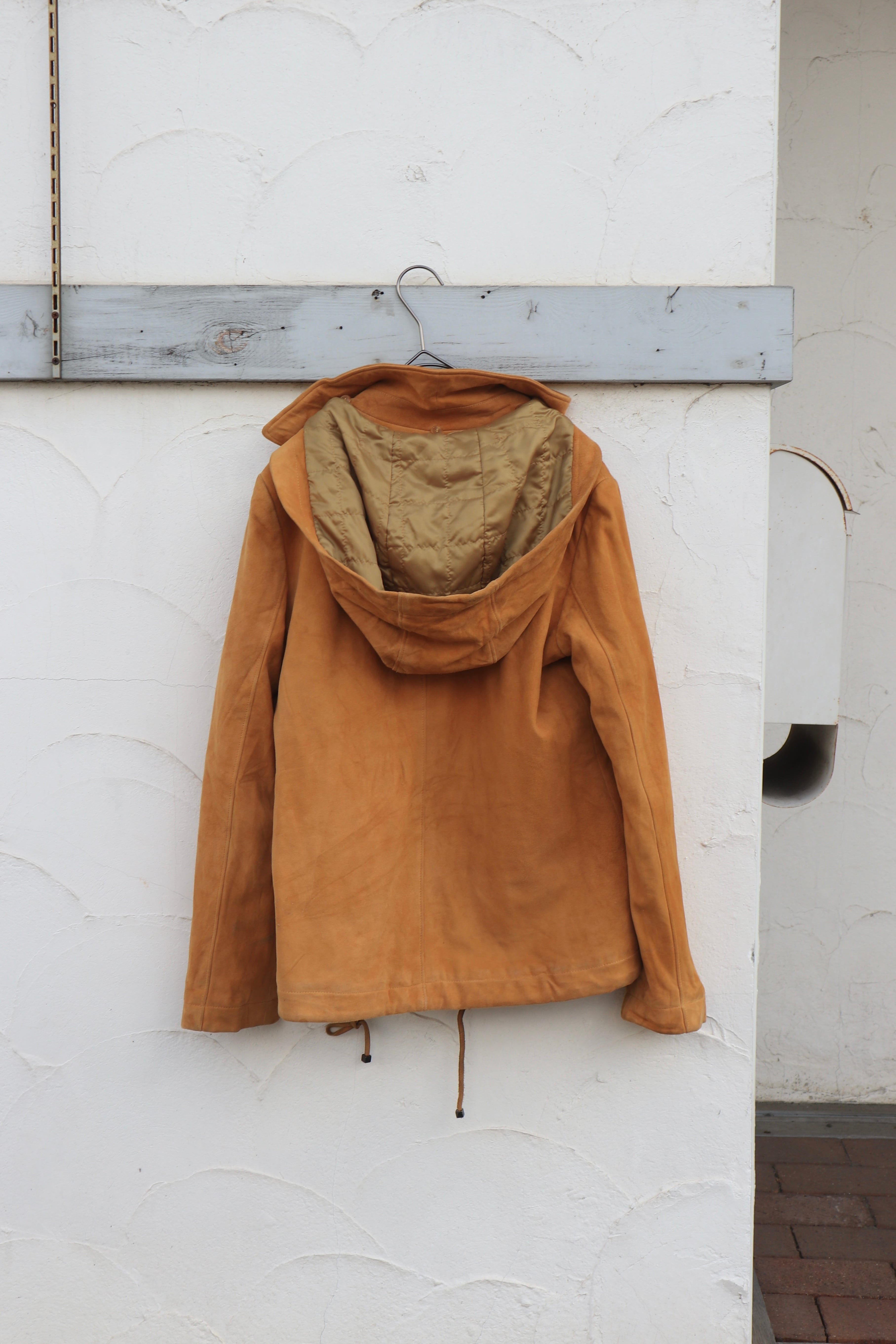 [sheep leather suède hooded jacket]