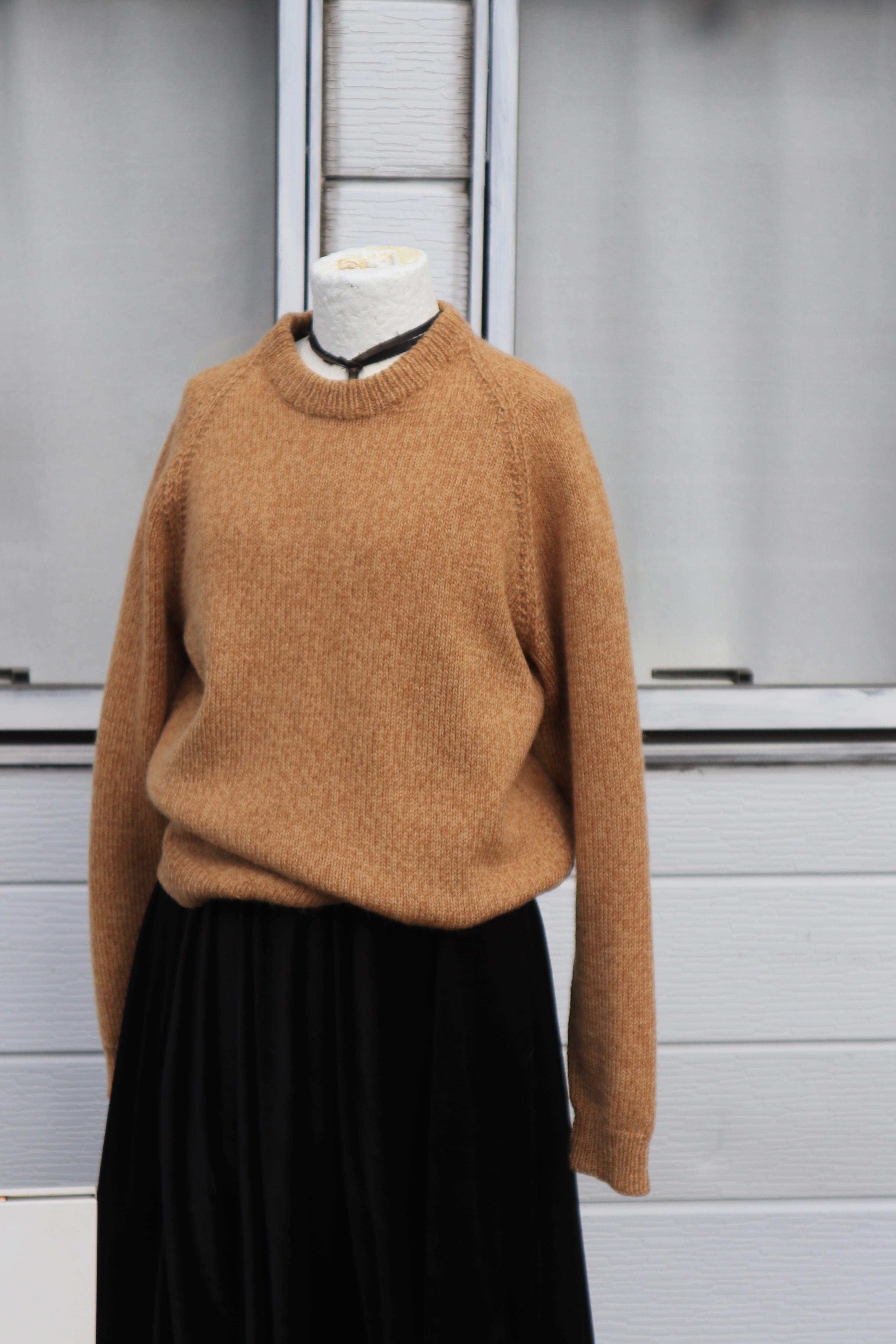 クルーネックニットセーター。