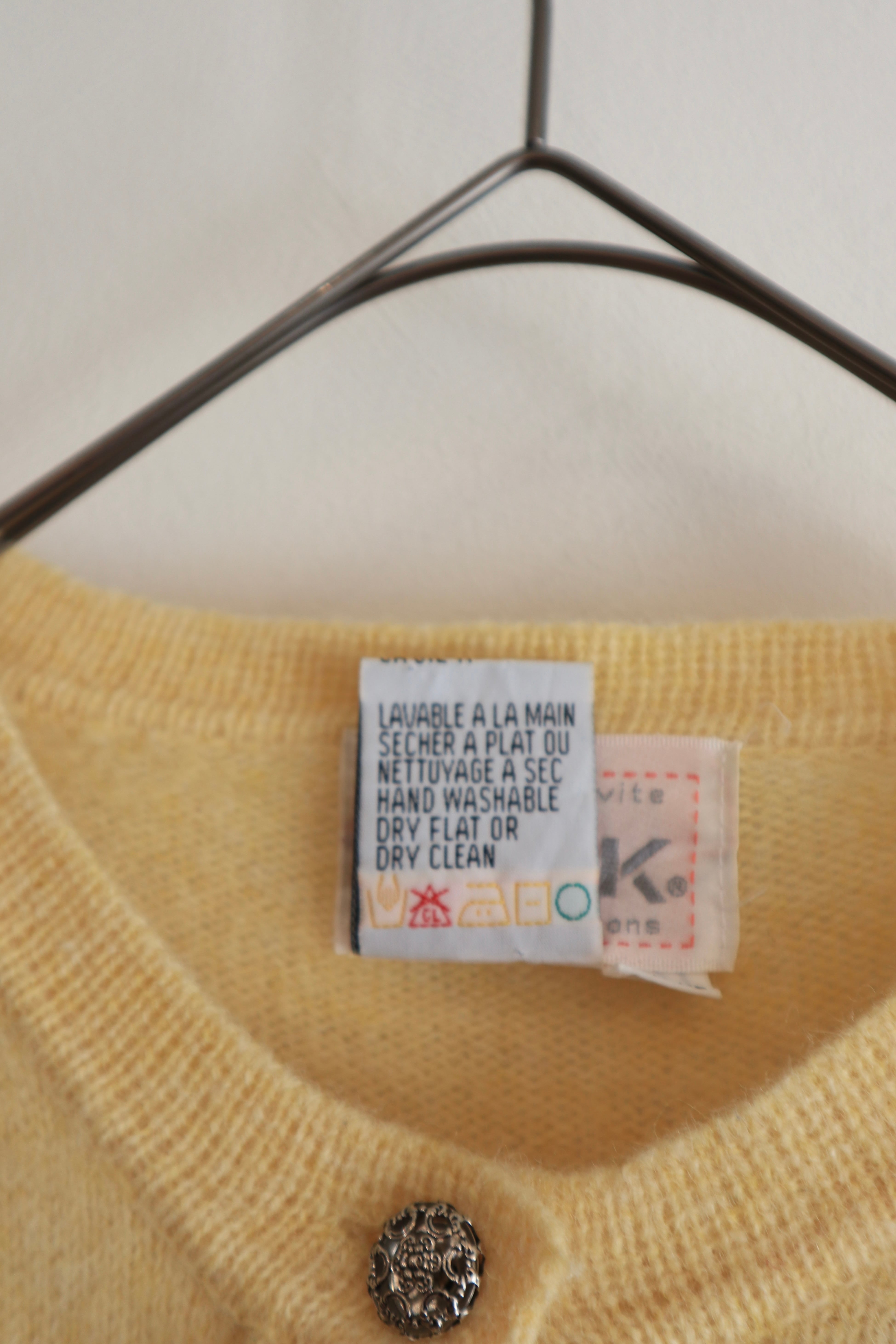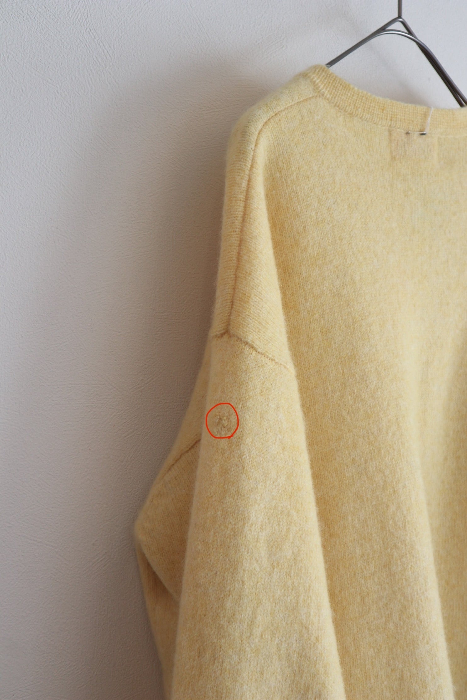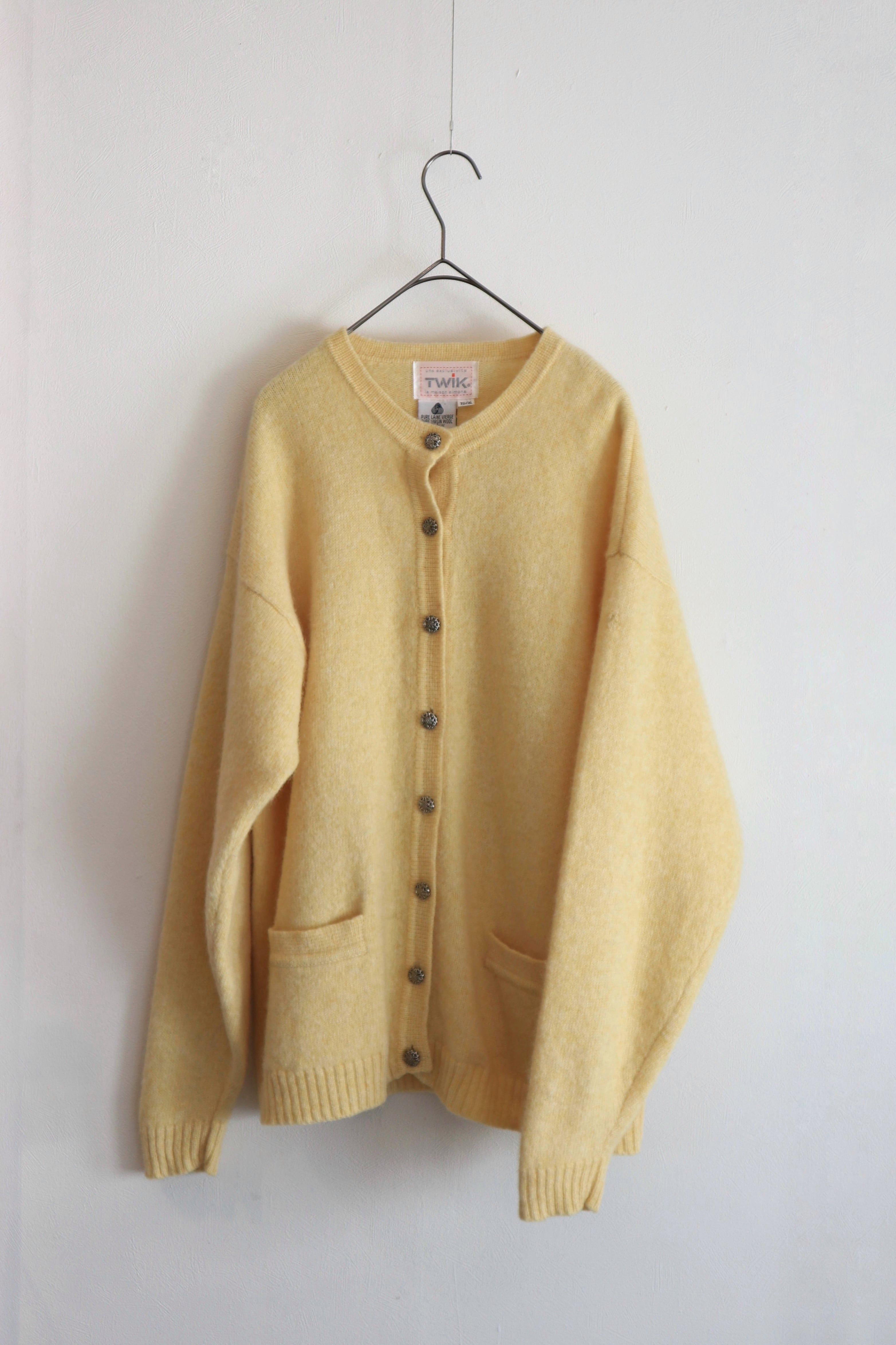 [pale yellow wool knit cardigan]