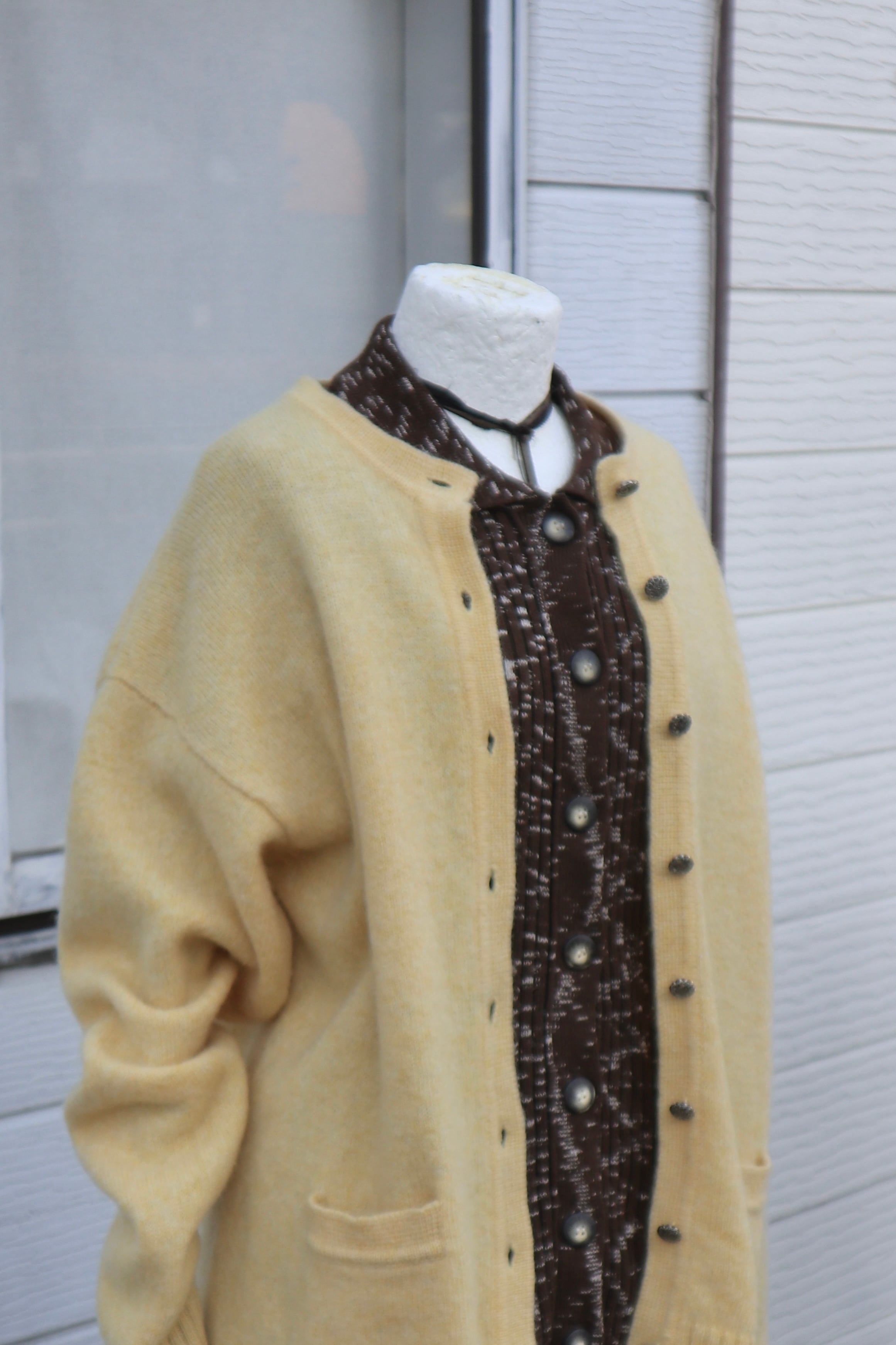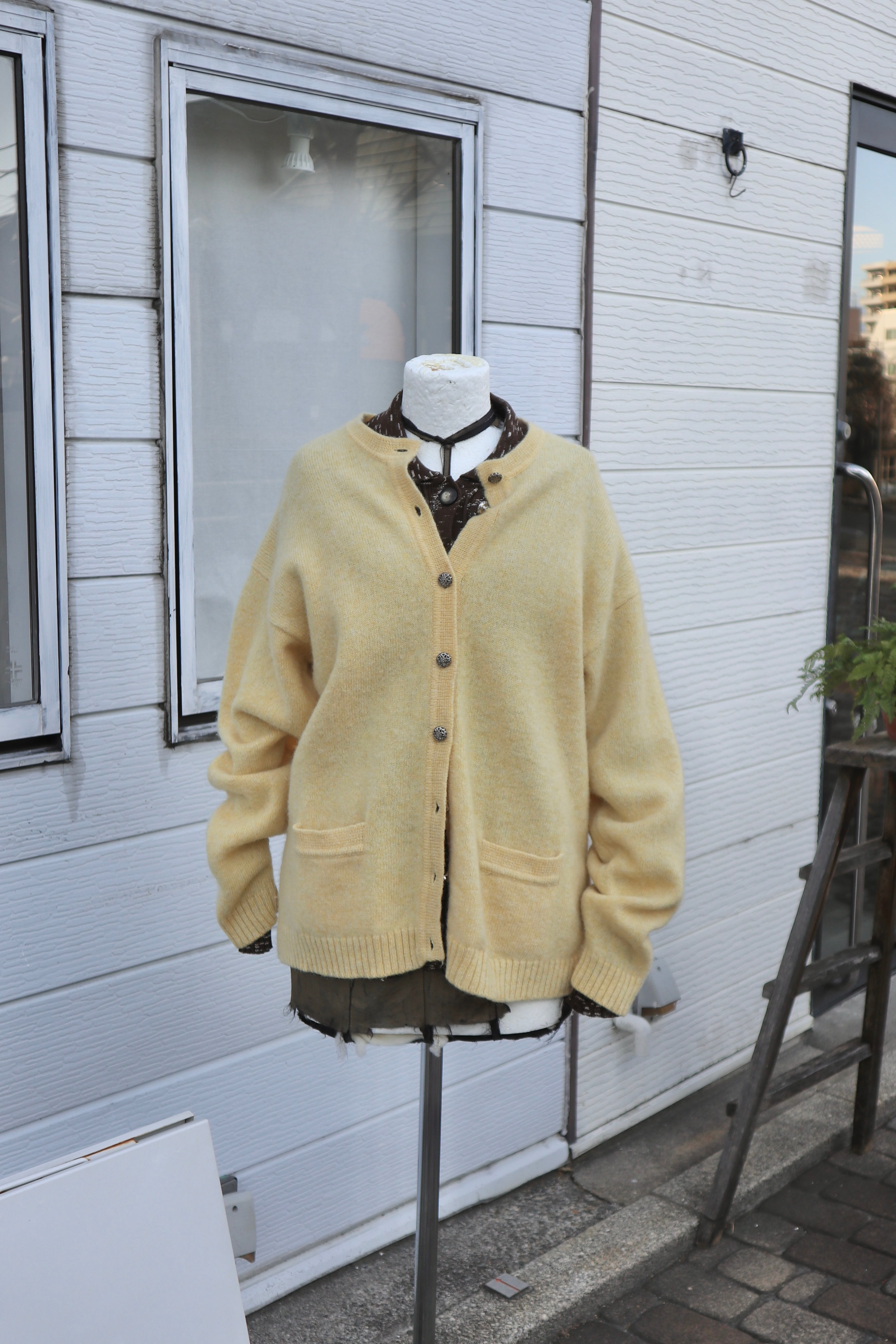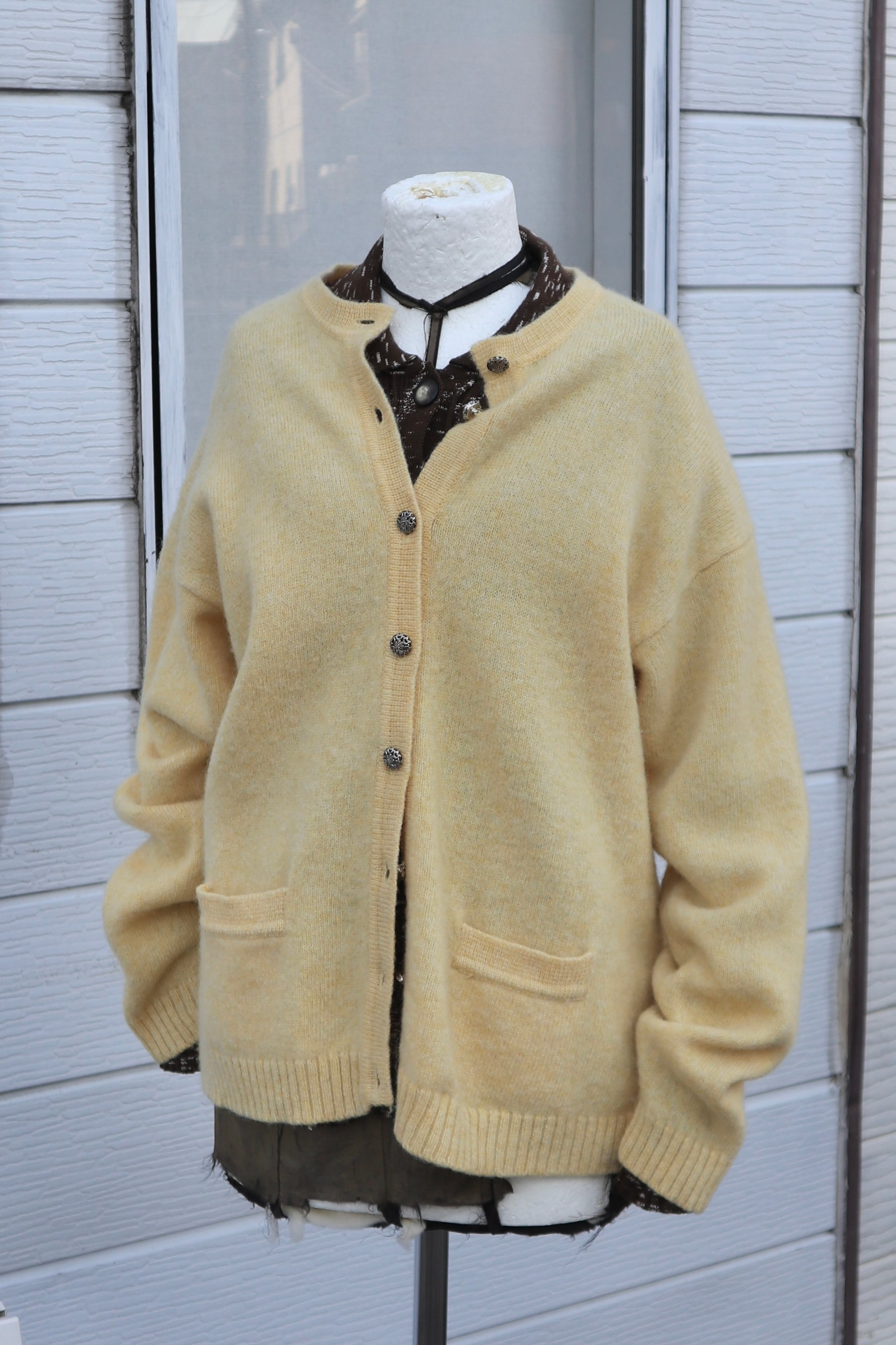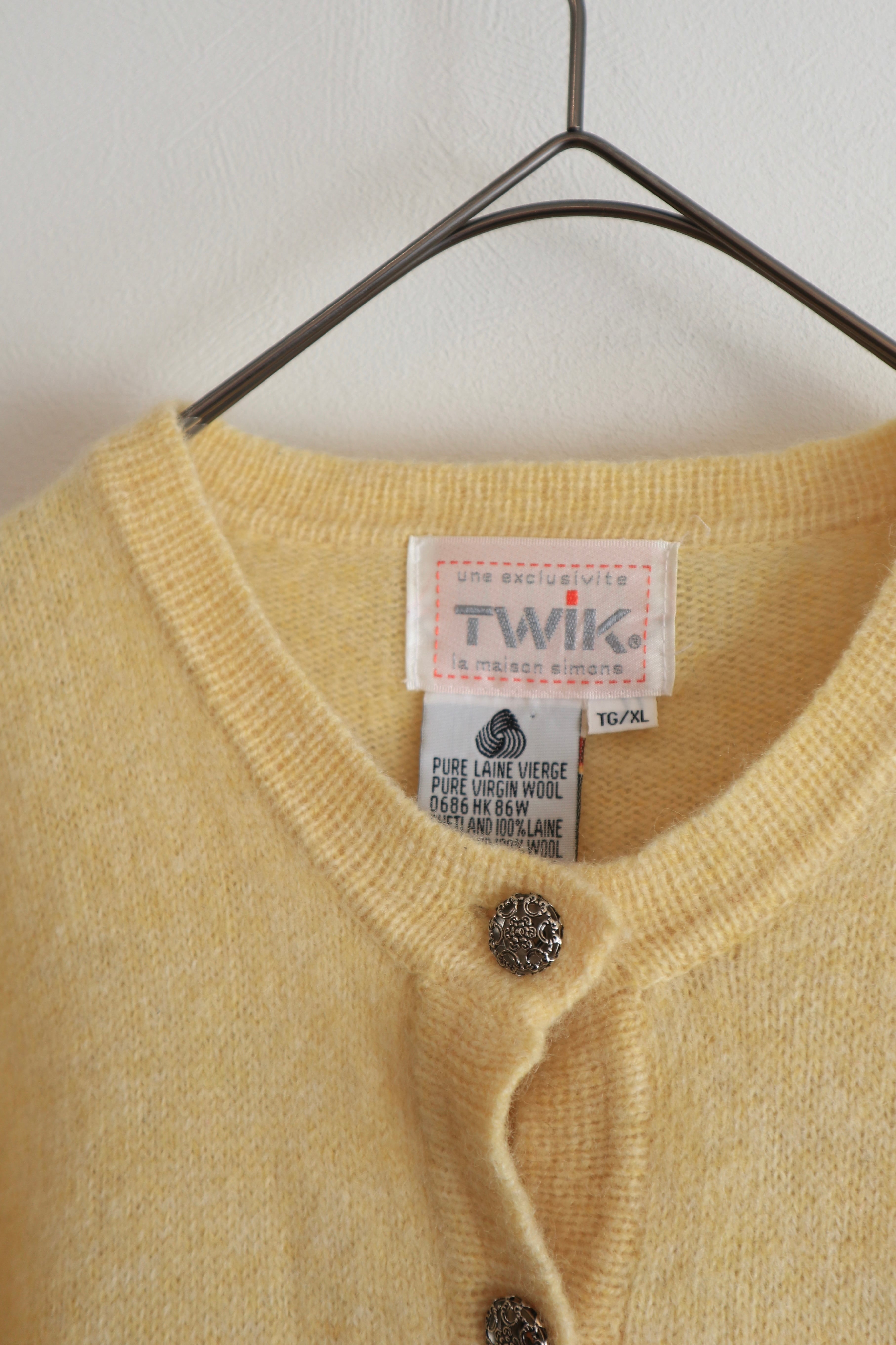 [pale yellow wool knit cardigan]